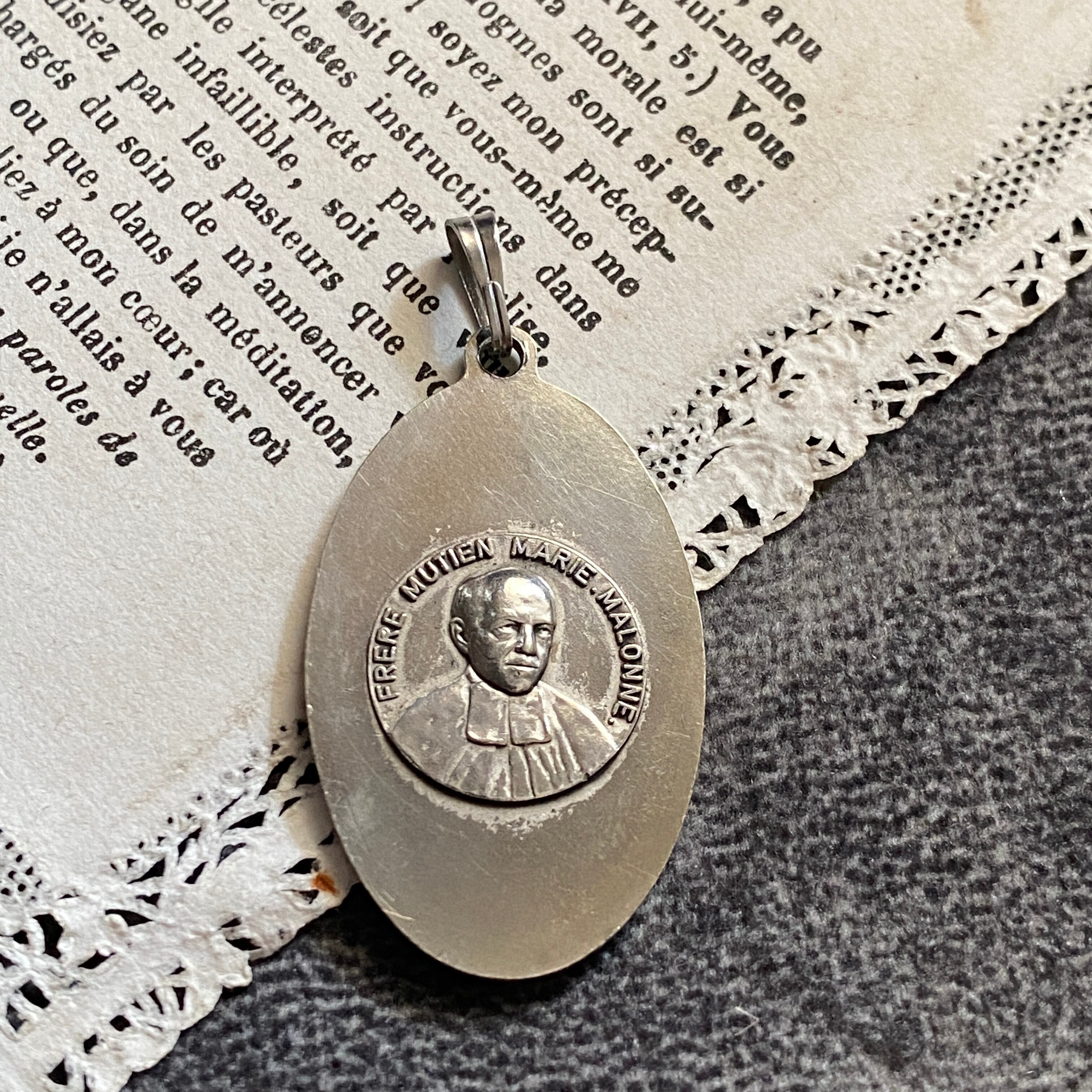 また、背面には聖ムティエンSaint Mutien-Marie Wiaux (1841年3月20日-1917年1月30日)が描かれており、素晴らしい奇跡のスカプラリオの作品です。