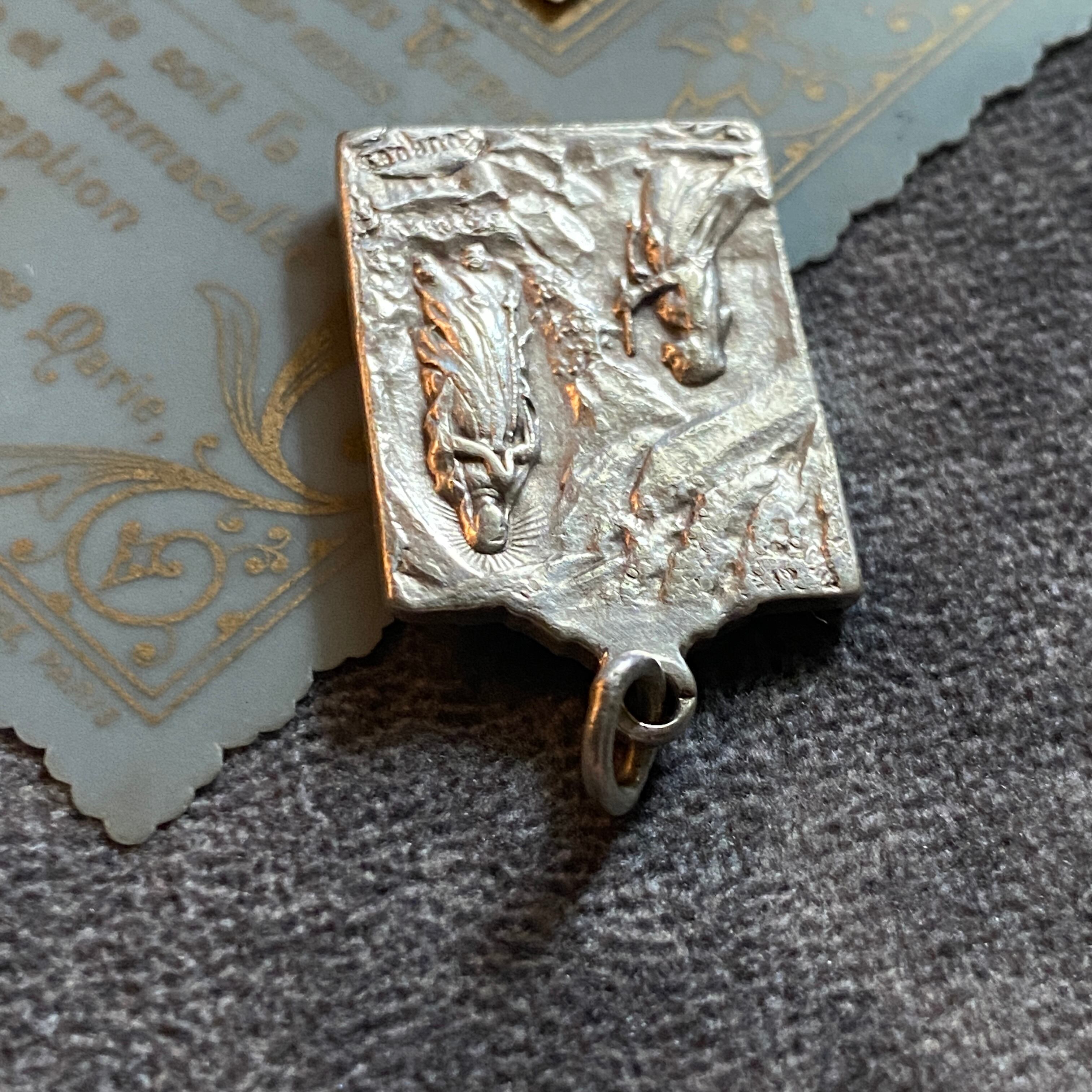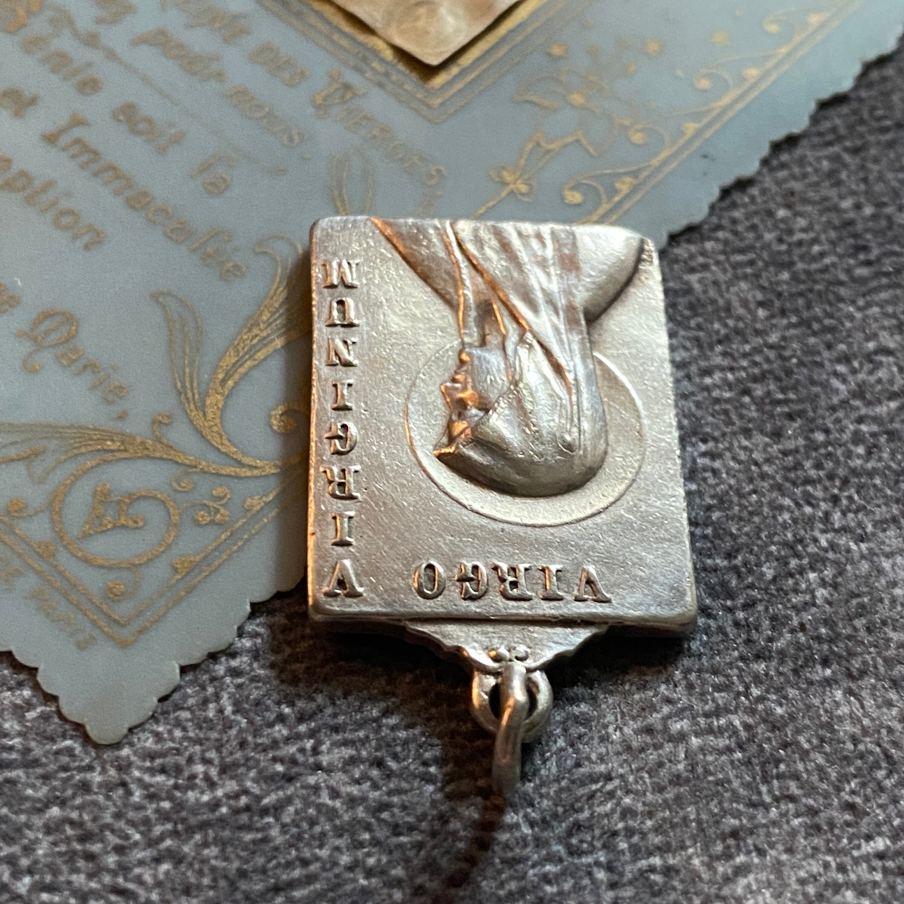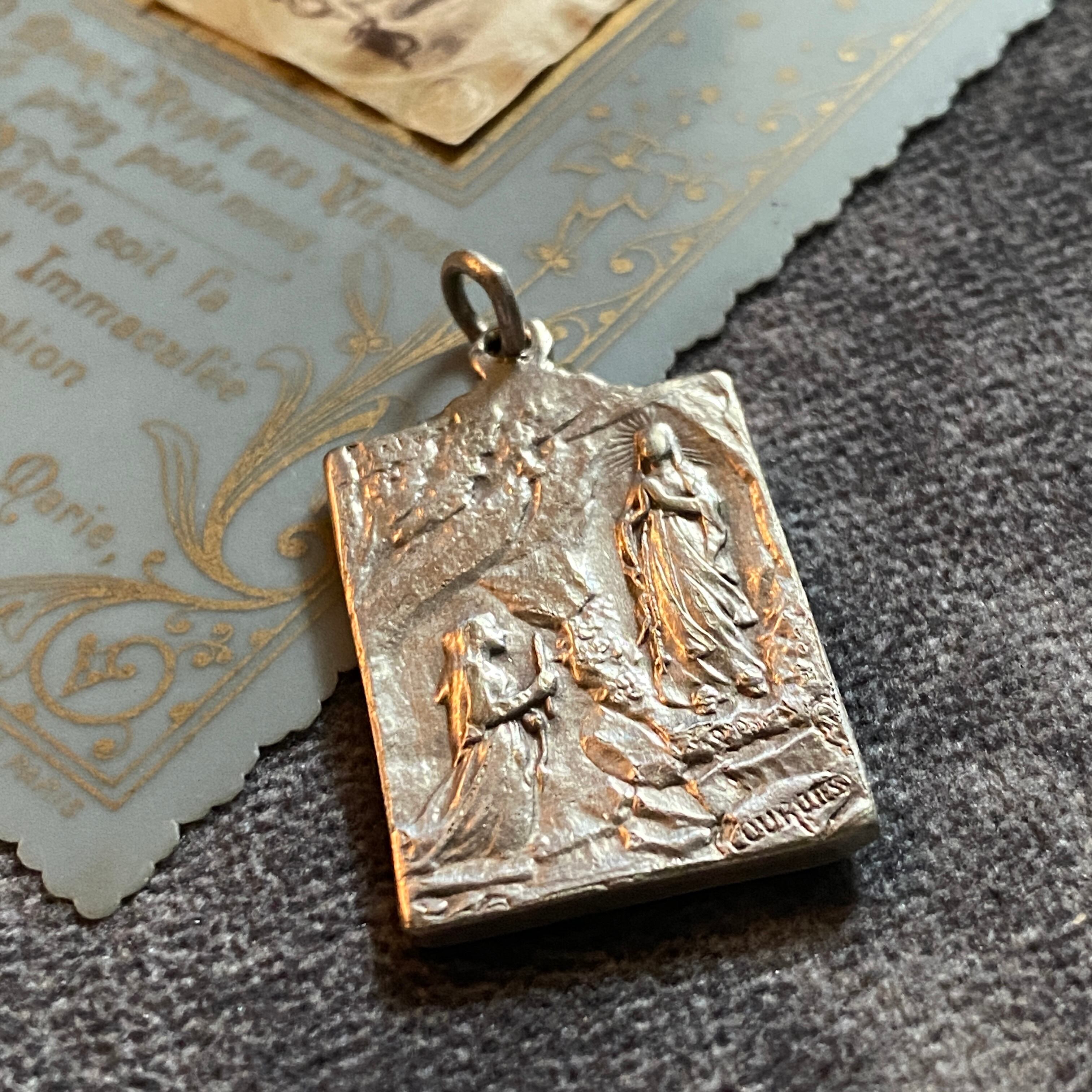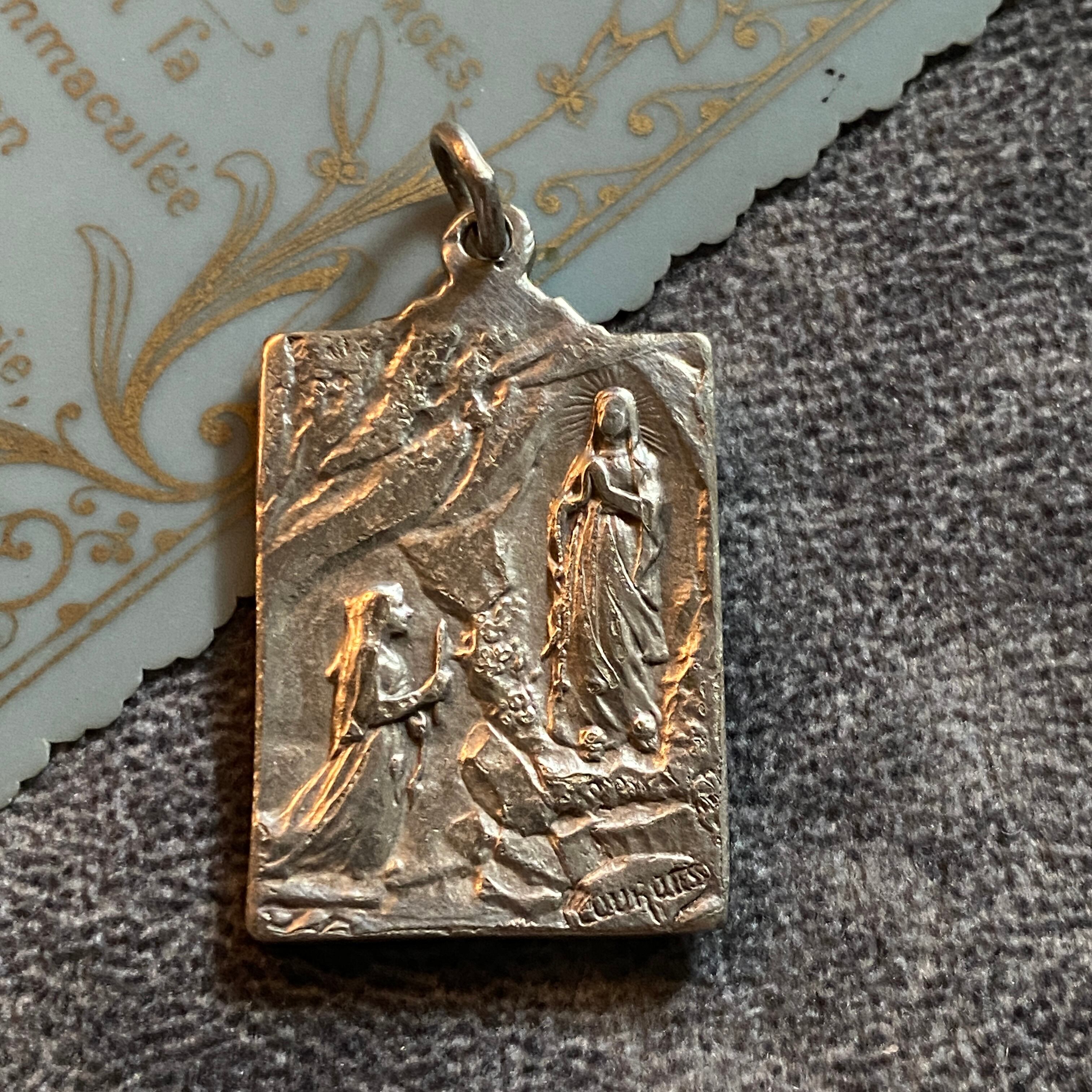 『ルルドの祈りのマリア』として有名なデザインのこちらは、ルルドの泉に現れた聖母の奇跡と泉の聖水の奇跡をメダイという御守りとして当時のヨーロッパの人々が身につけたことから、様々な大きさで製造されていました。