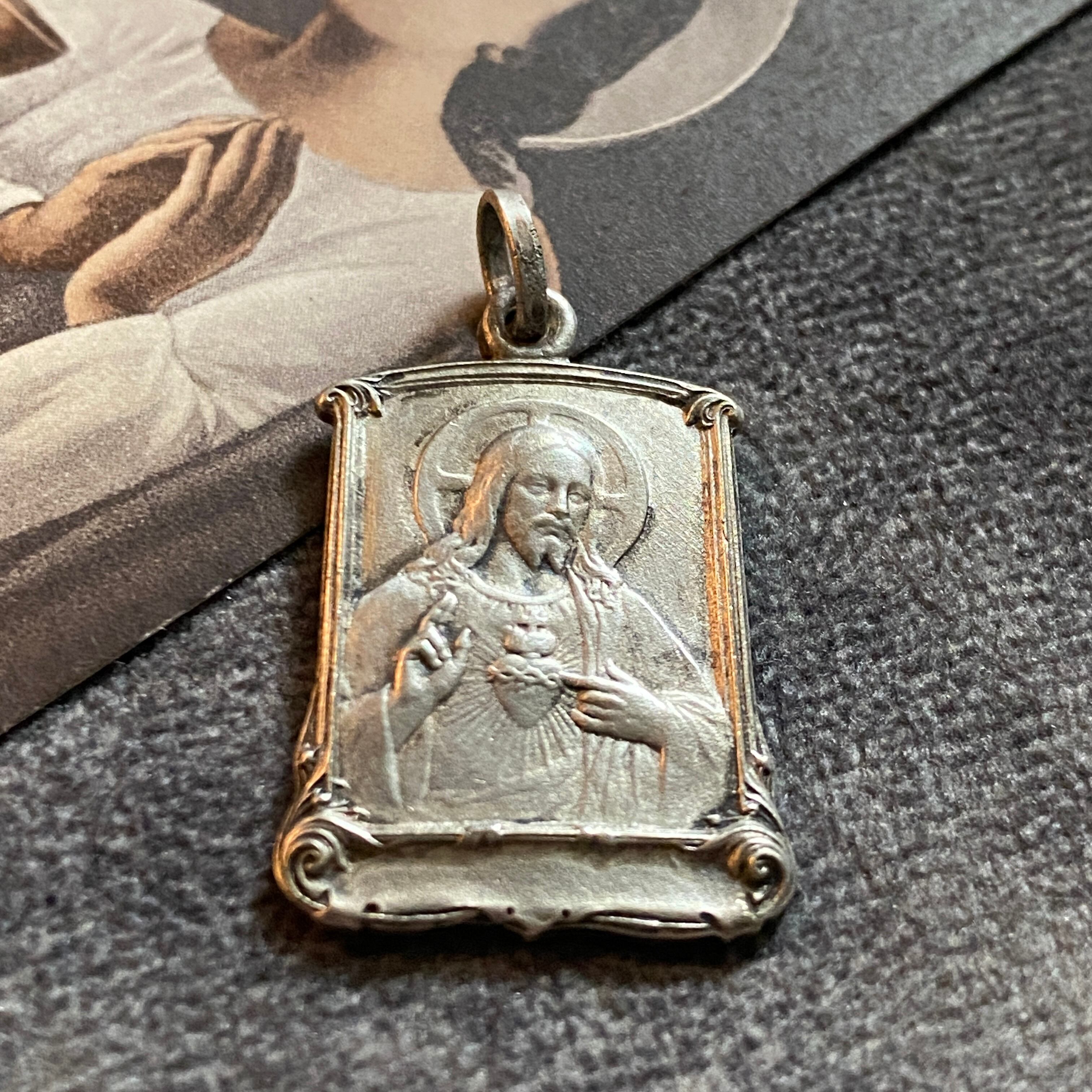 サクレクール寺院の信仰は【キリストの聖心】であることから、サクレクールのメダイにはキリストが聖心を指し示すデザインが描かれています。