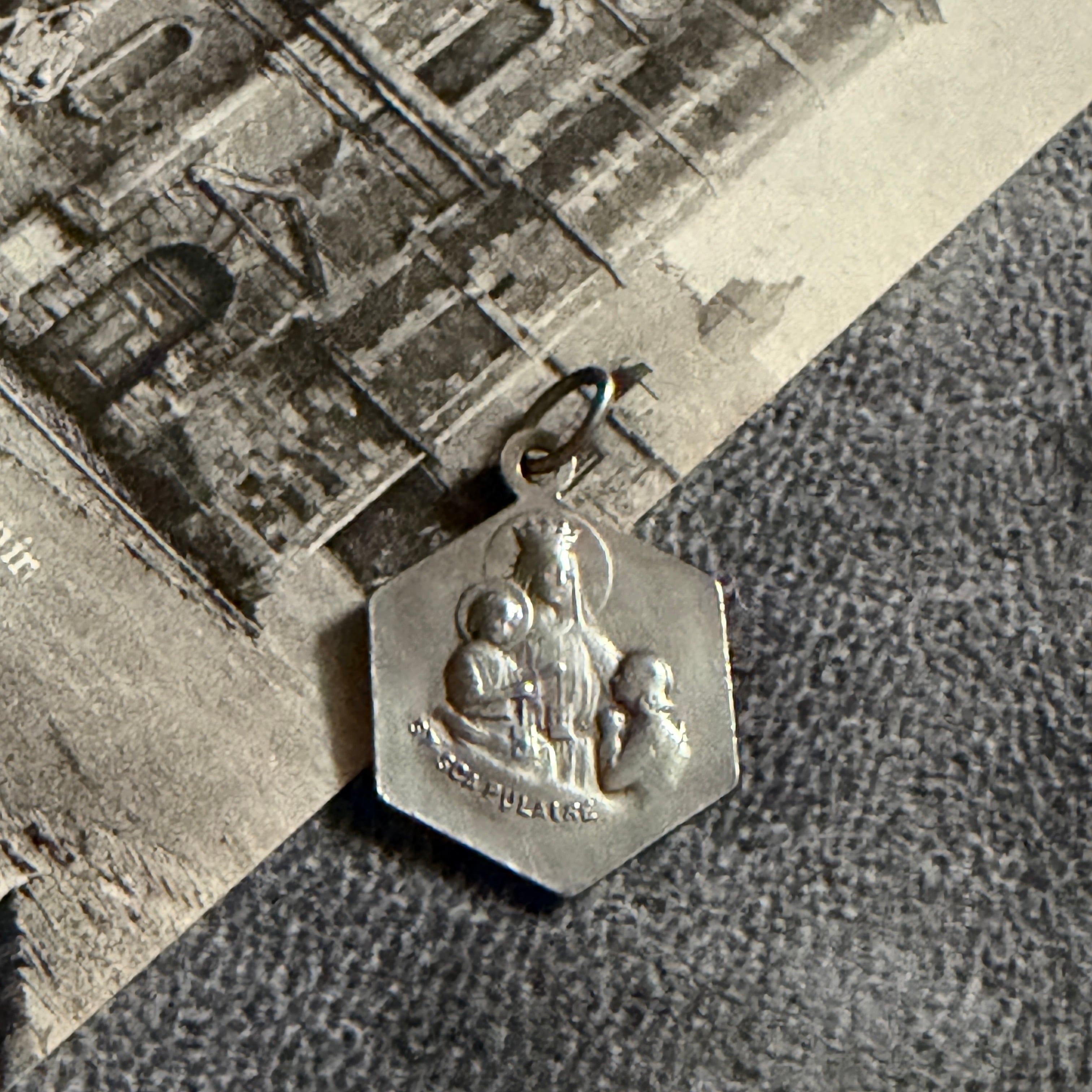 六角形のフォルムが印象的な、カルメル山の聖母のスカプラリオメダイ。