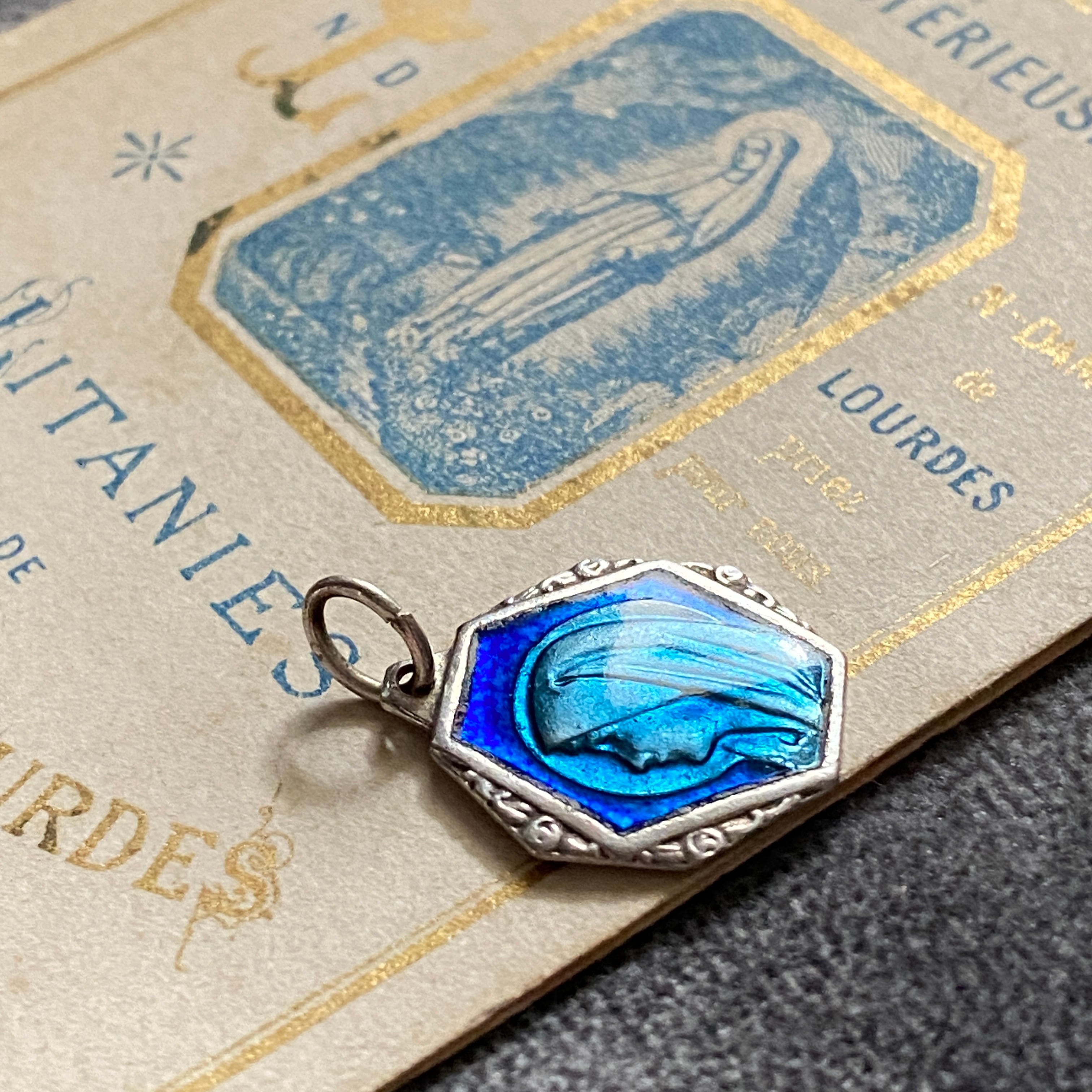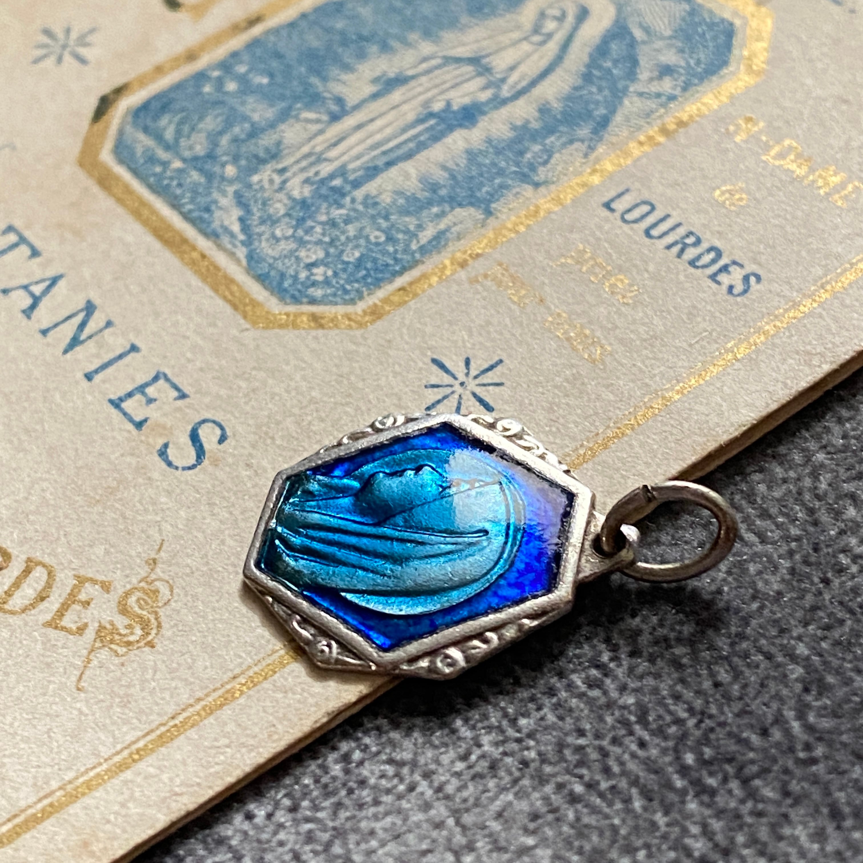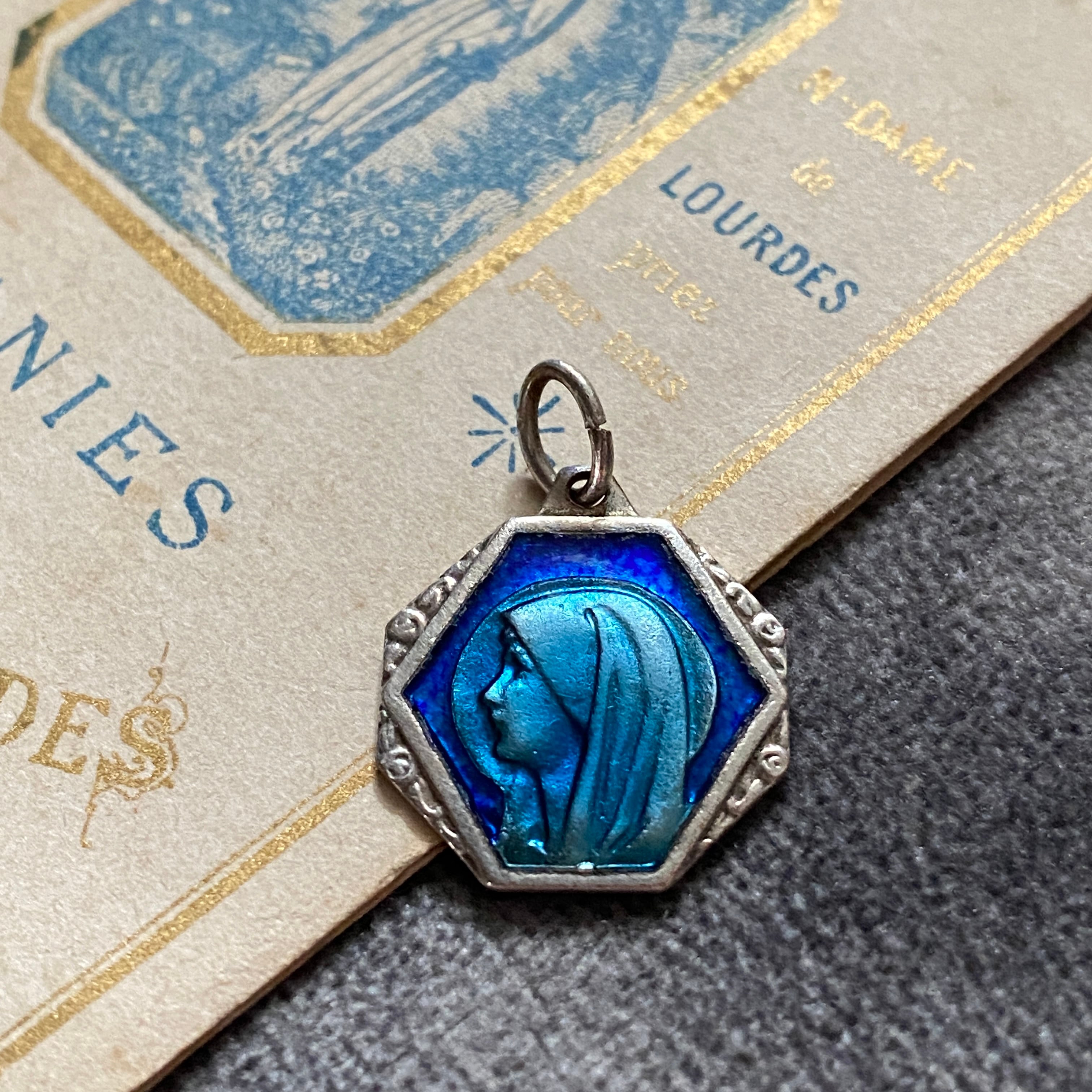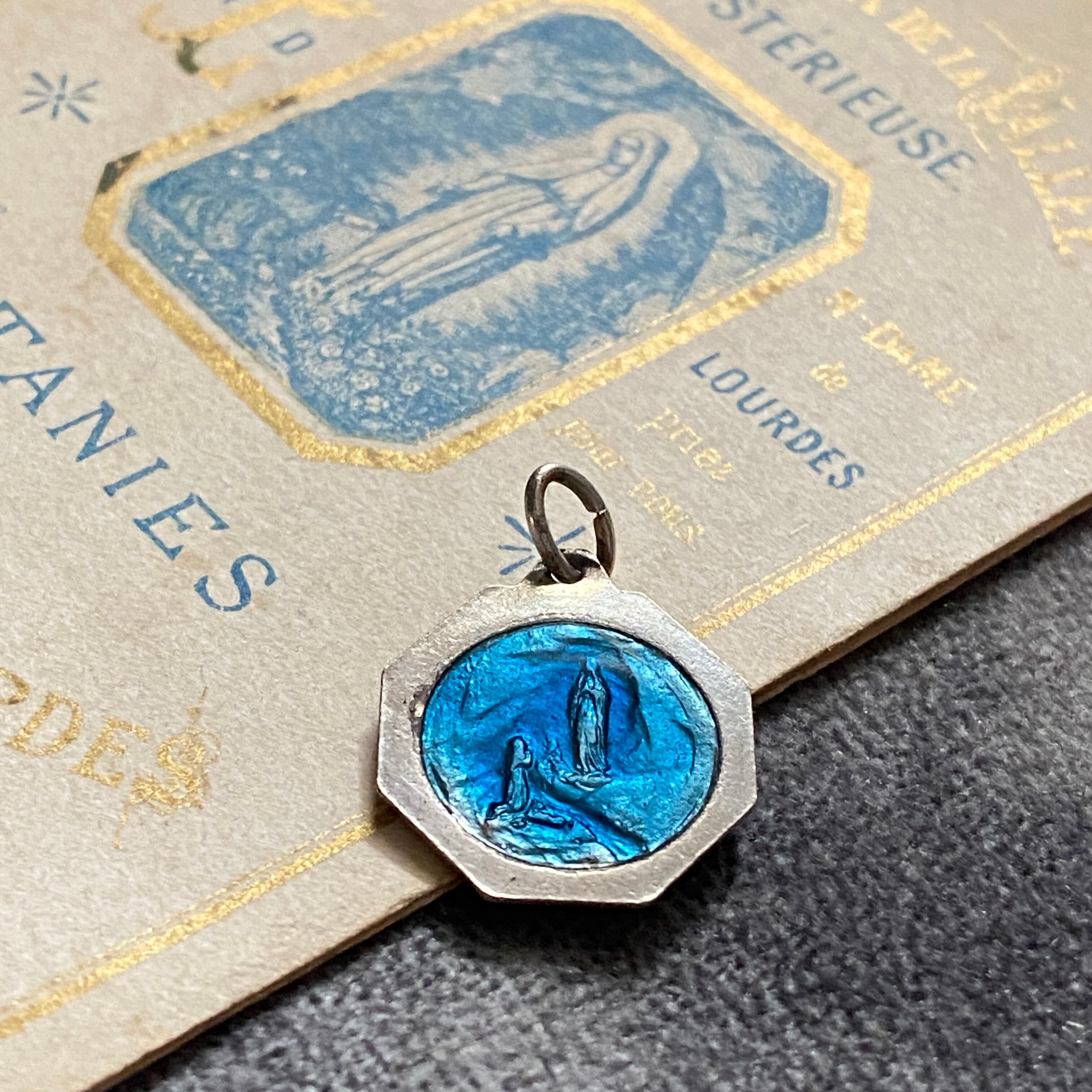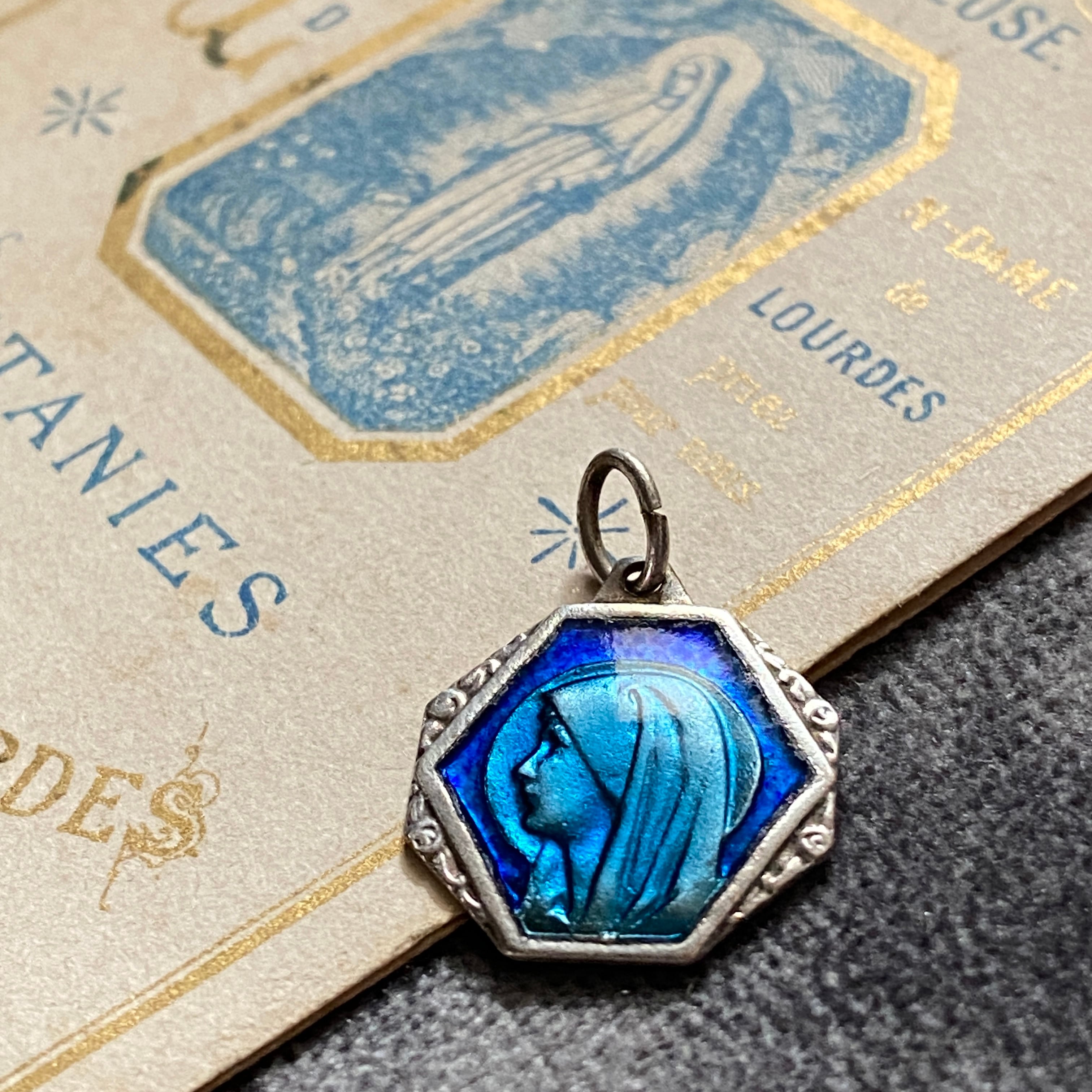 オクトゴナル薔薇フレーム✴︎ブルーエナメル×ルルドの祈りの聖母