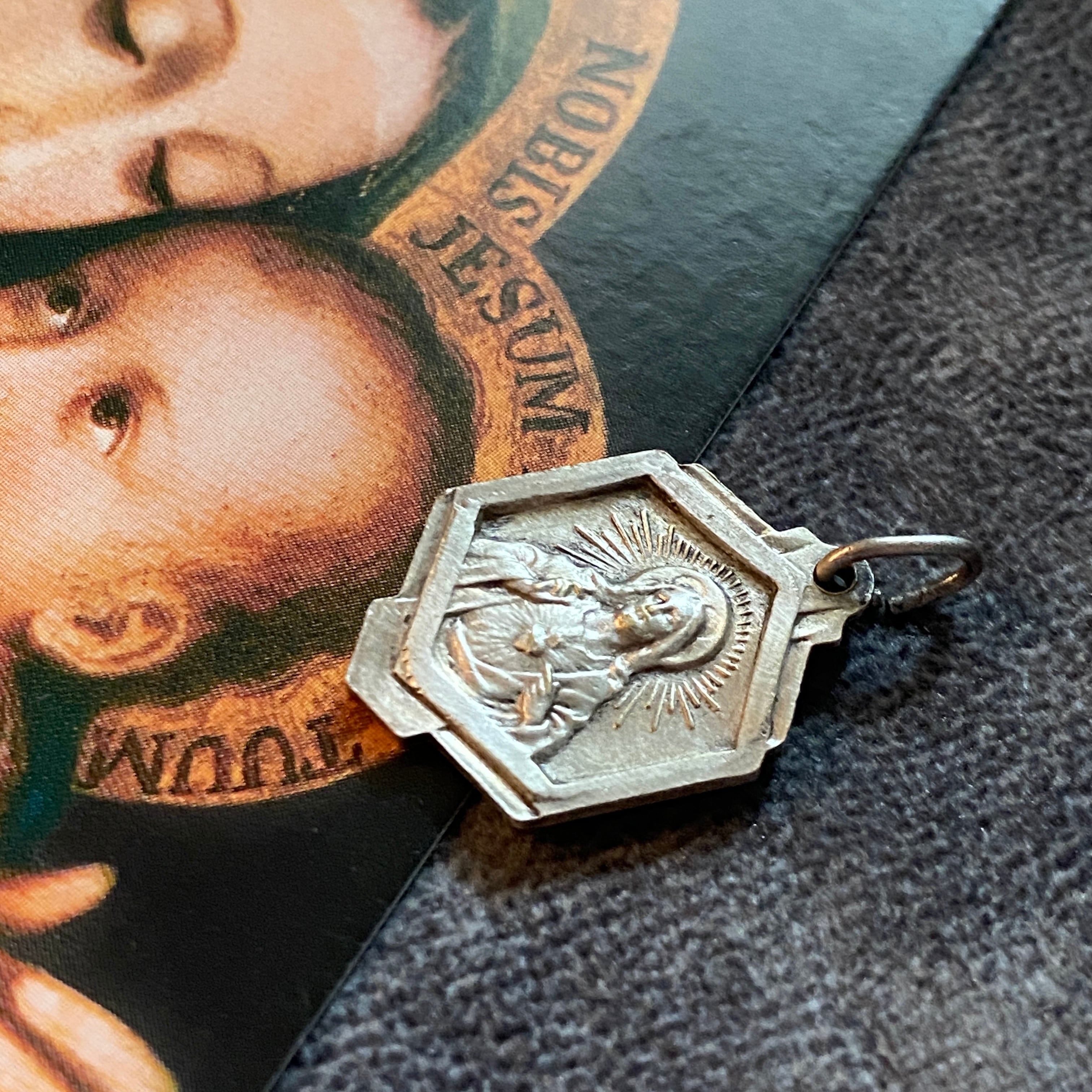 カルメル山の聖母をモチーフにした、アールデコ様式のスカプラリオメダイ。