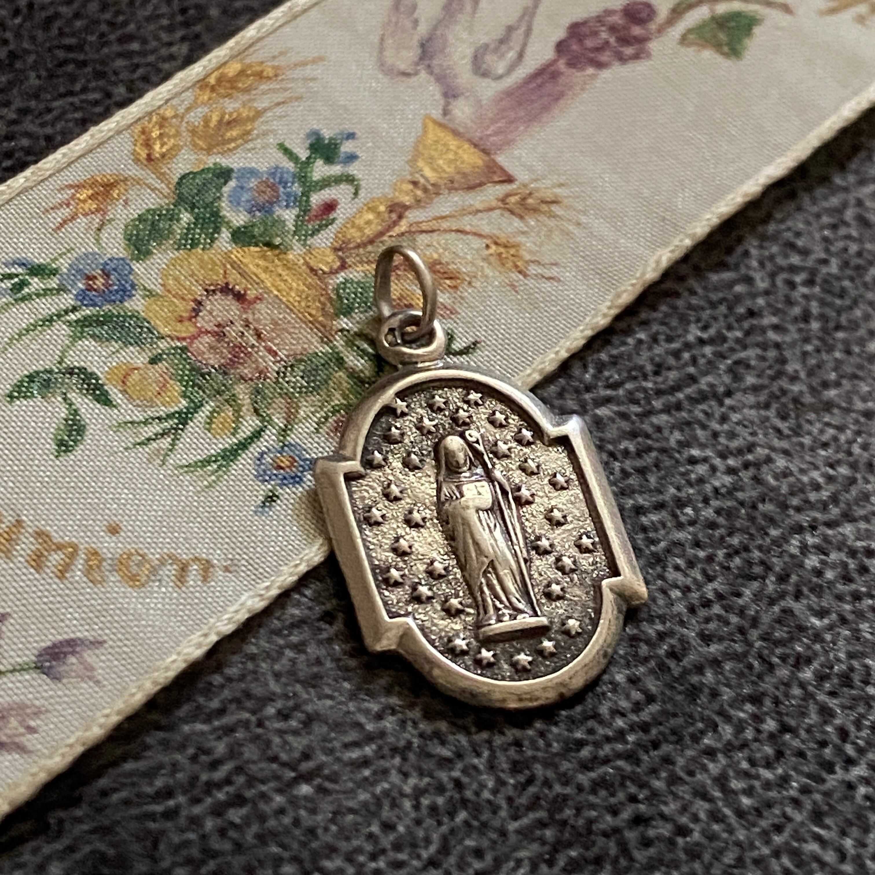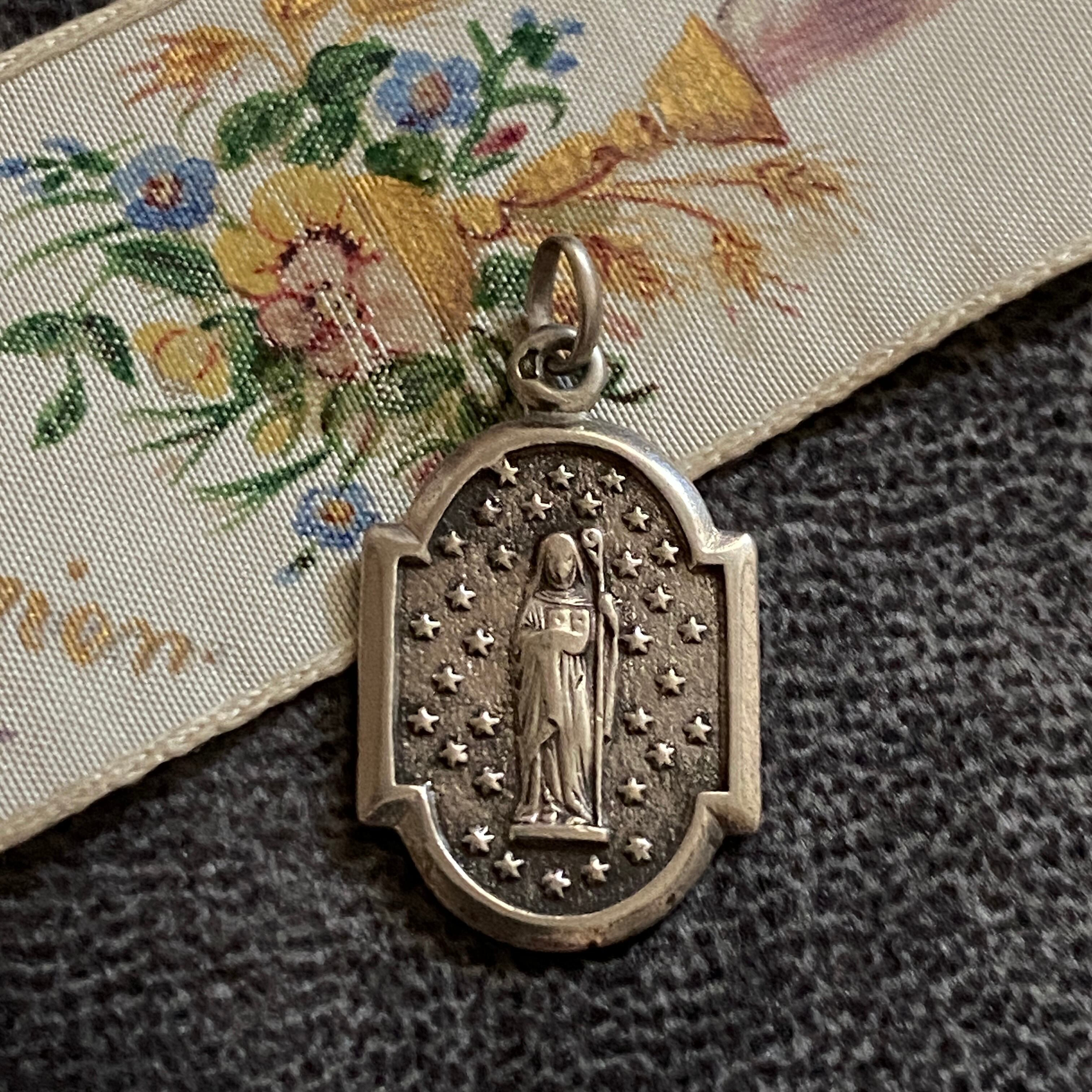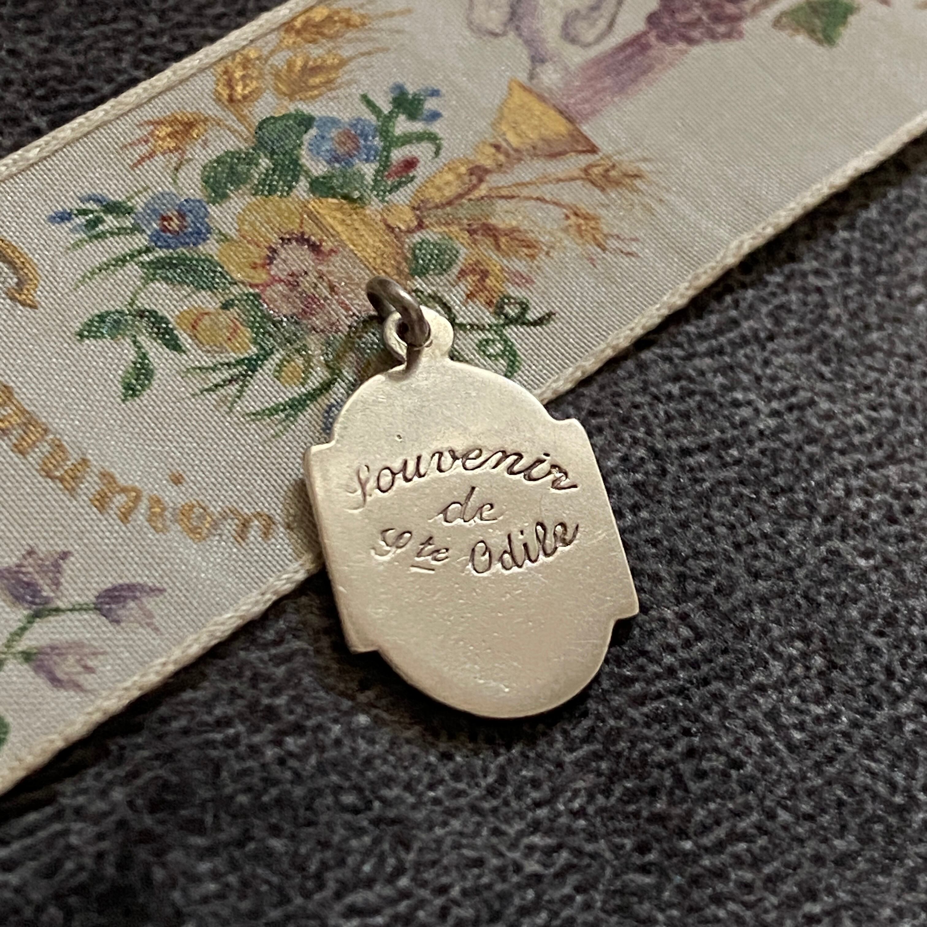 背面には「Souvenir de Ste Odile」と刻まれ、聖地を訪れた特別な記念メダイとして作られました。