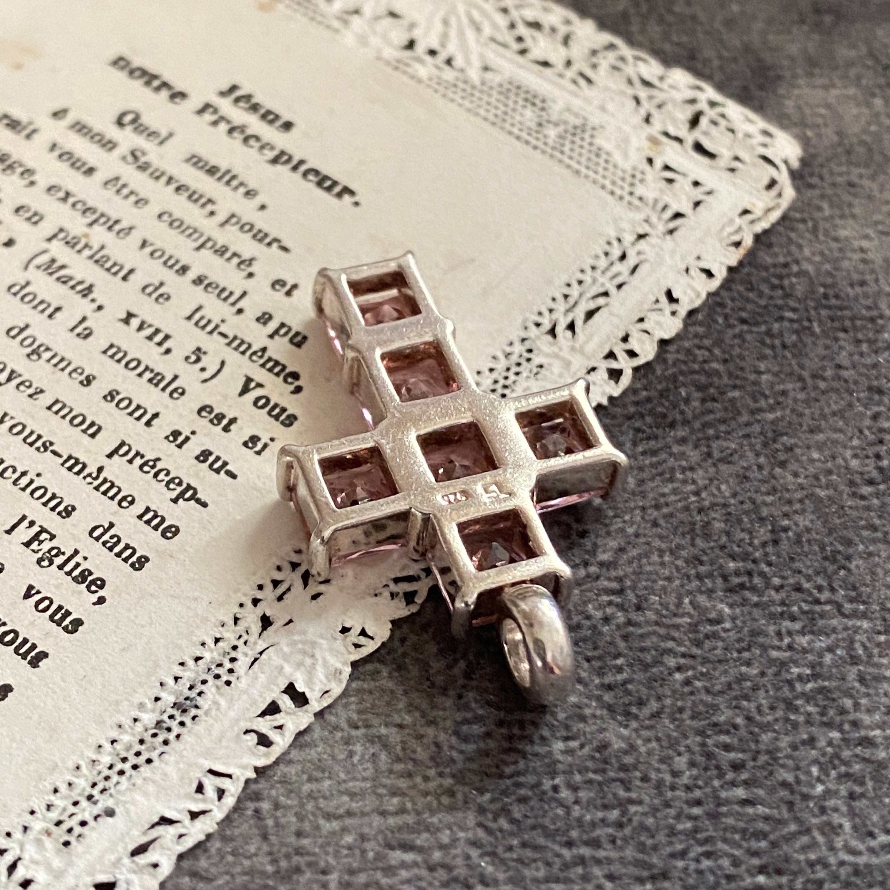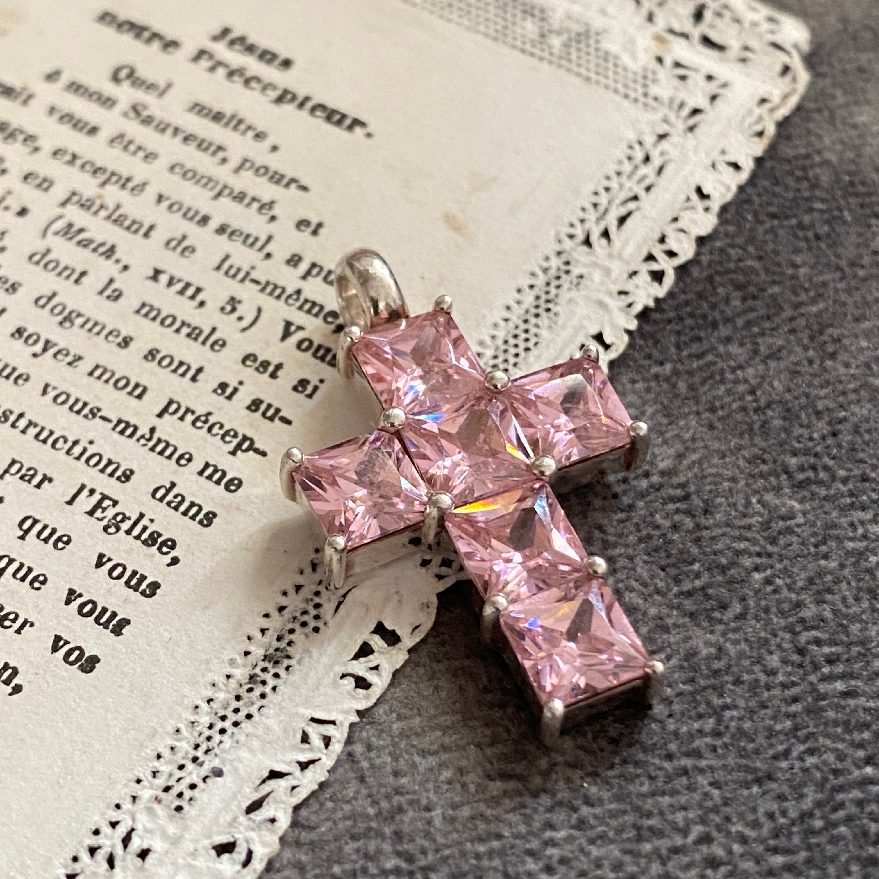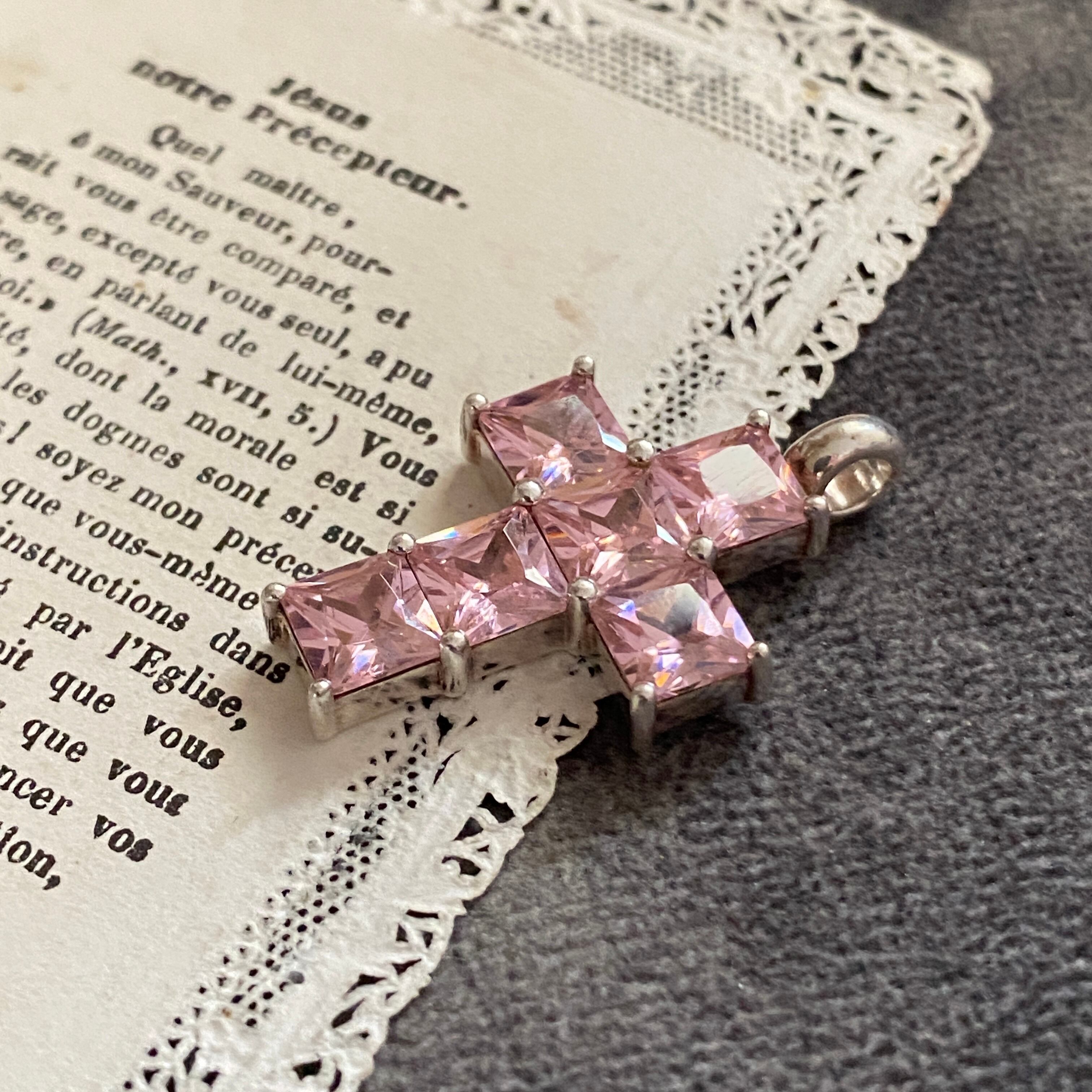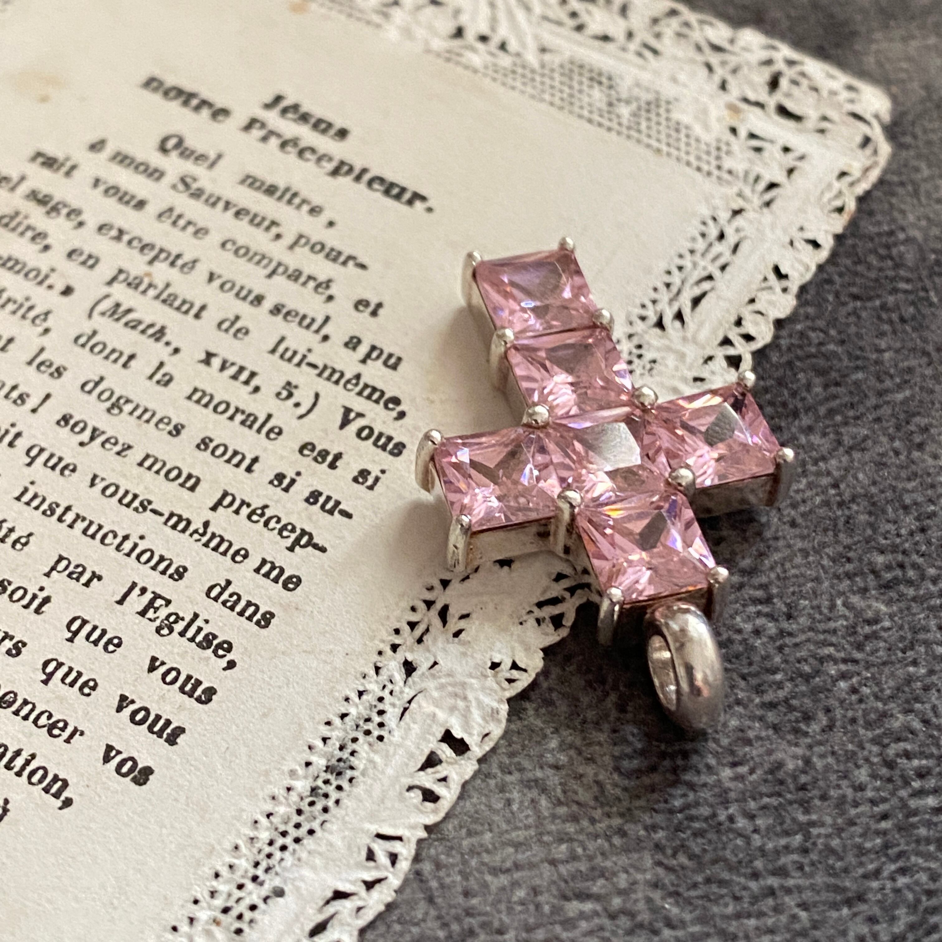 清らかな光を宿す、淡いピンクのクロスチャーム。