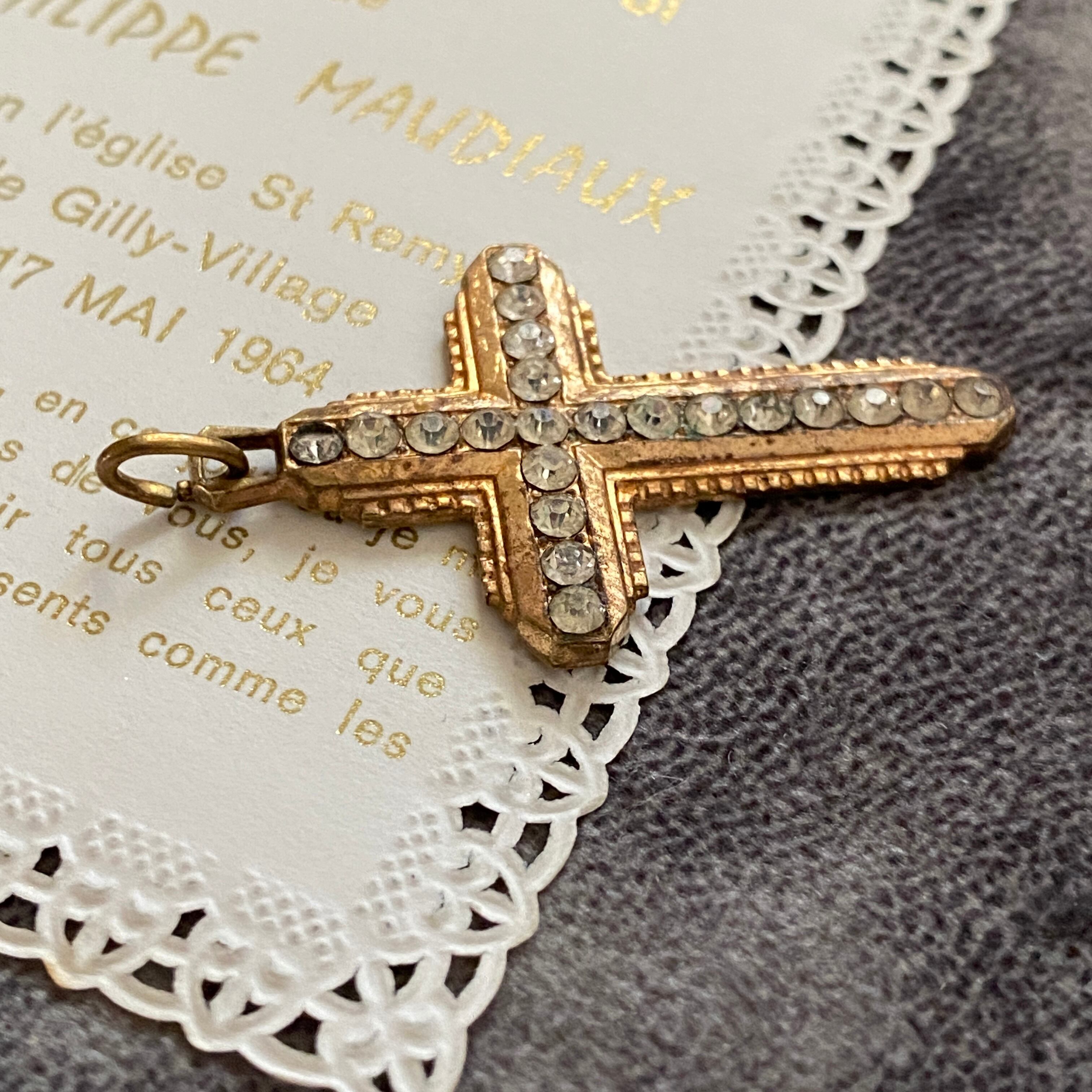 真鍮のクロスにクリアジルコニアを贅沢に敷き詰めた、きらめきあふれる一品。