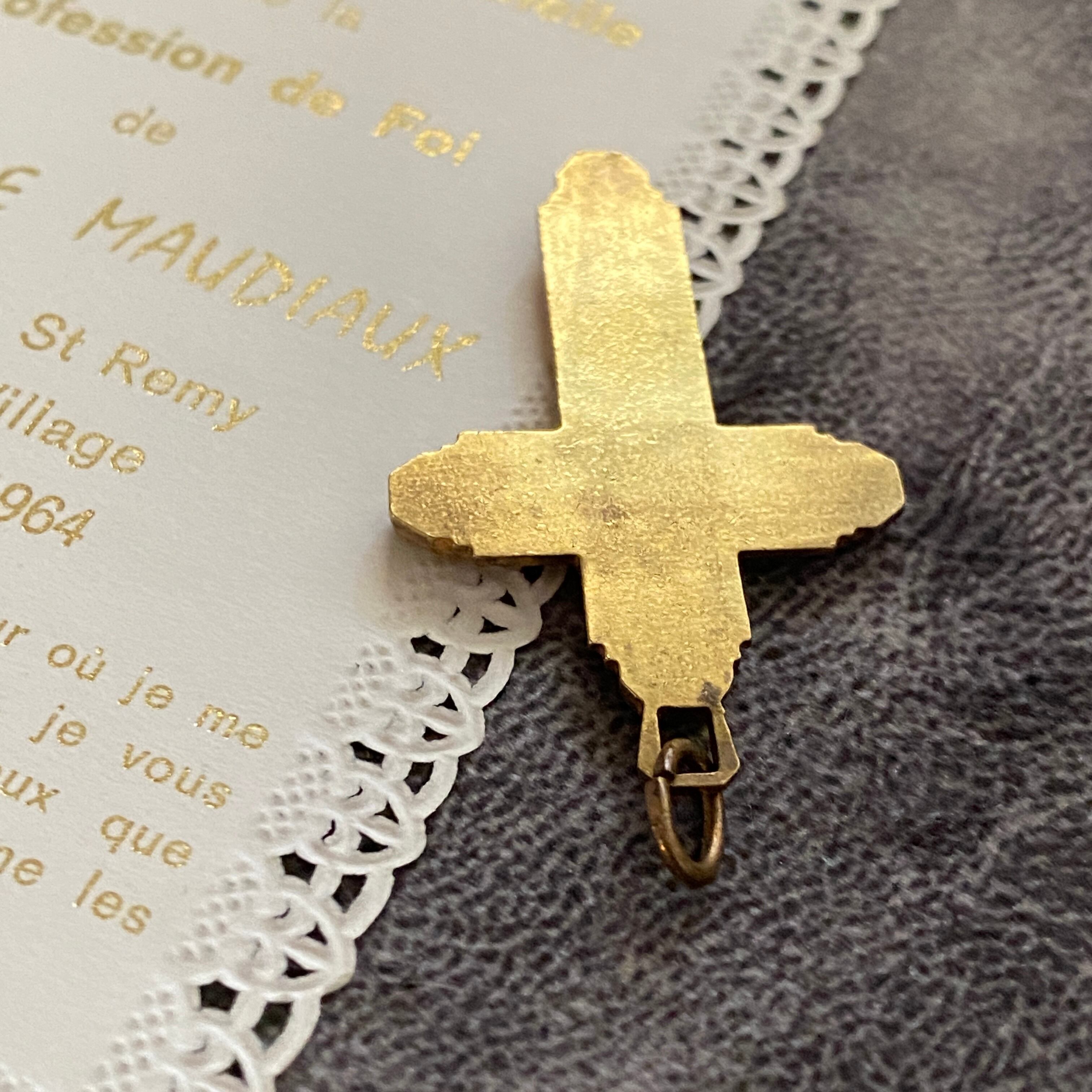 重厚な真鍮の土台に繊細な細工が施され、そこにジルコニアが十字のラインを描くことで、祈りの象徴が光のきらめきとして浮かび上がります。