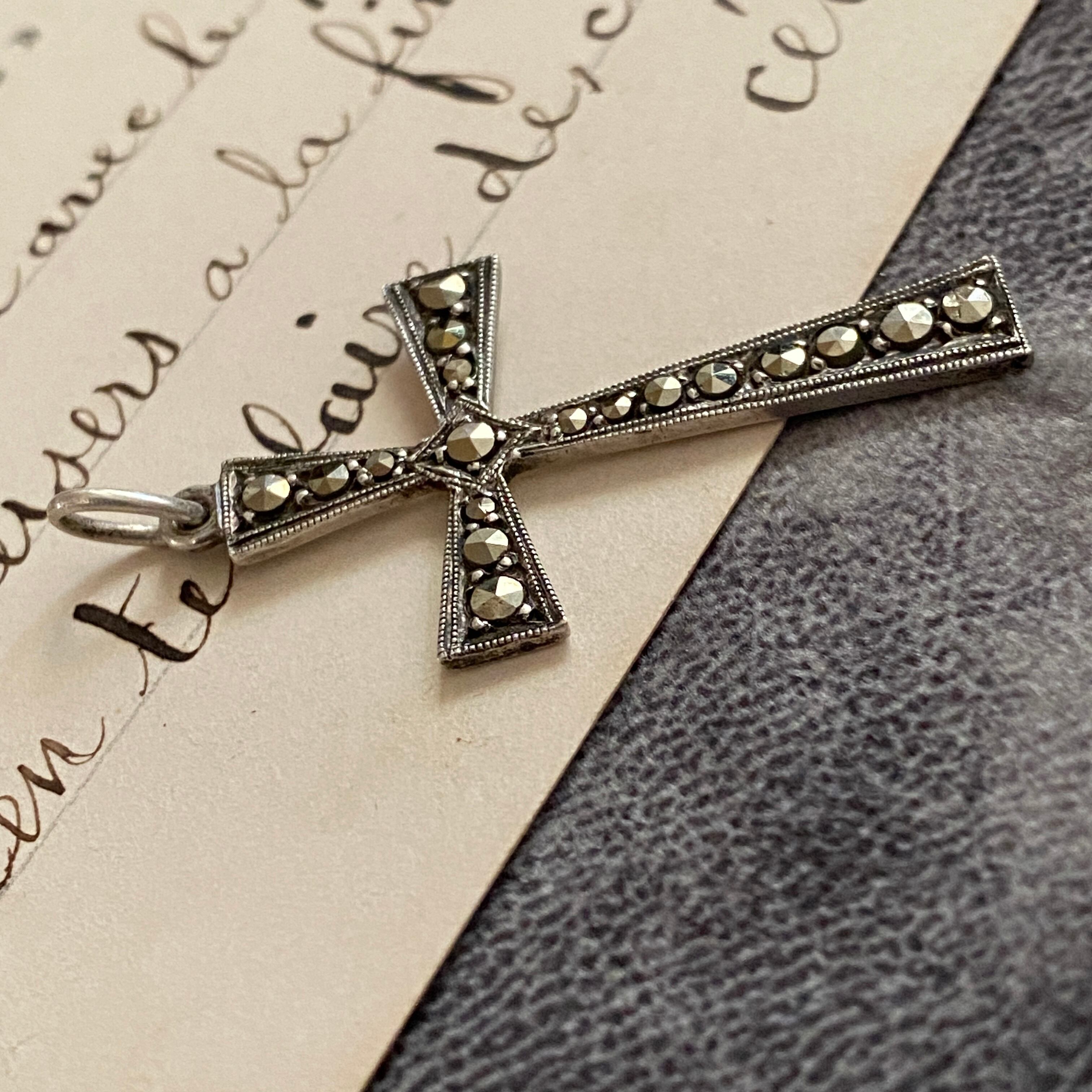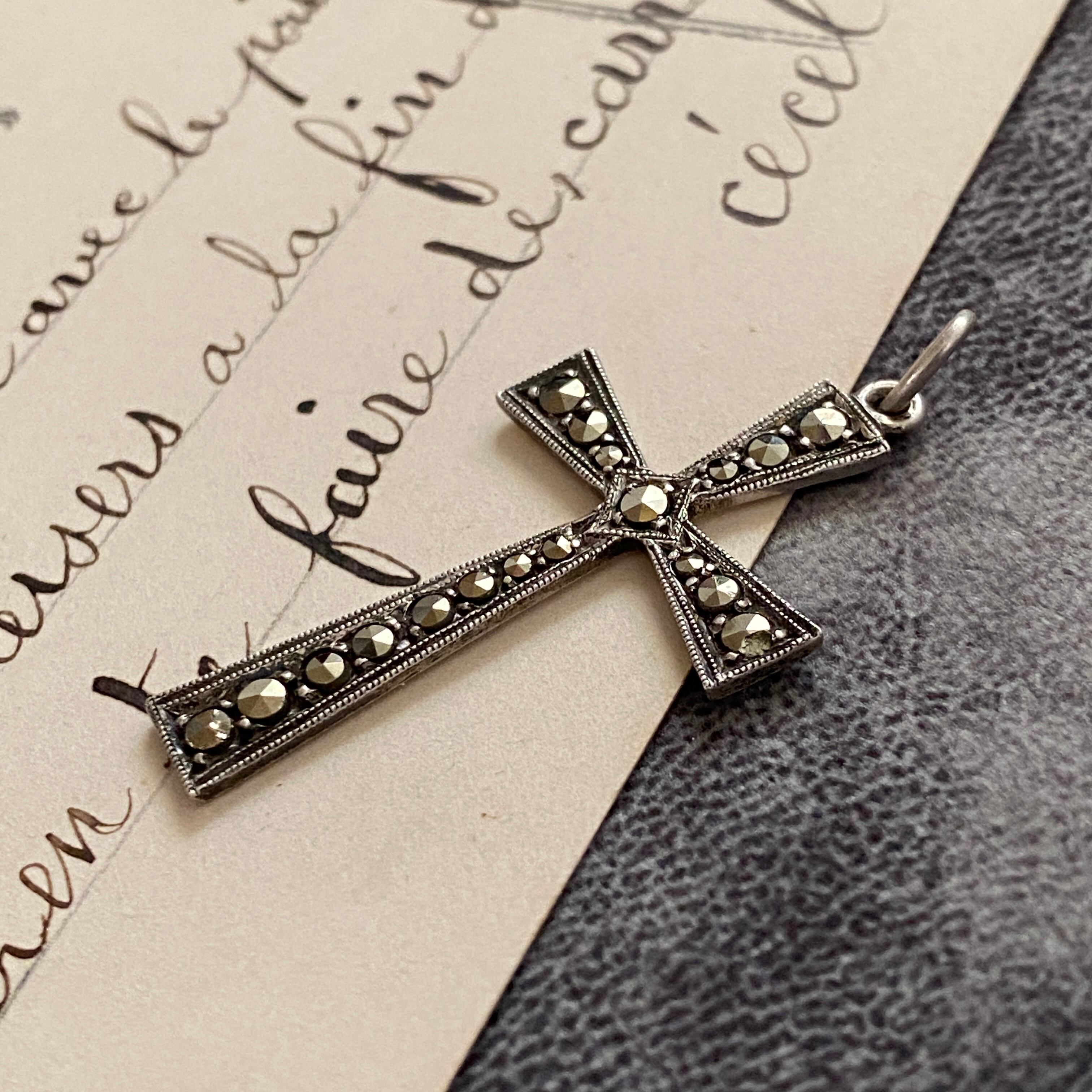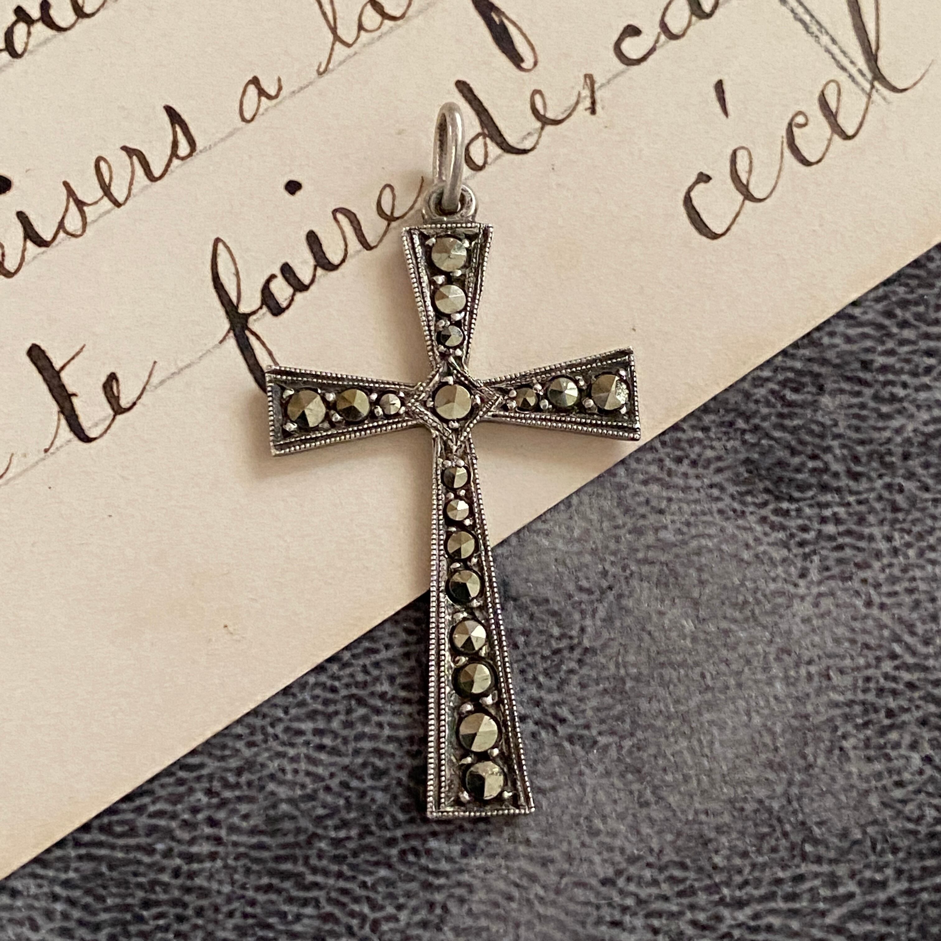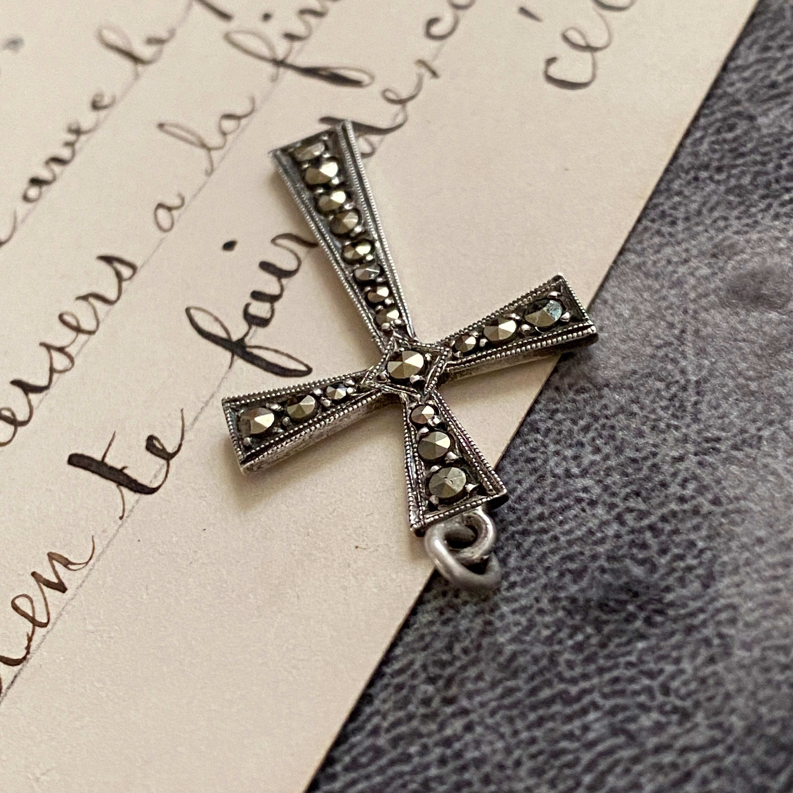 漆黒の夜空に星が瞬くようなきらめきを放つ、フランス製のマーカサイトクロス《Étoile Noire》