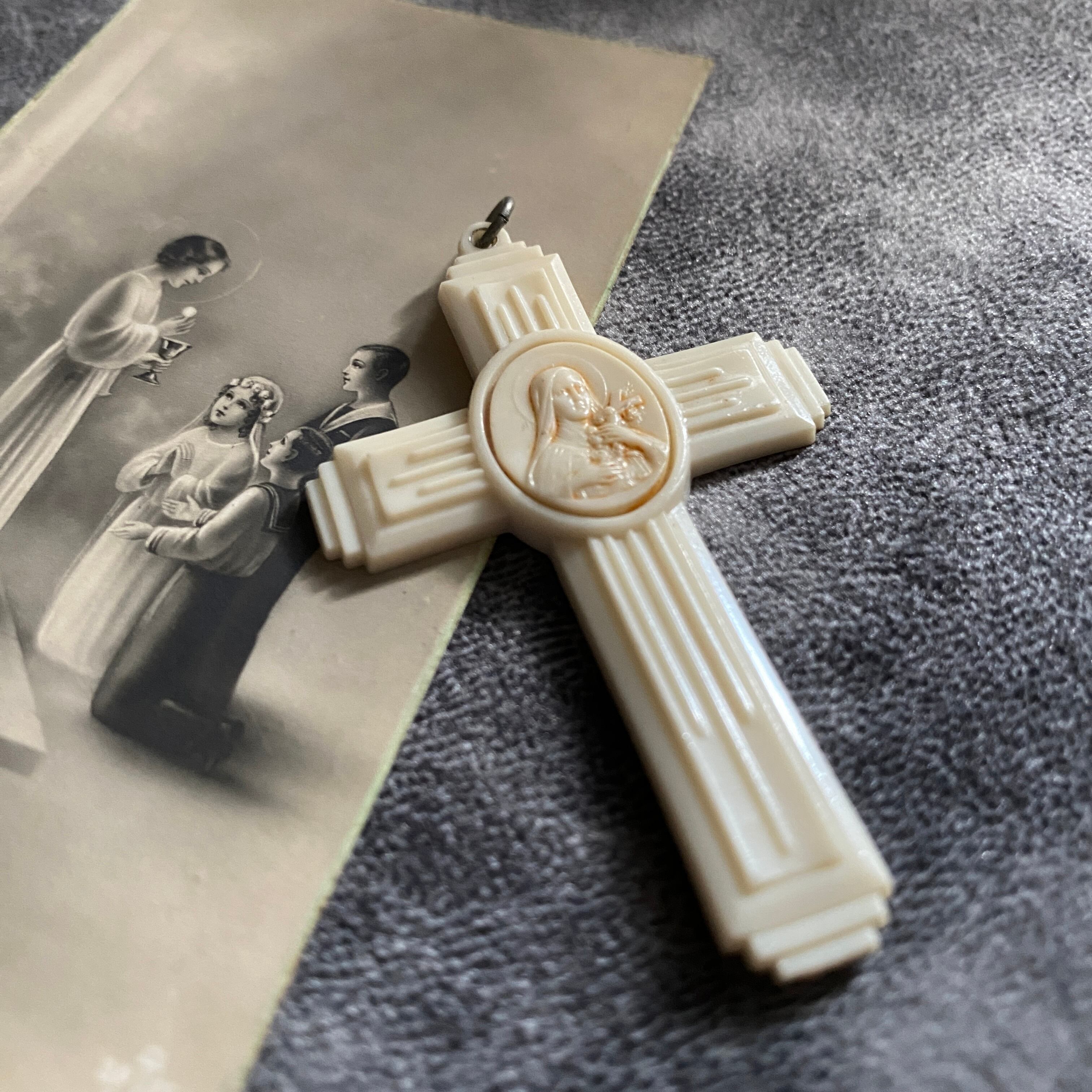 セルロイド素材で作られた、珍しい聖テレジアのクロス。