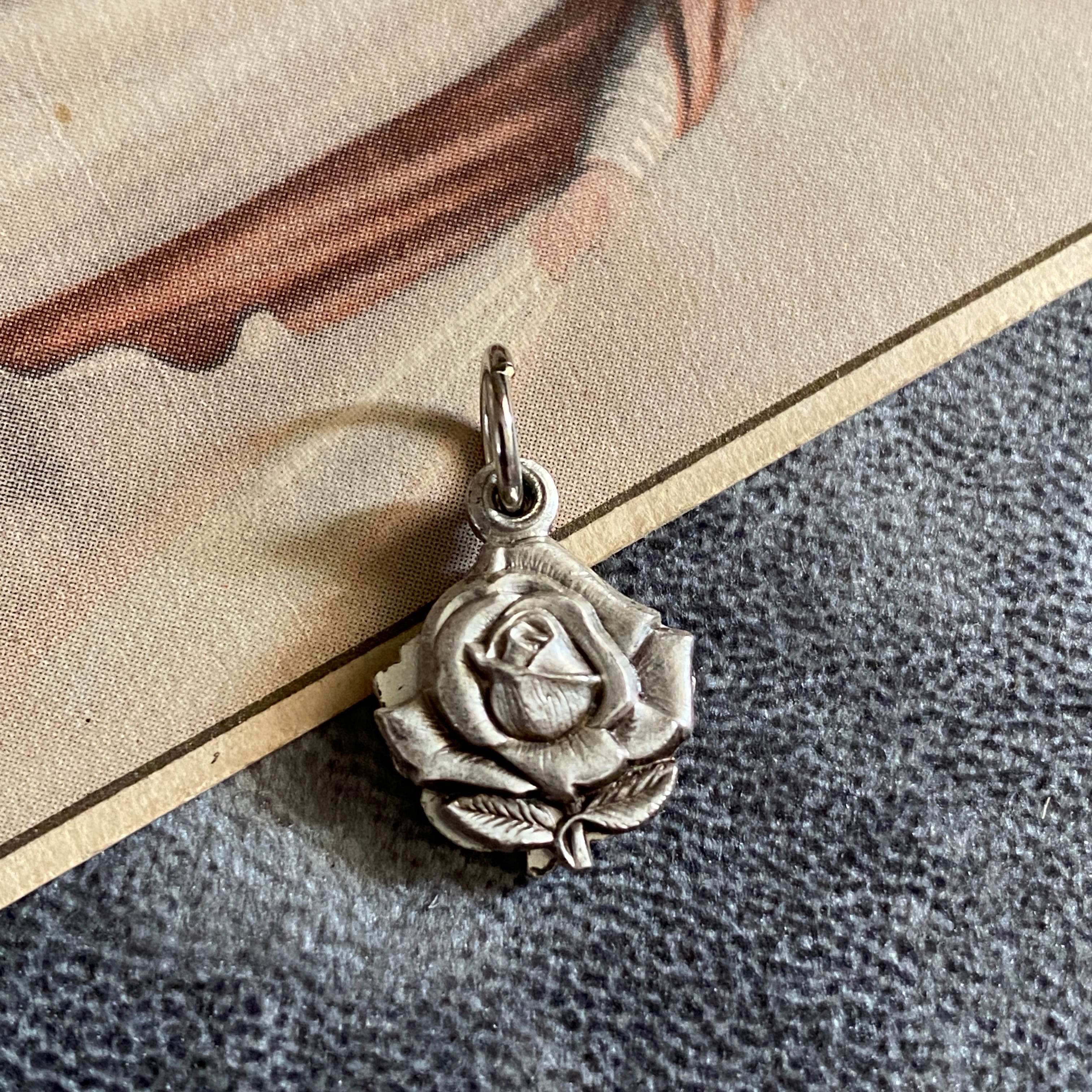 薔薇のつぼみをかたどった、可憐なロケットタイプのアンティークメダイ。