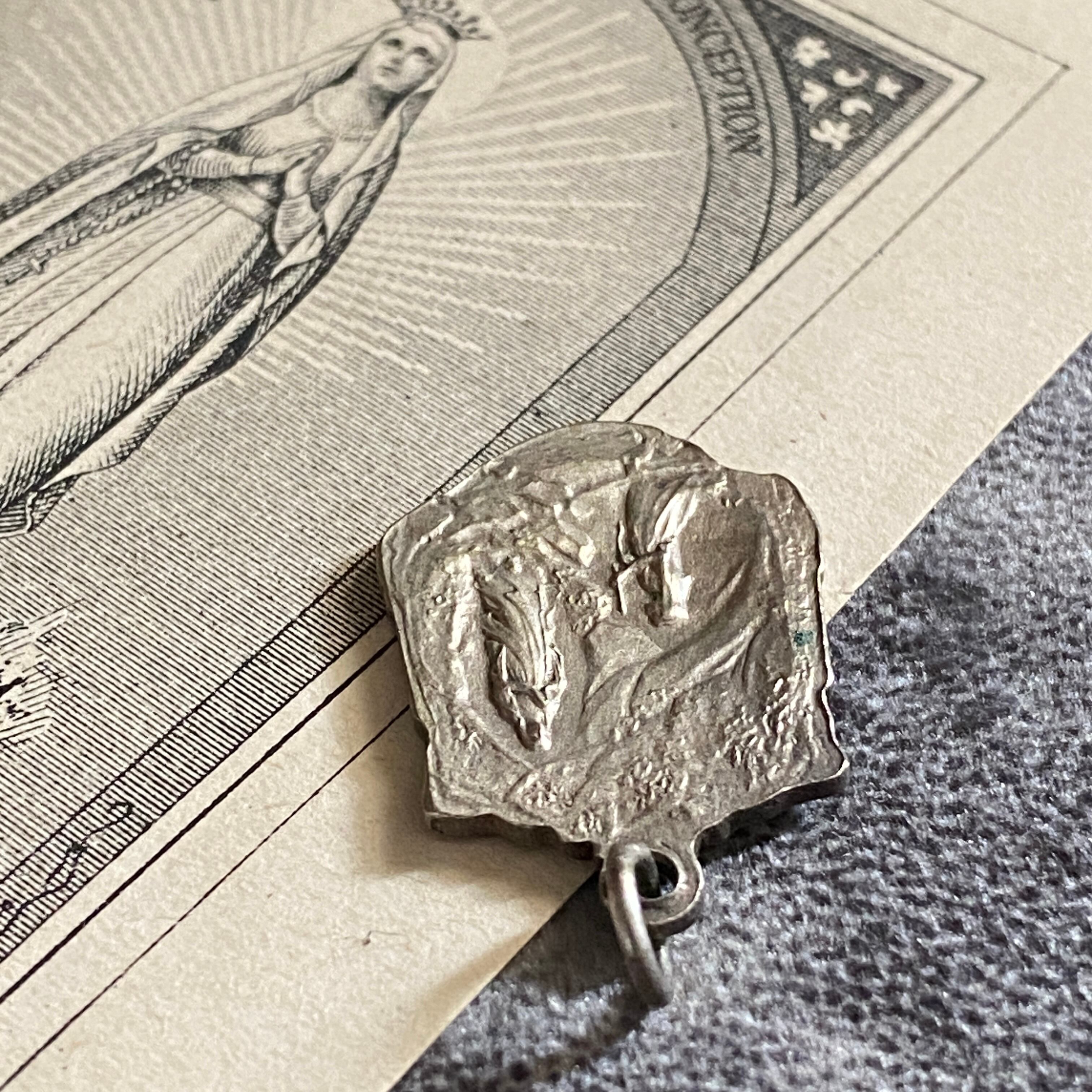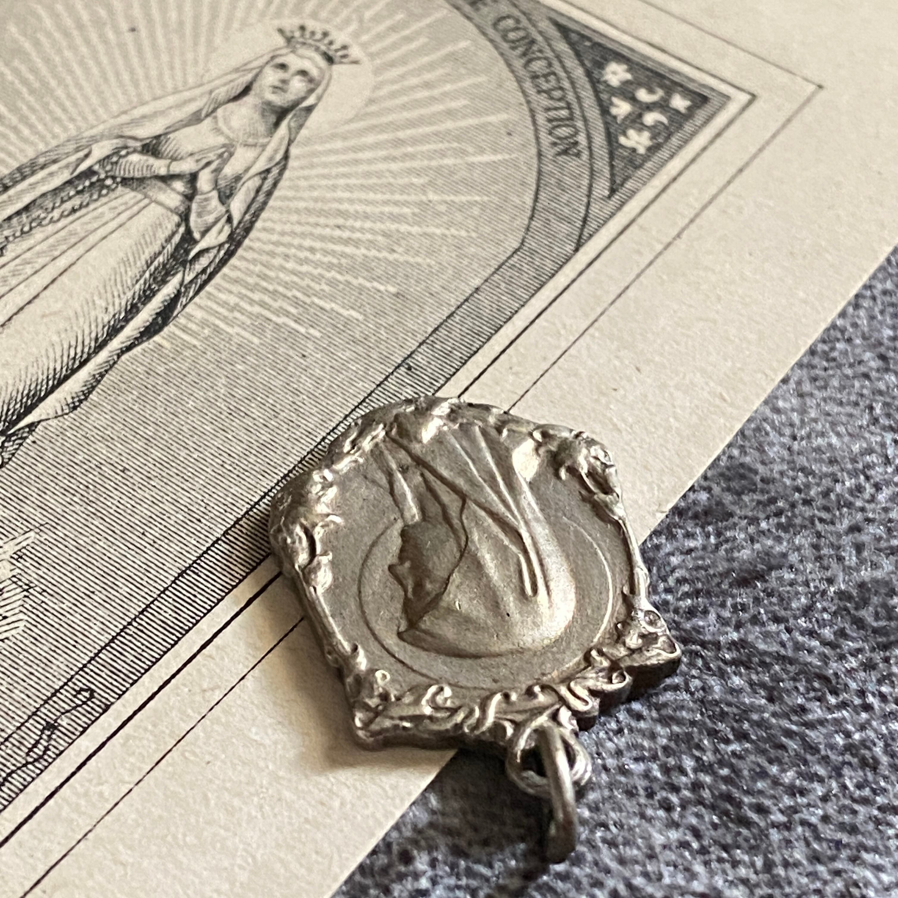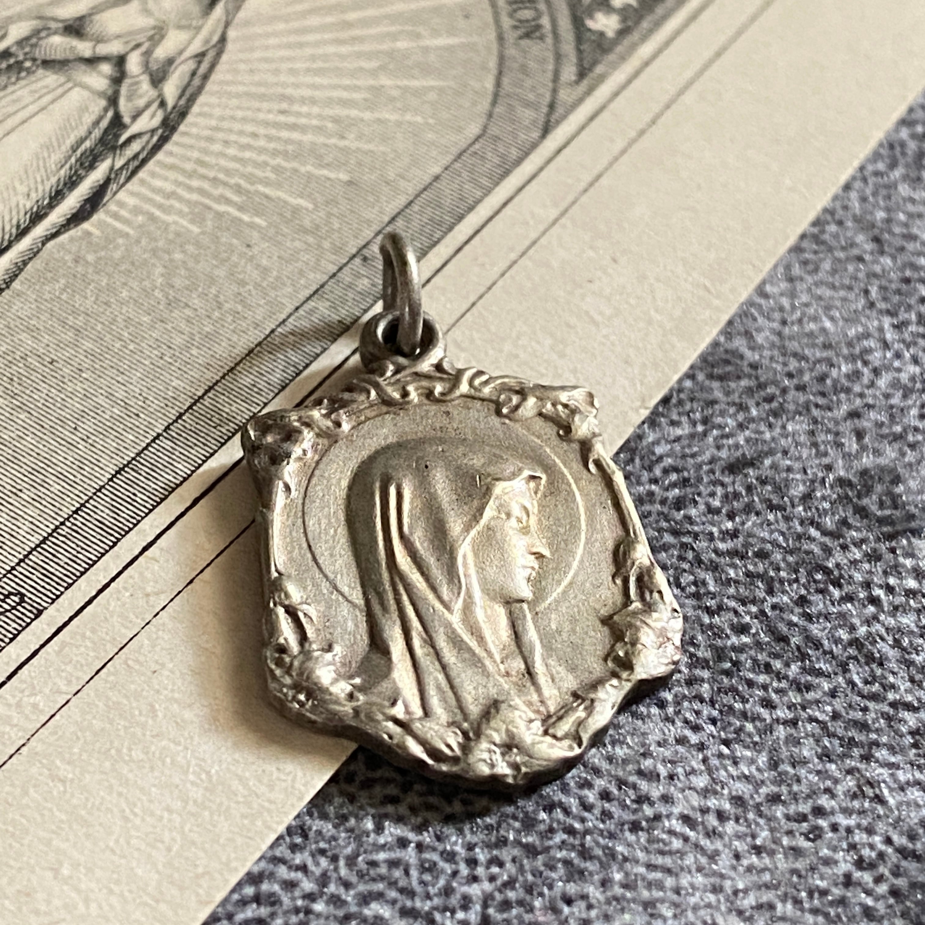 光を受けると、マリアさまのヴェールとフレームが一体となって輝きます。