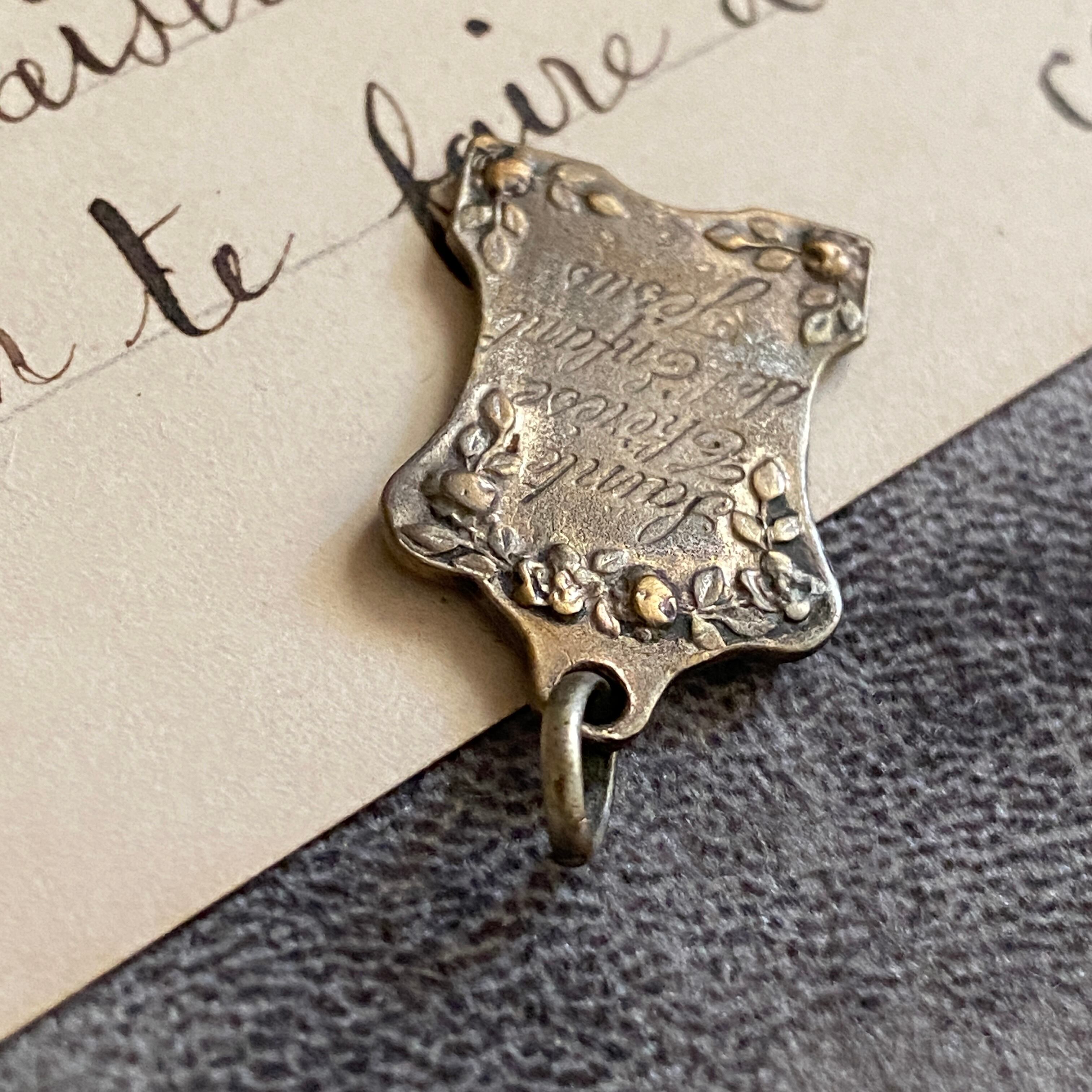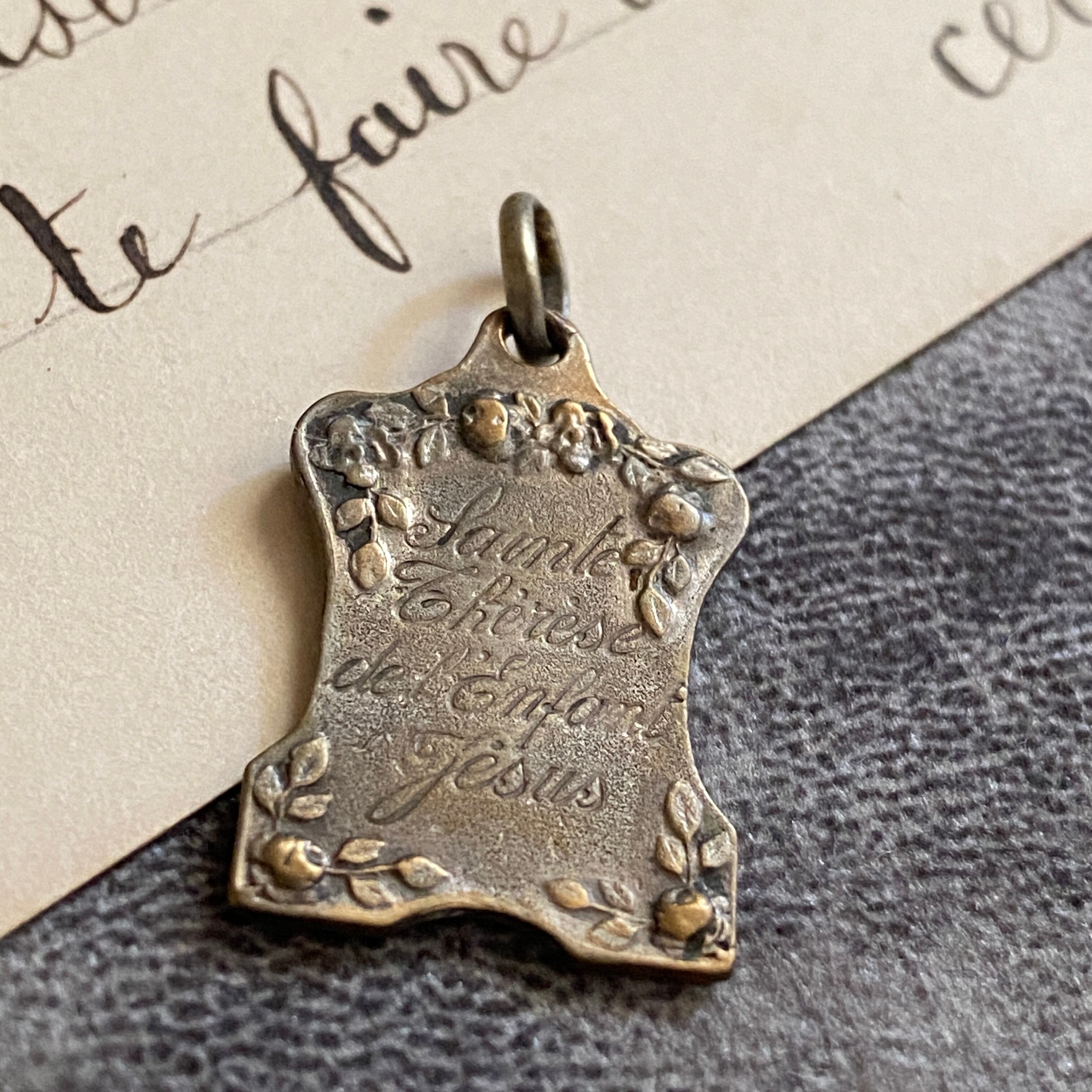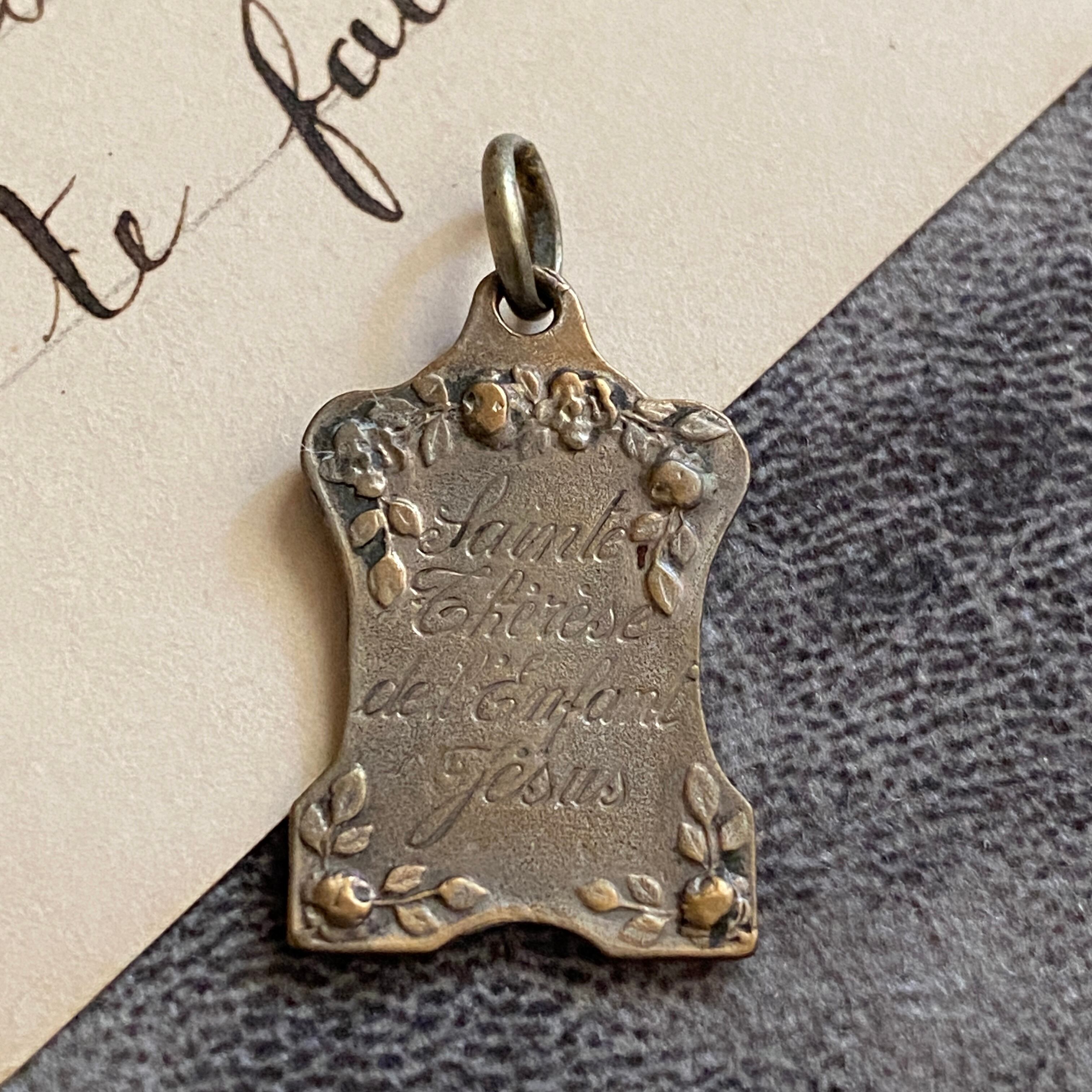 背面には「Sainte Thérèse de l’Enfant Jésus(幼きイエスの聖テレジア)」の銘が刻まれ、