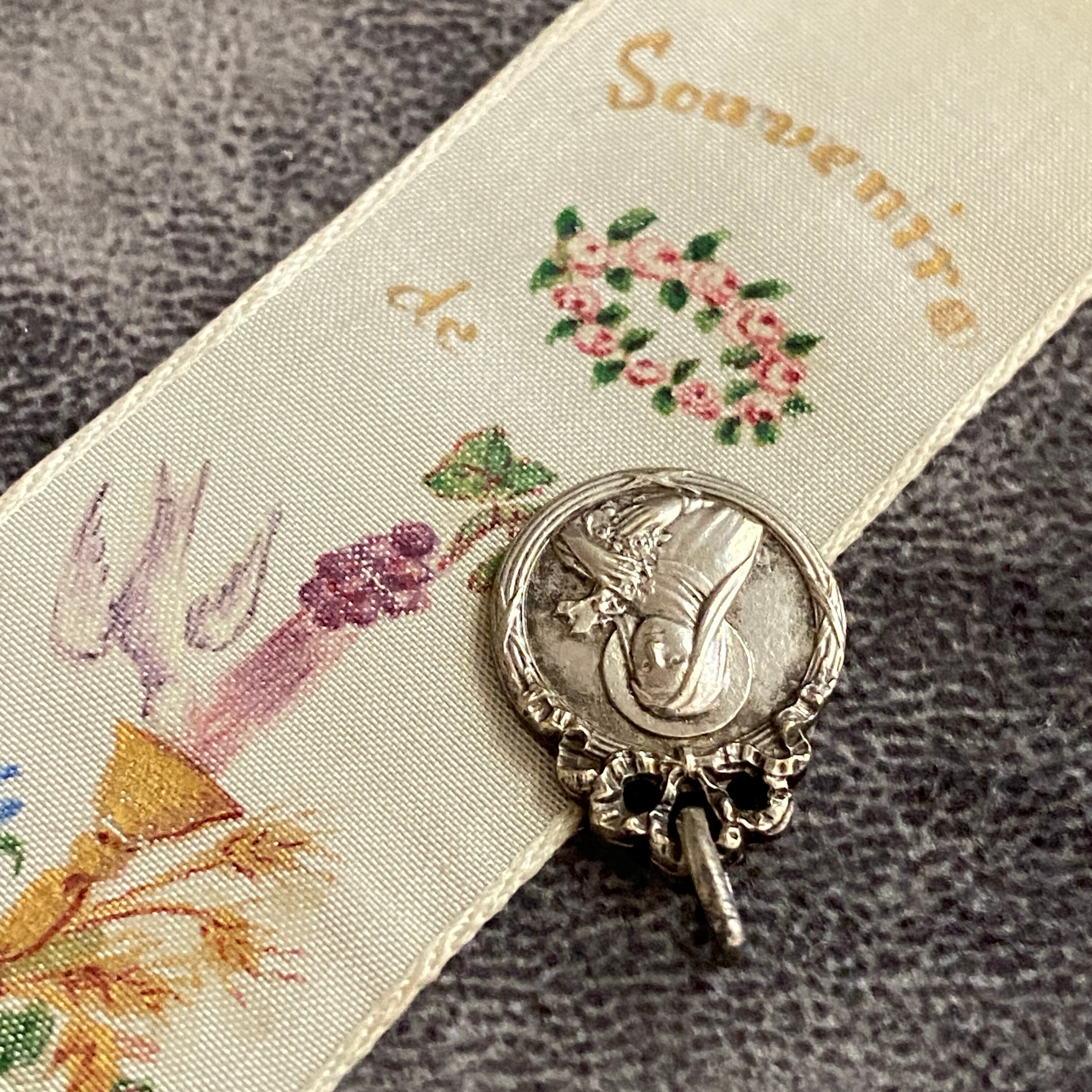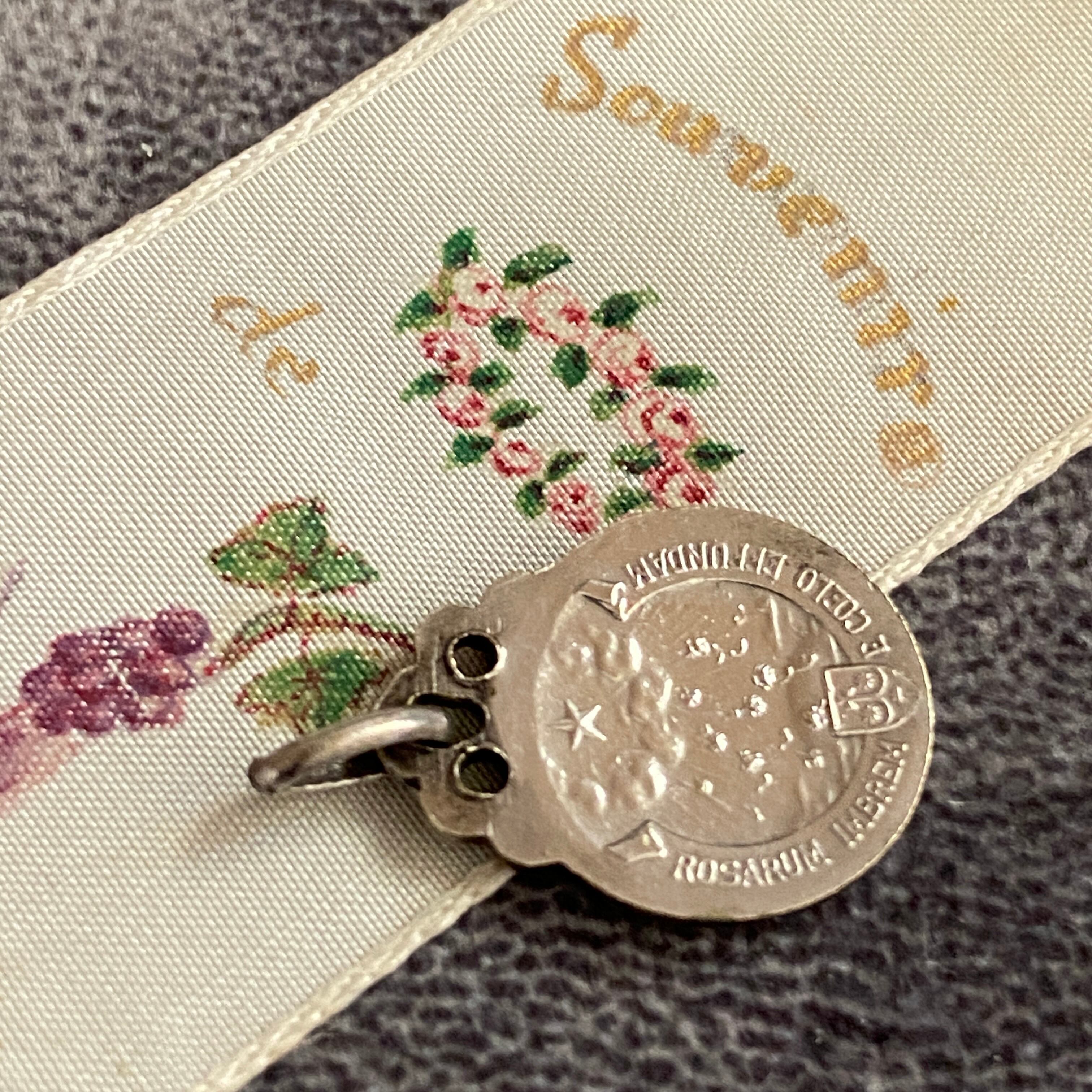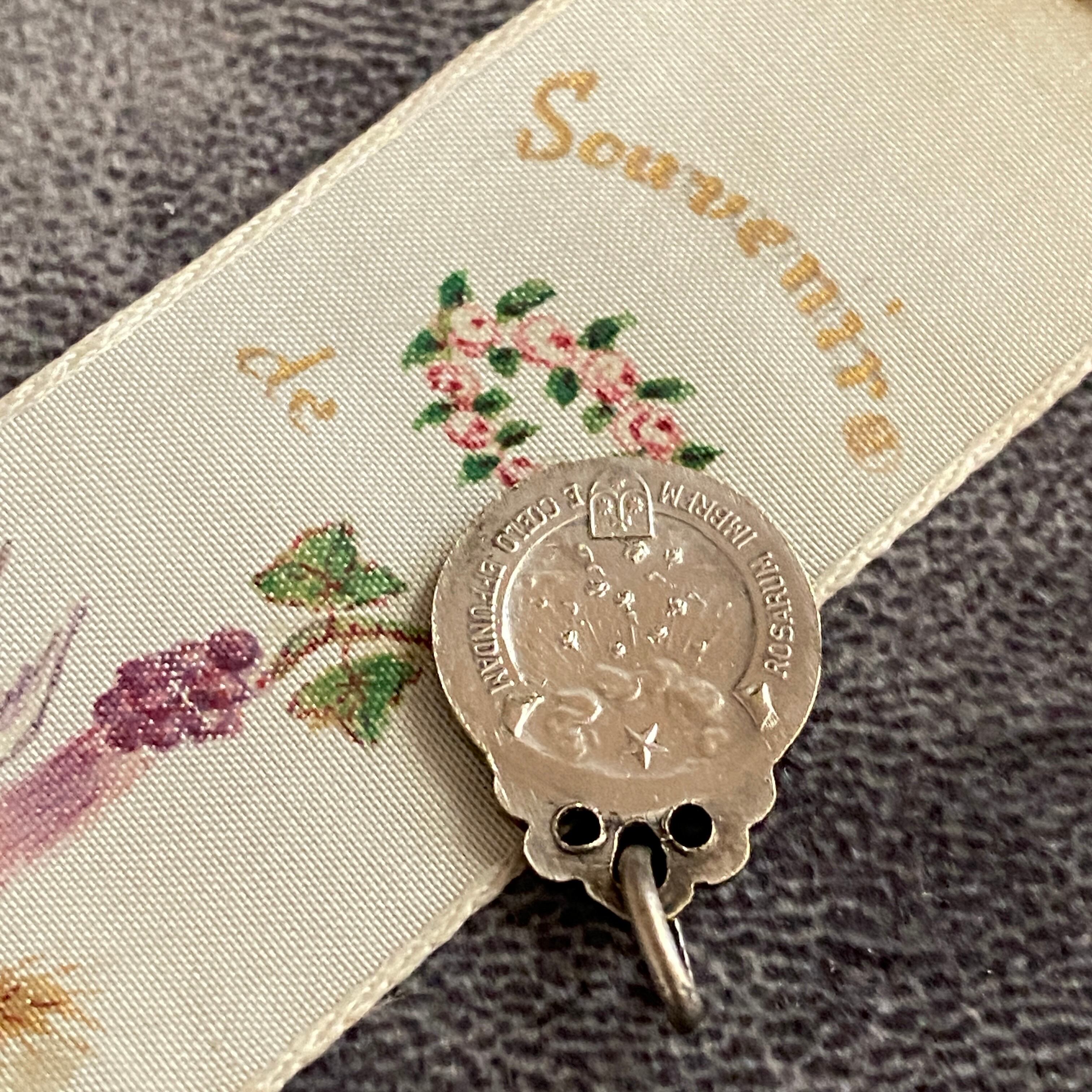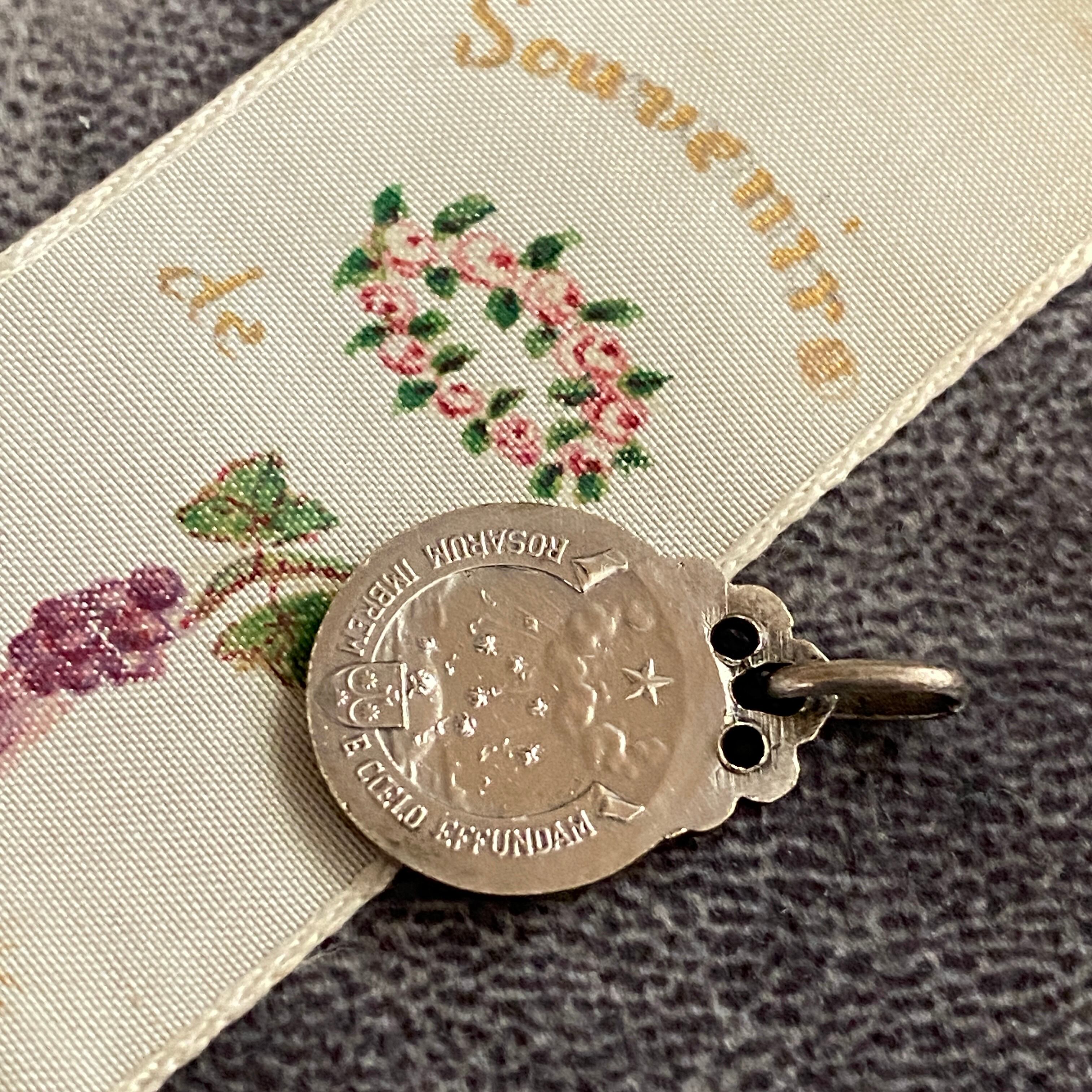 やわらかな微笑みを浮かべる聖テレジアが刻まれた、フランスのアンティークメダイ。