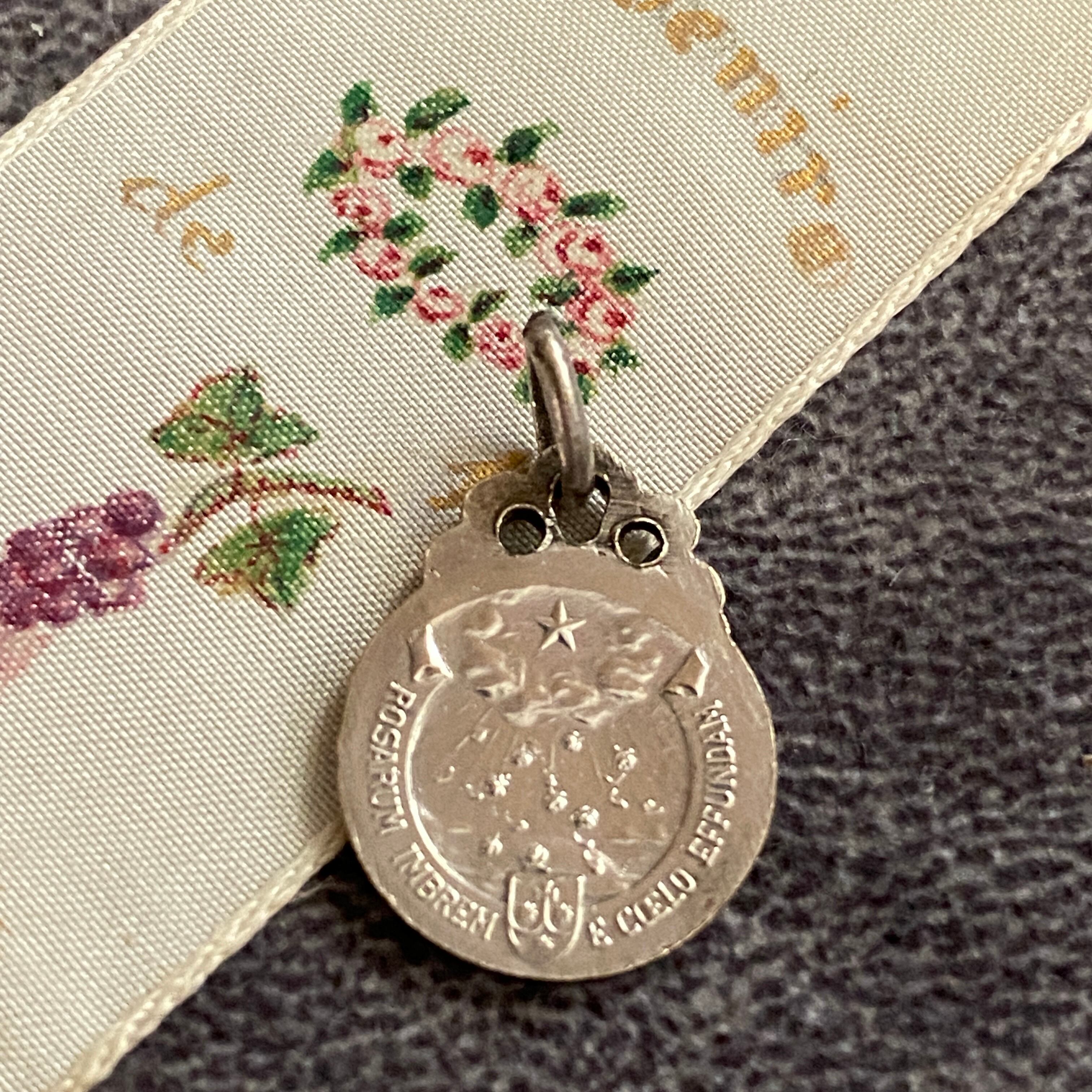 背面には「Posuerunt Theresi A Caelo Effundam」とラテン語で刻まれ、