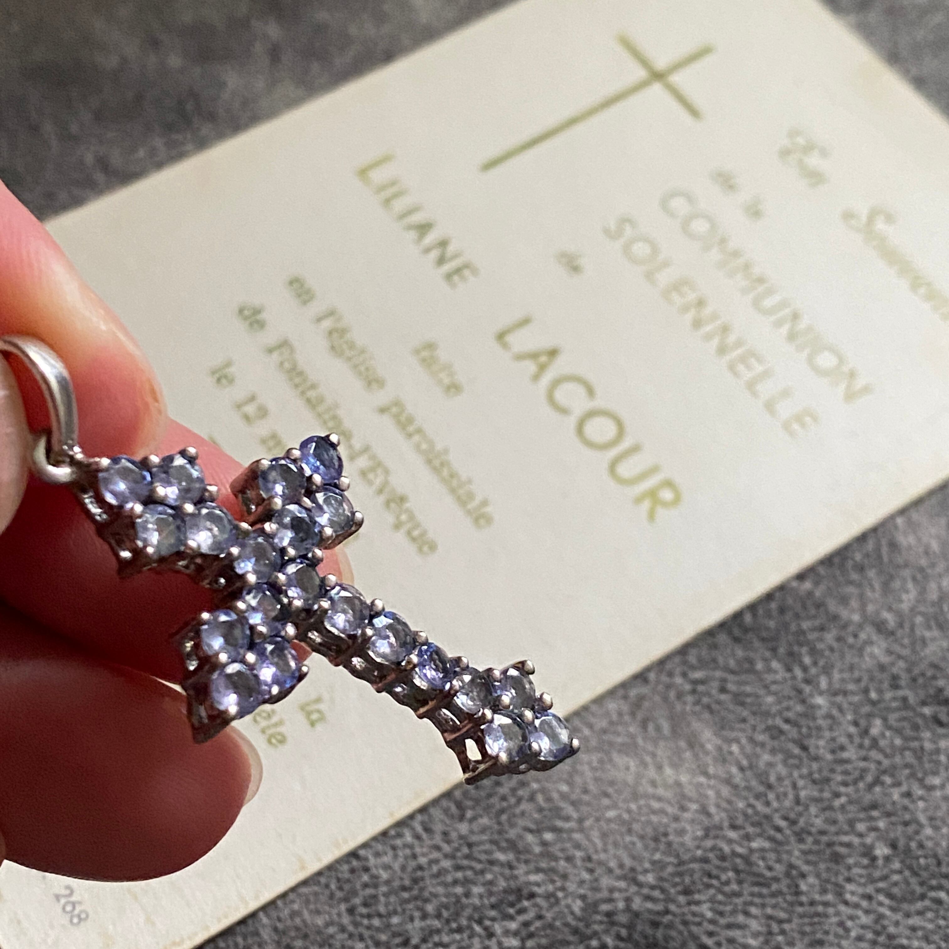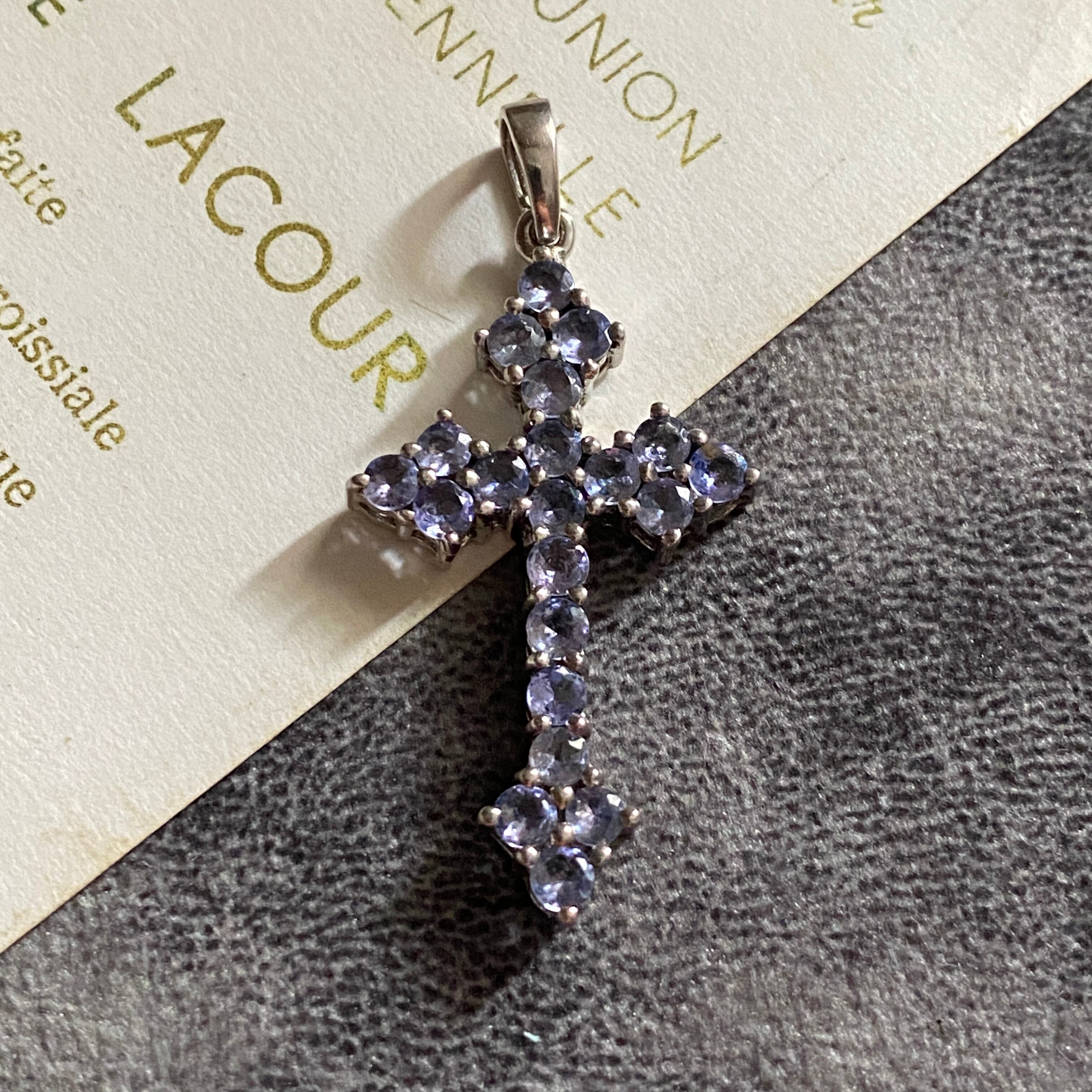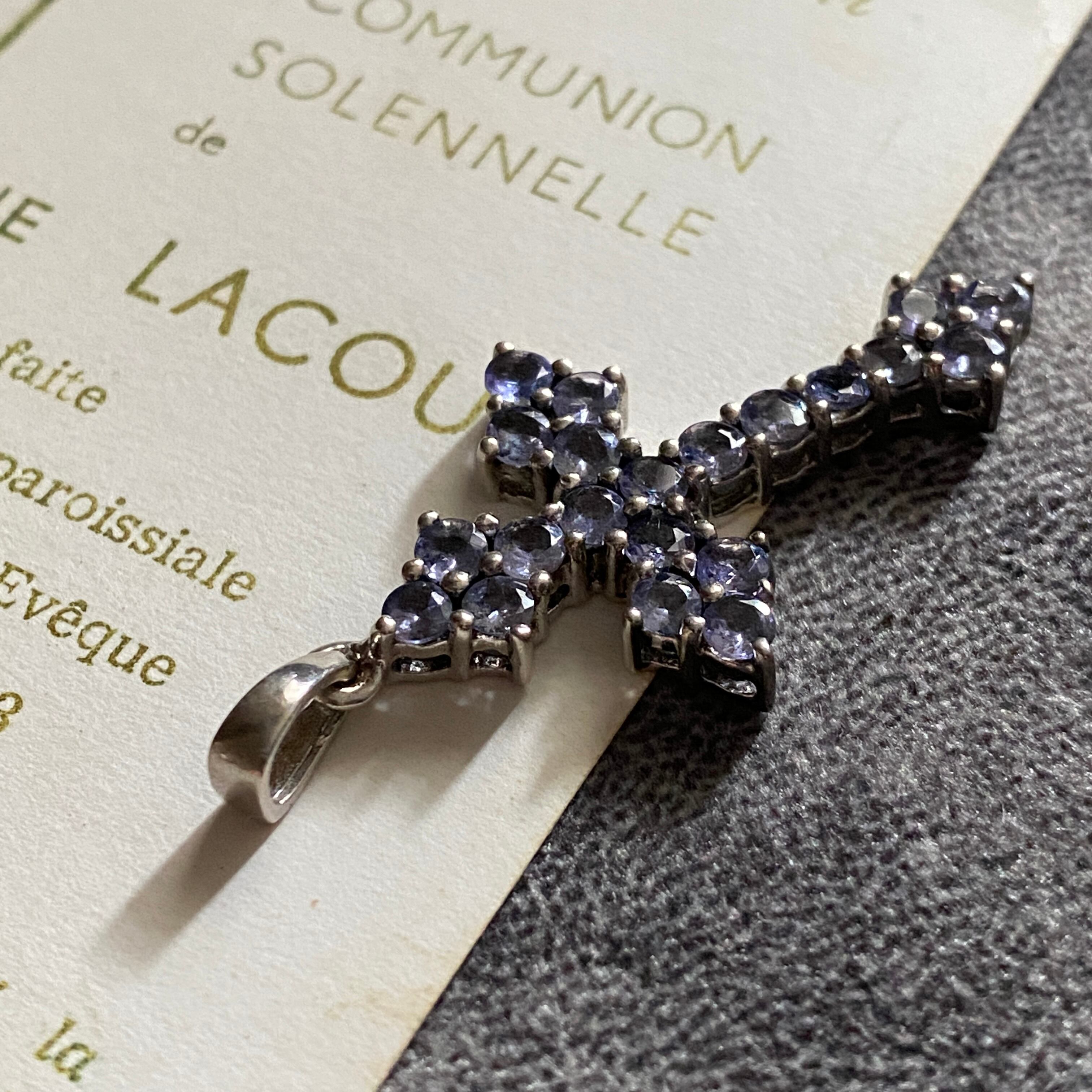 英国ジュエリーブランド The Genuine Gemstone Company によるタンザナイトのクロスペンダント。
