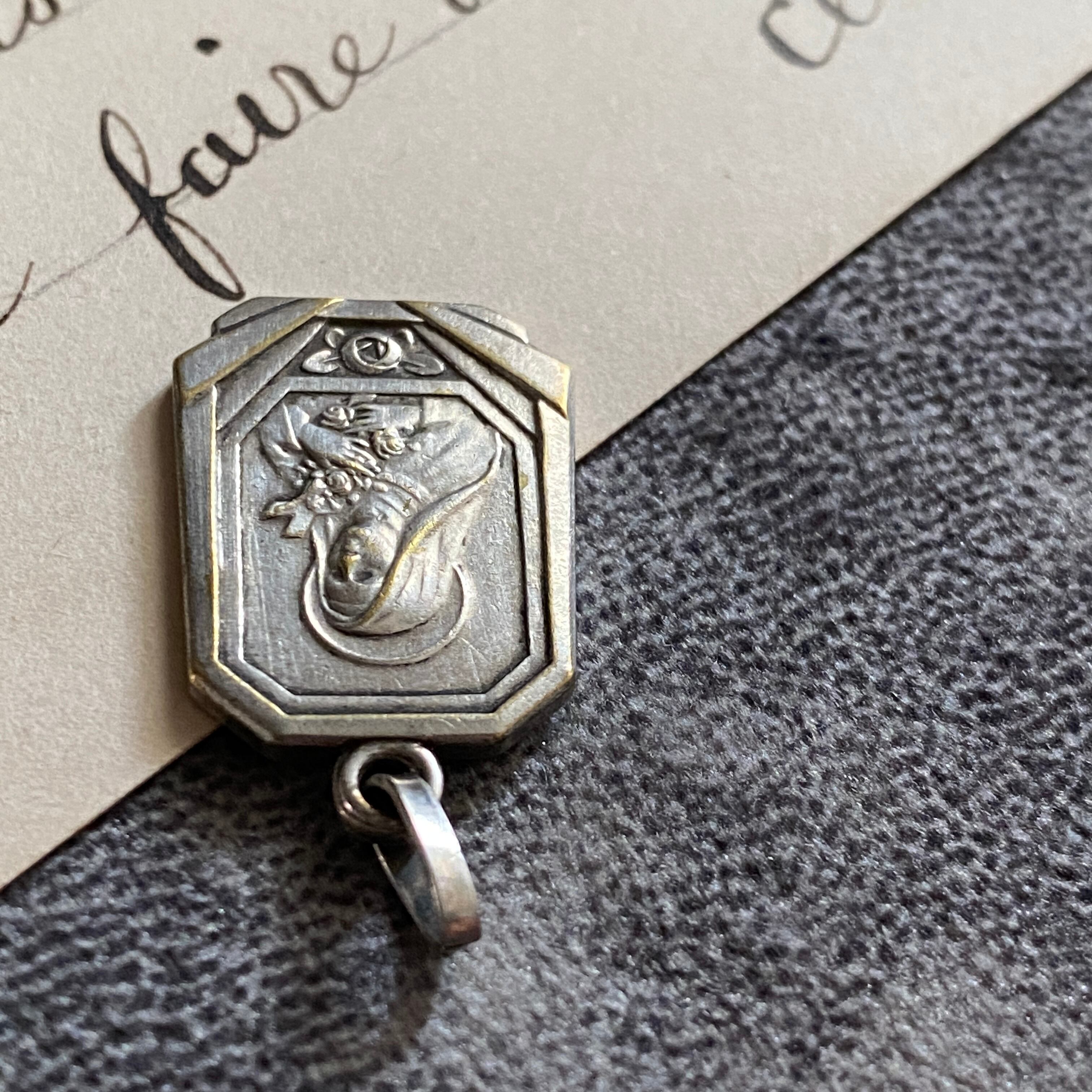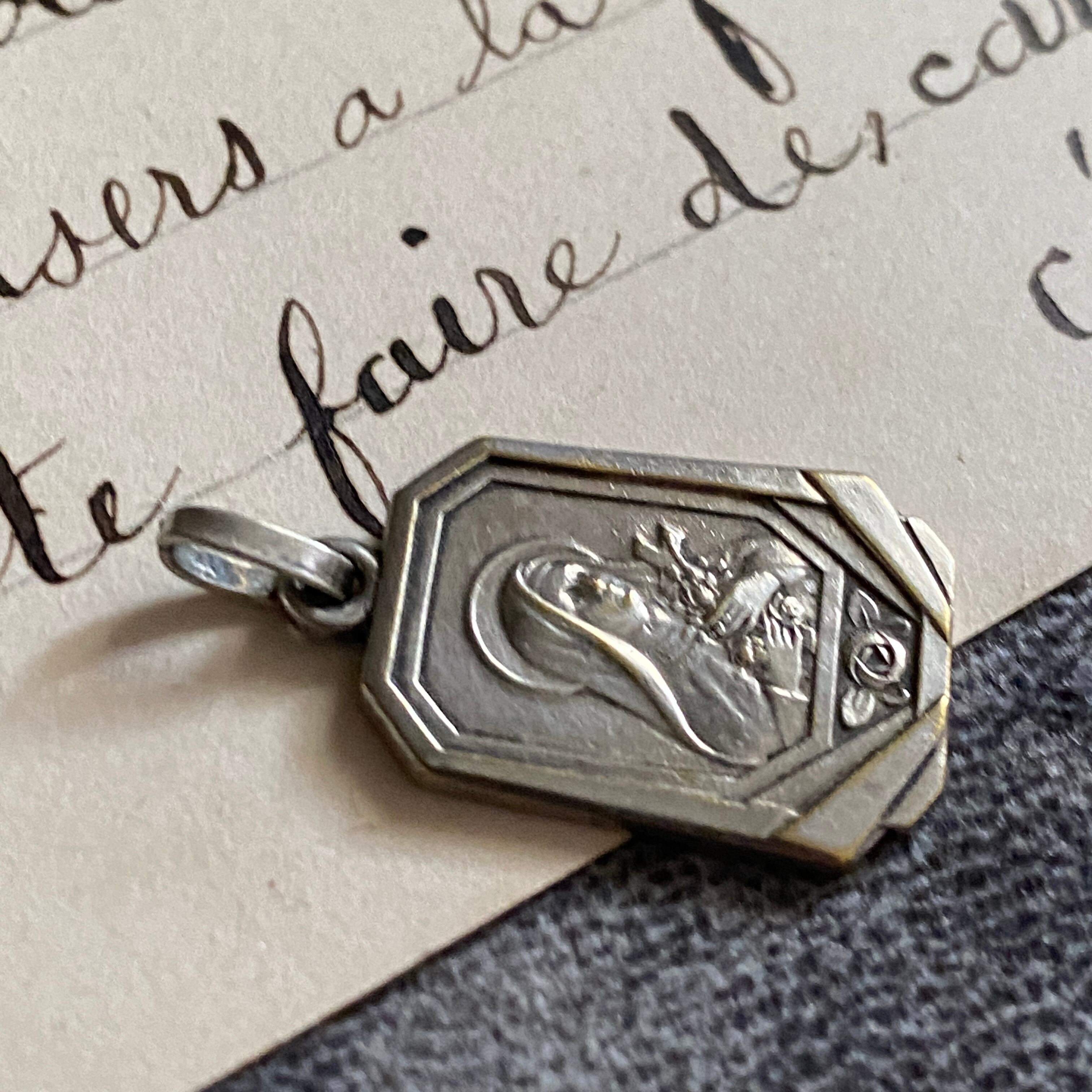 優美な八角形をベースに、アールデコ様式の直線と放射デザインが施された美しいメダイ。