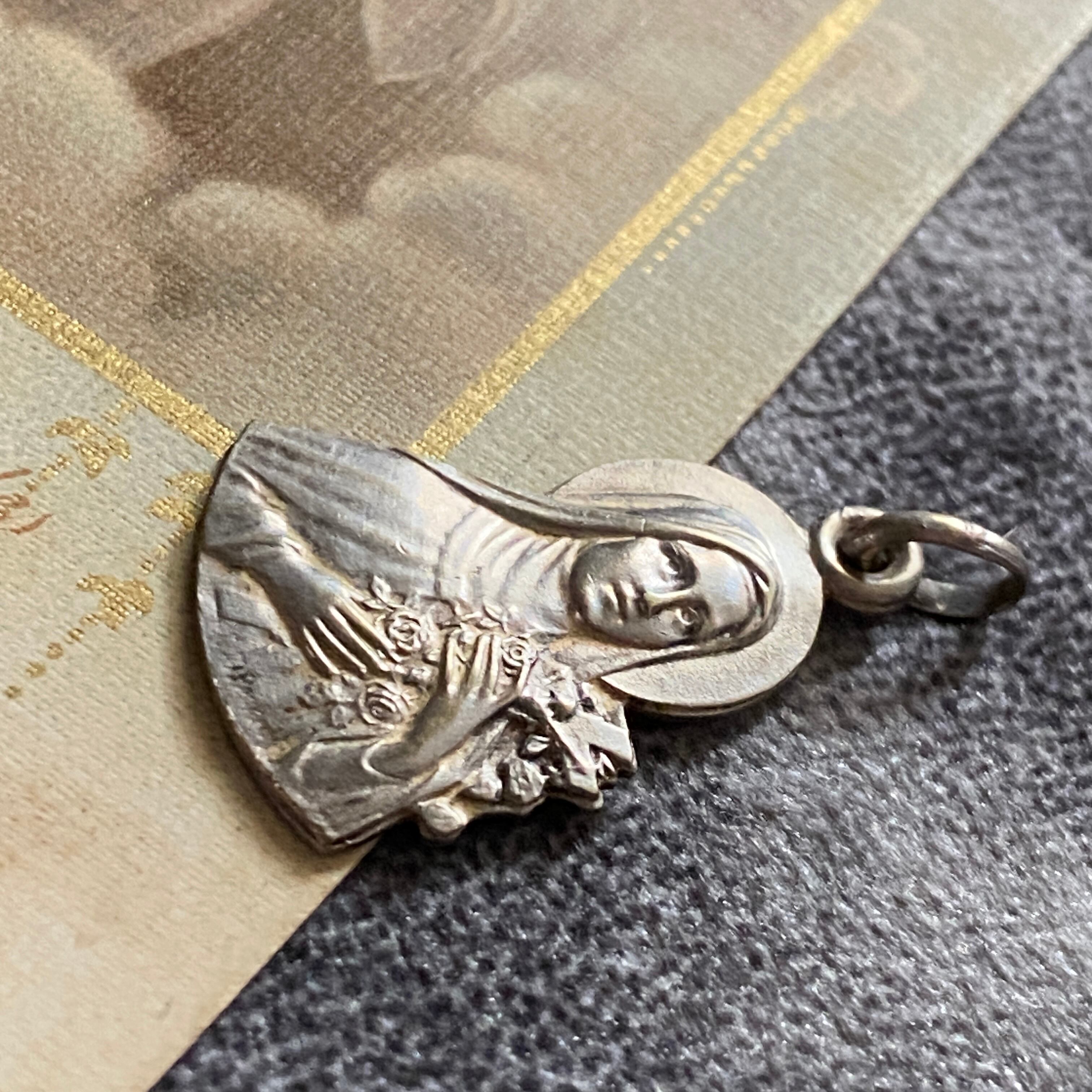 祈りの瞬間をそのまま閉じ込めたような、静謐な気配を放つ聖テレジアのメダイ。