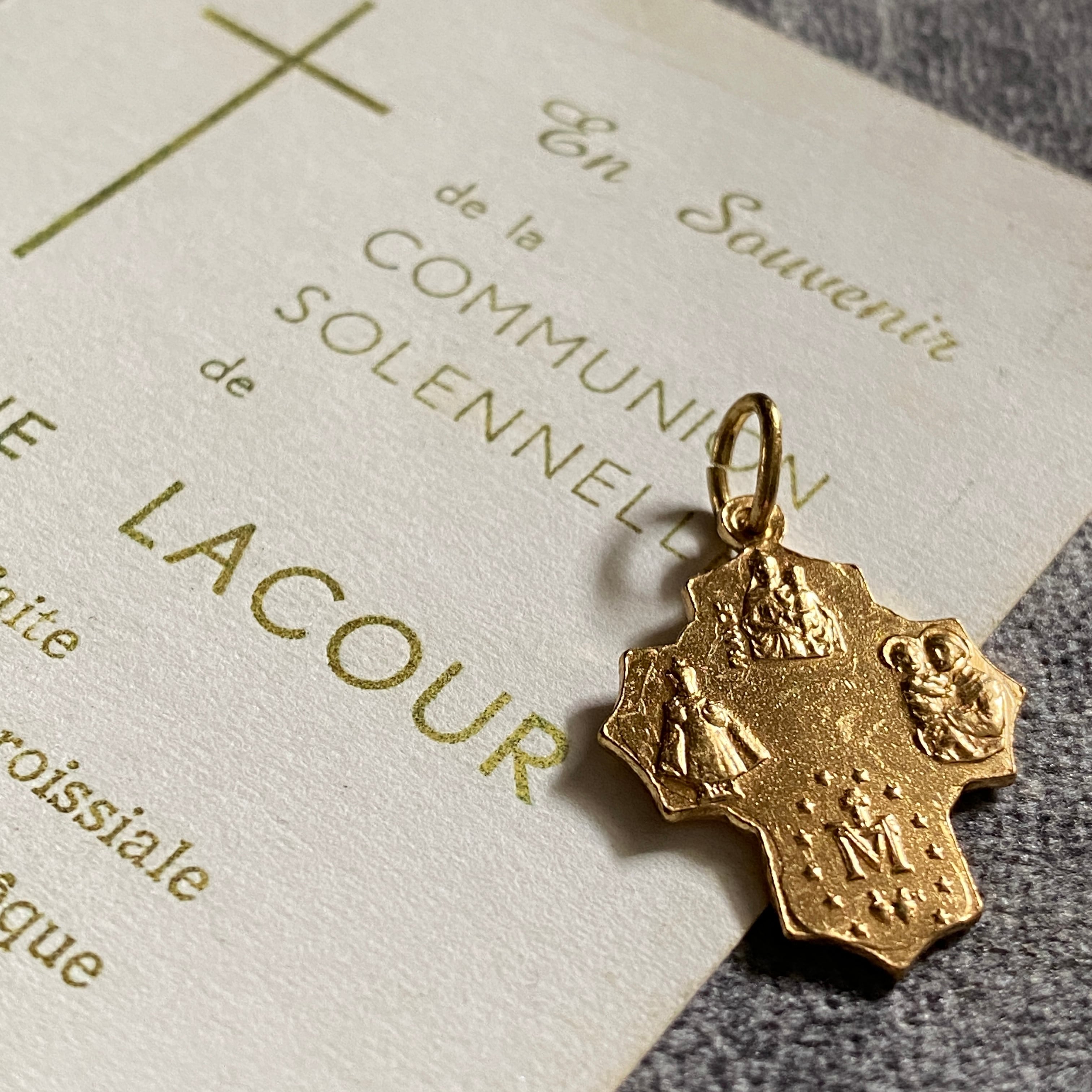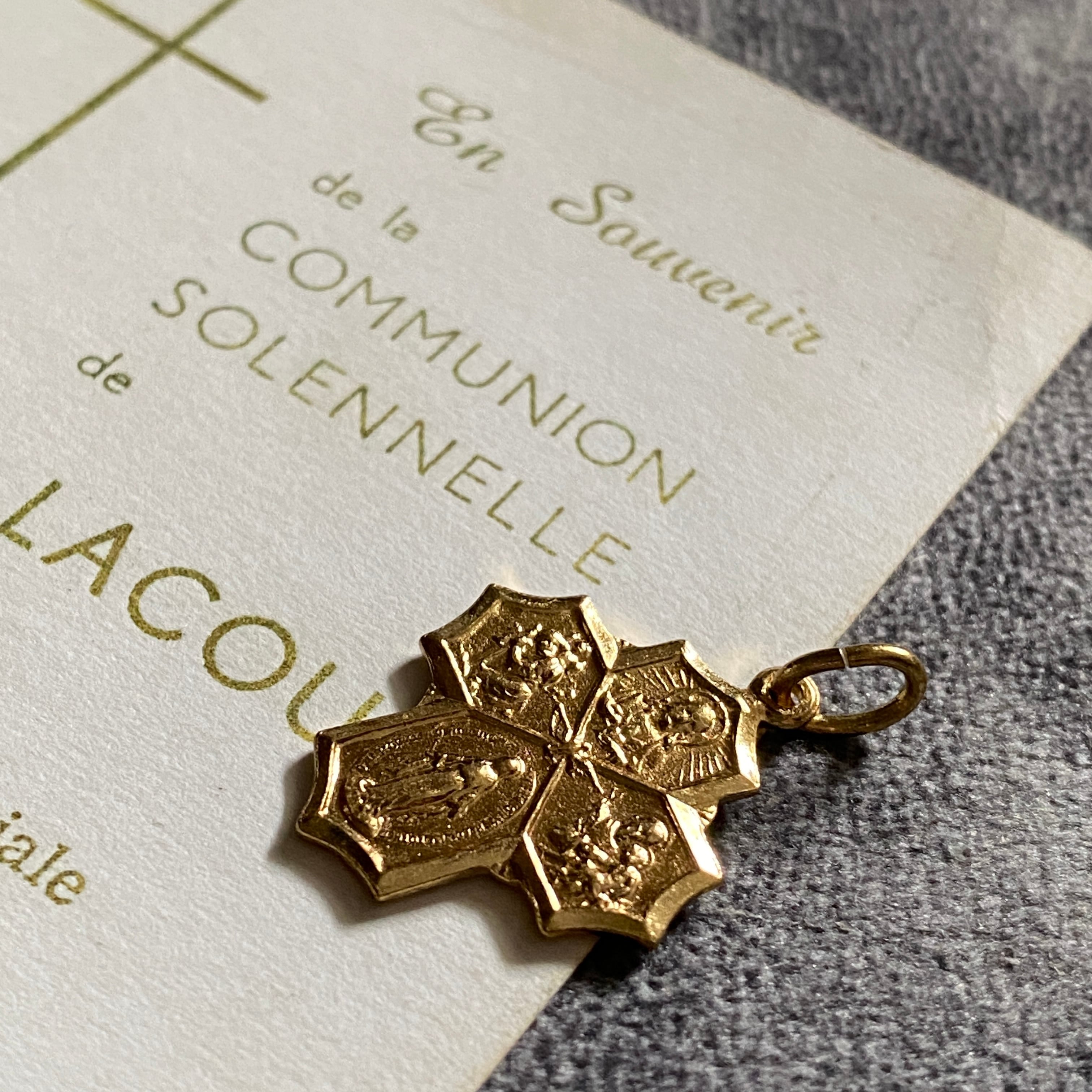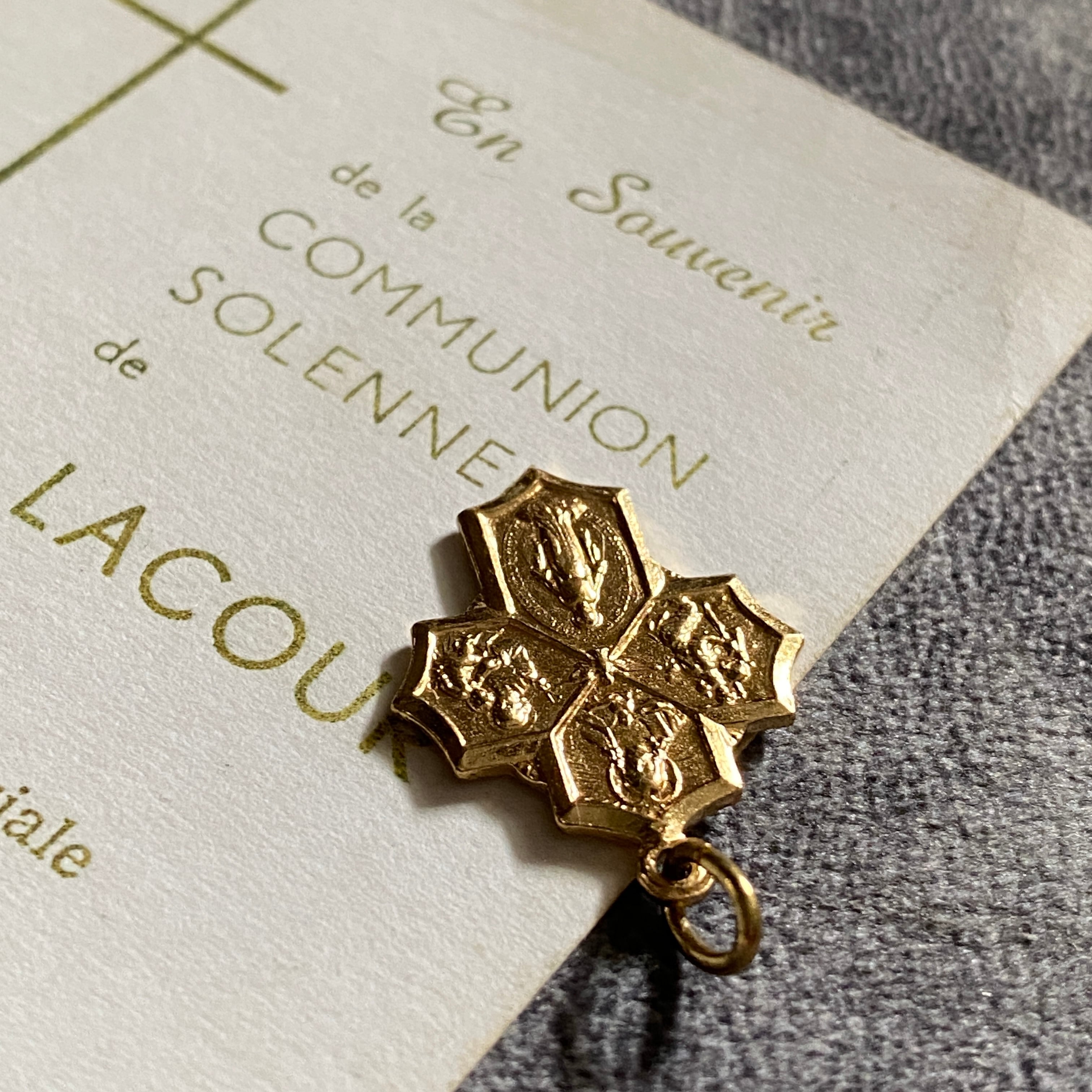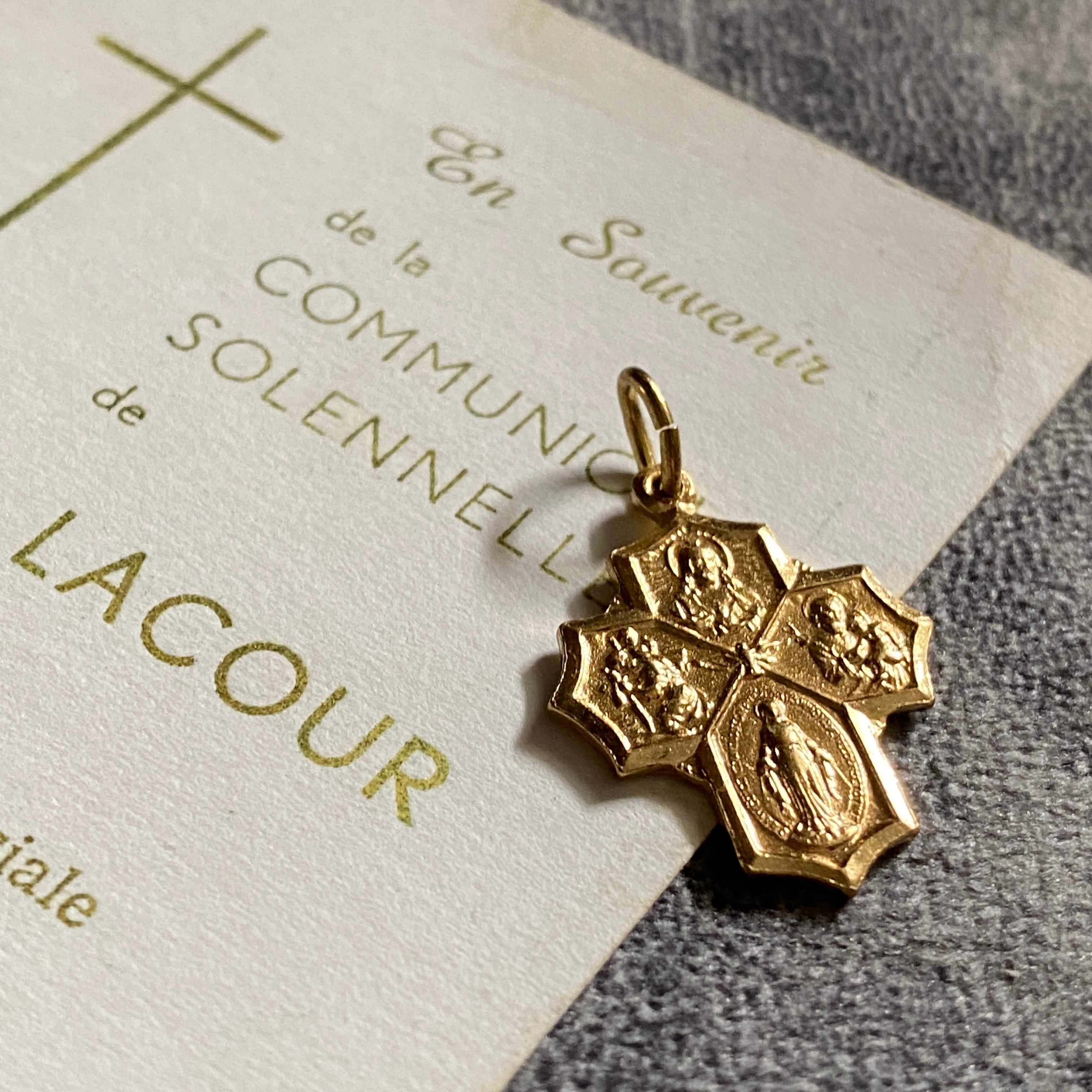 十字の中に4つの聖なるモチーフを宿した、フランス製の4wayメダイクロス。