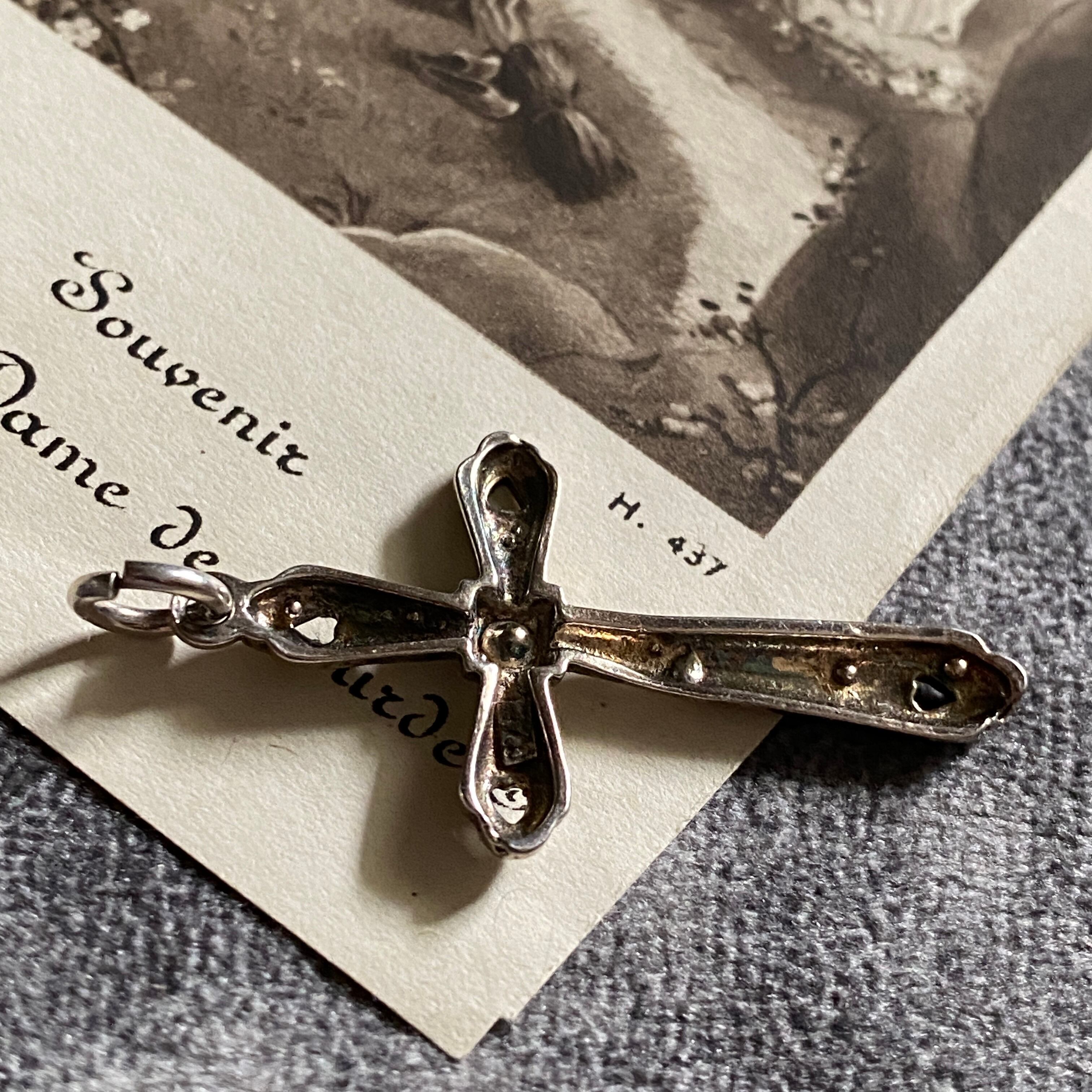 繊細な透かし細工が施された、立体感のあるシルバークロス。