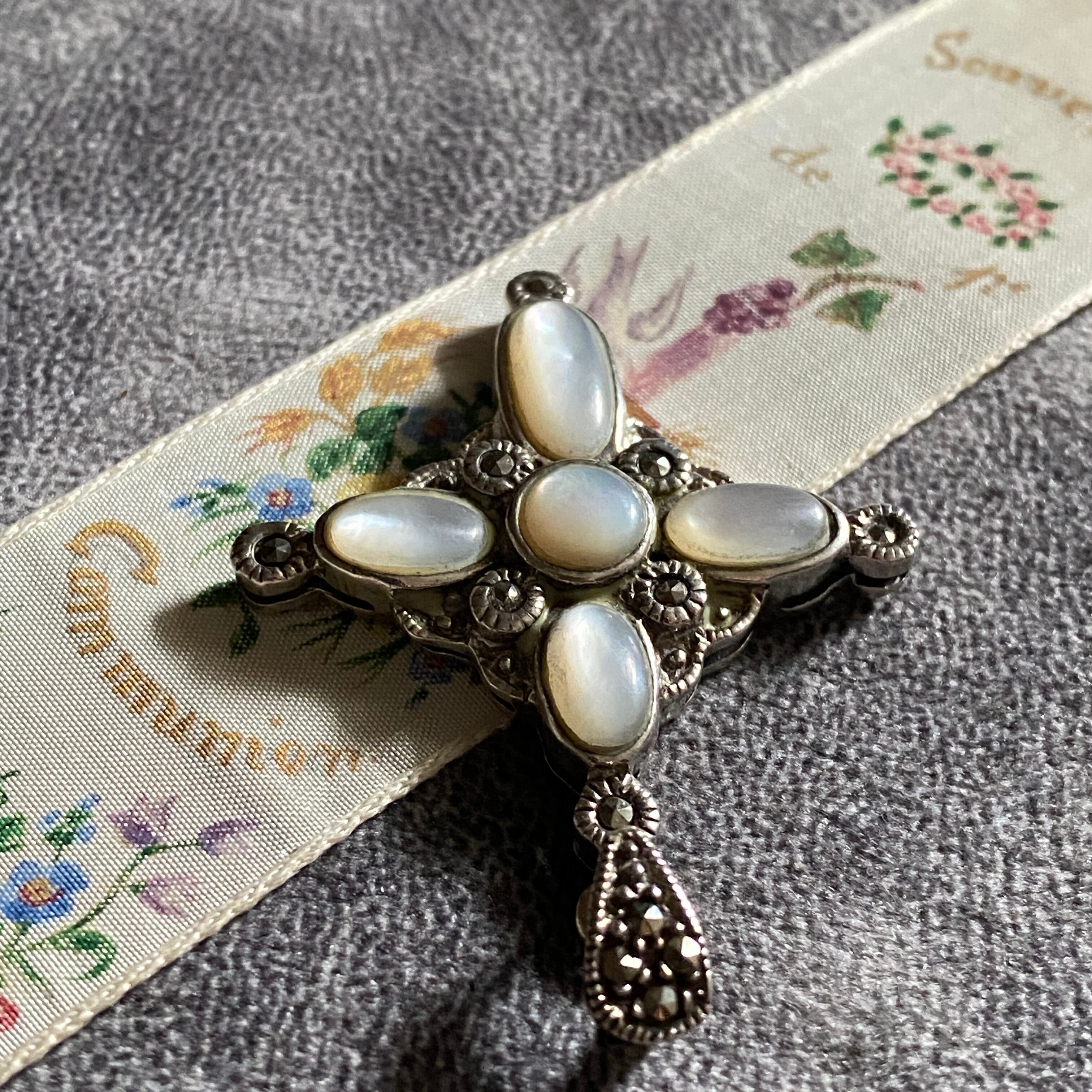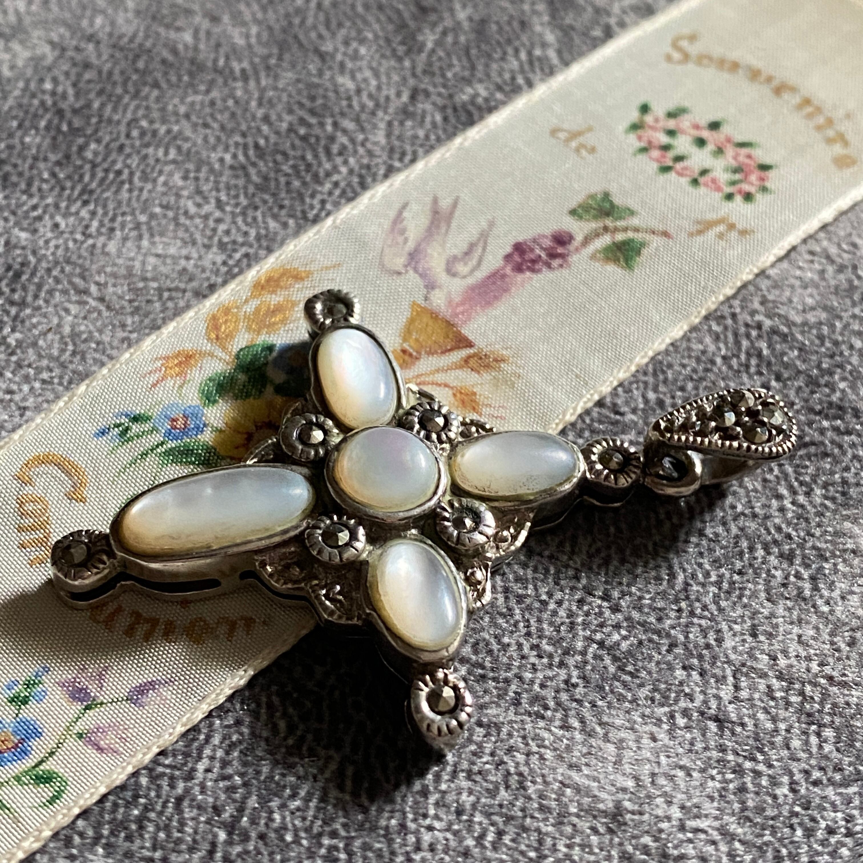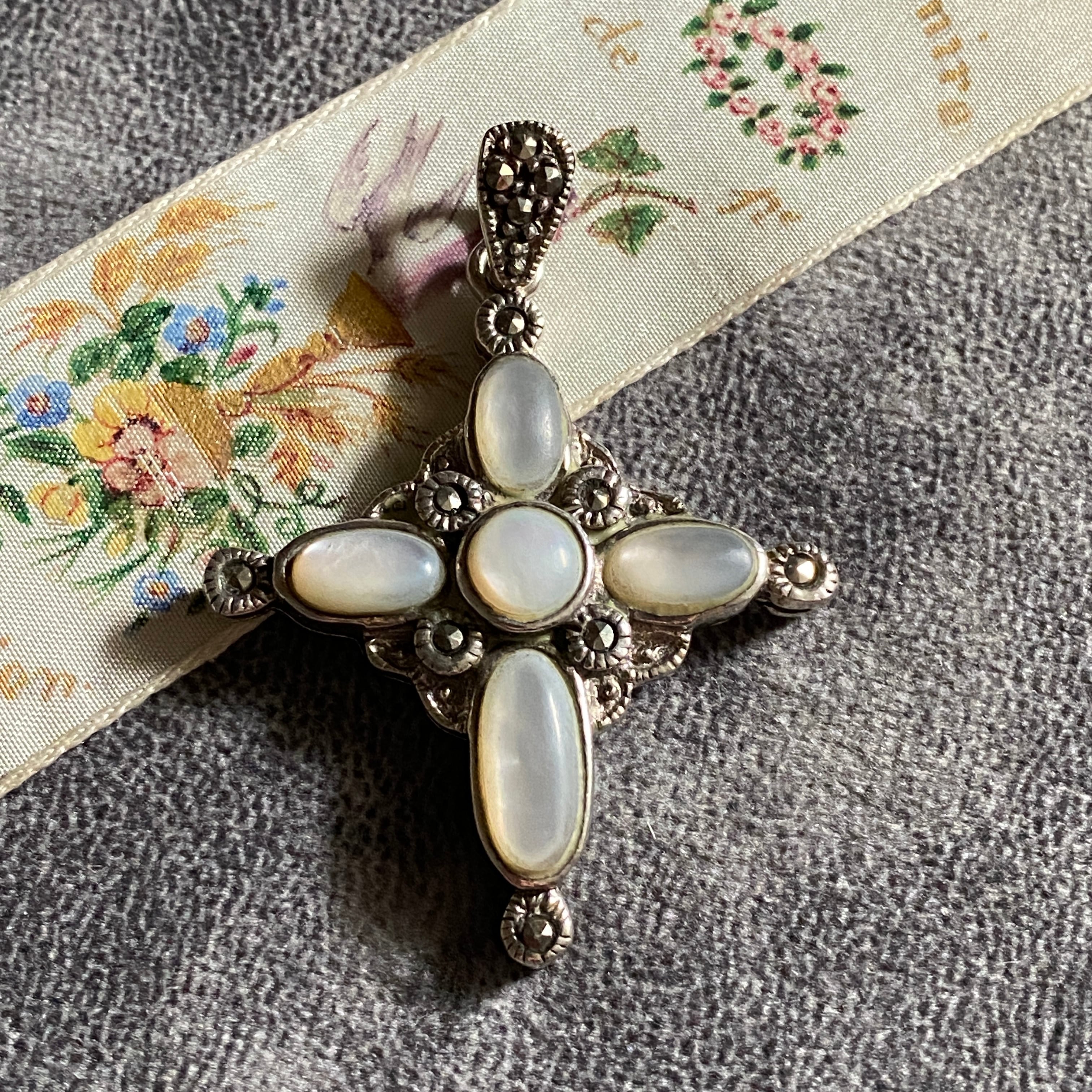 十字の中心と四方に配された、可憐で上品なヴィンテージクロス。
