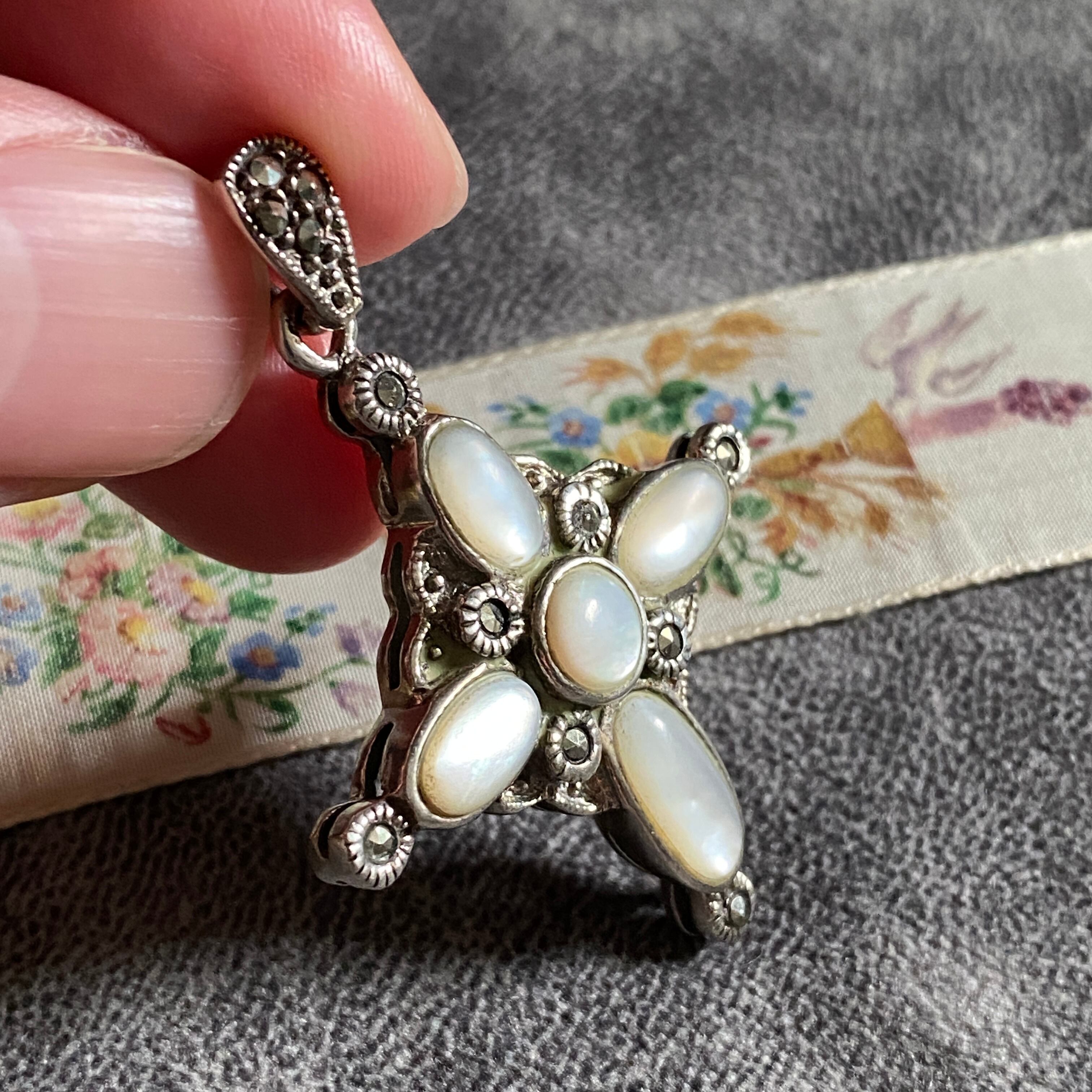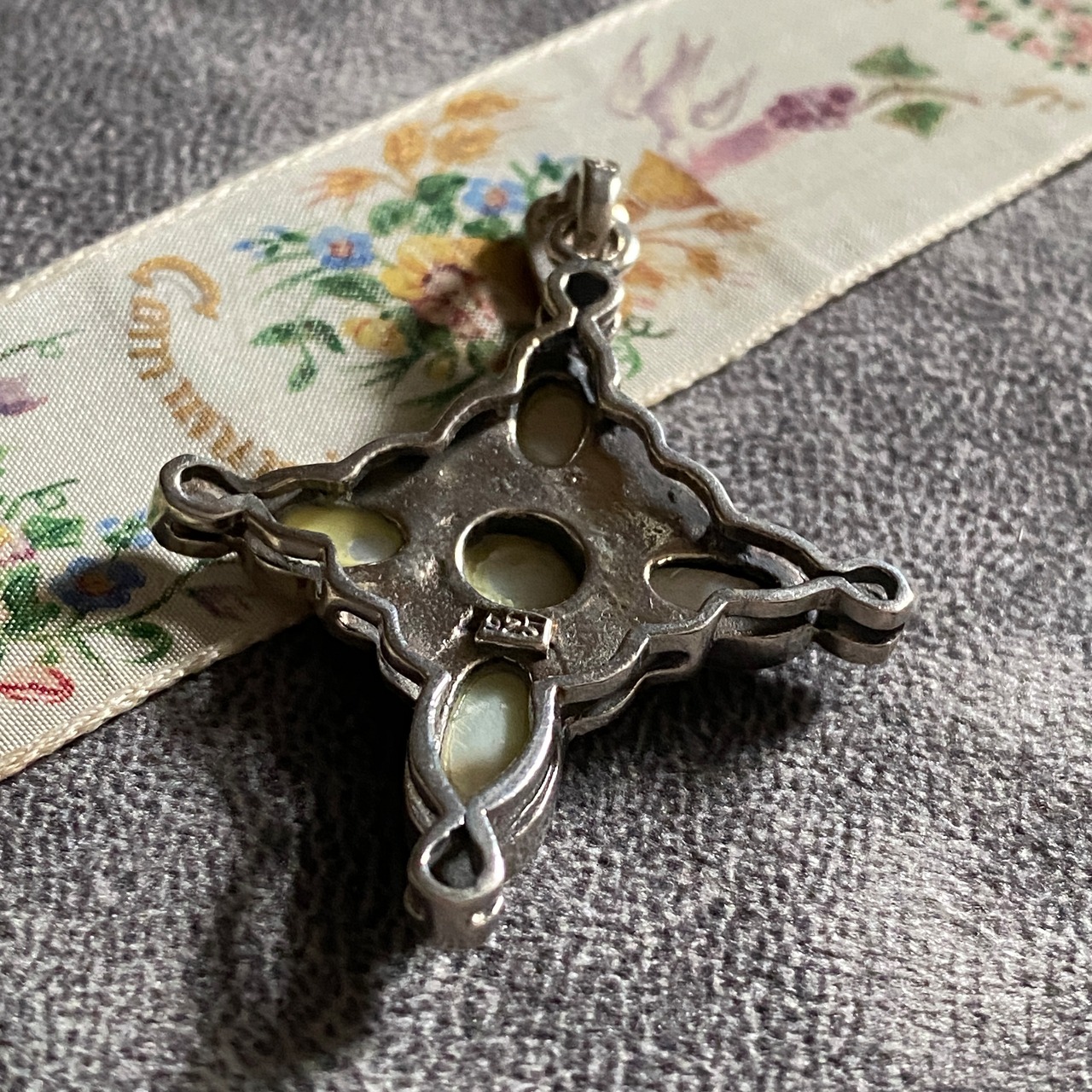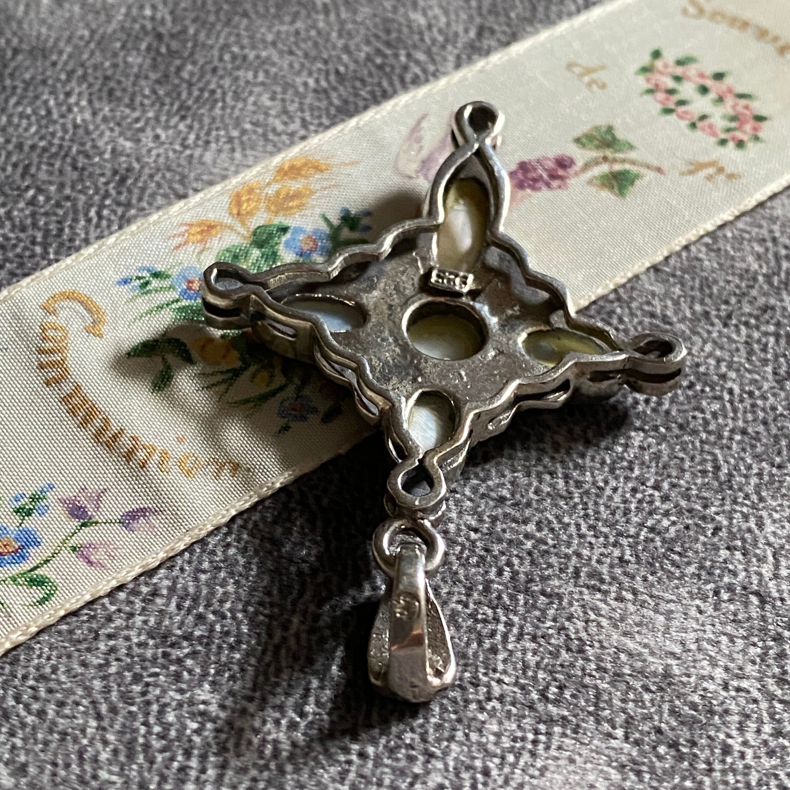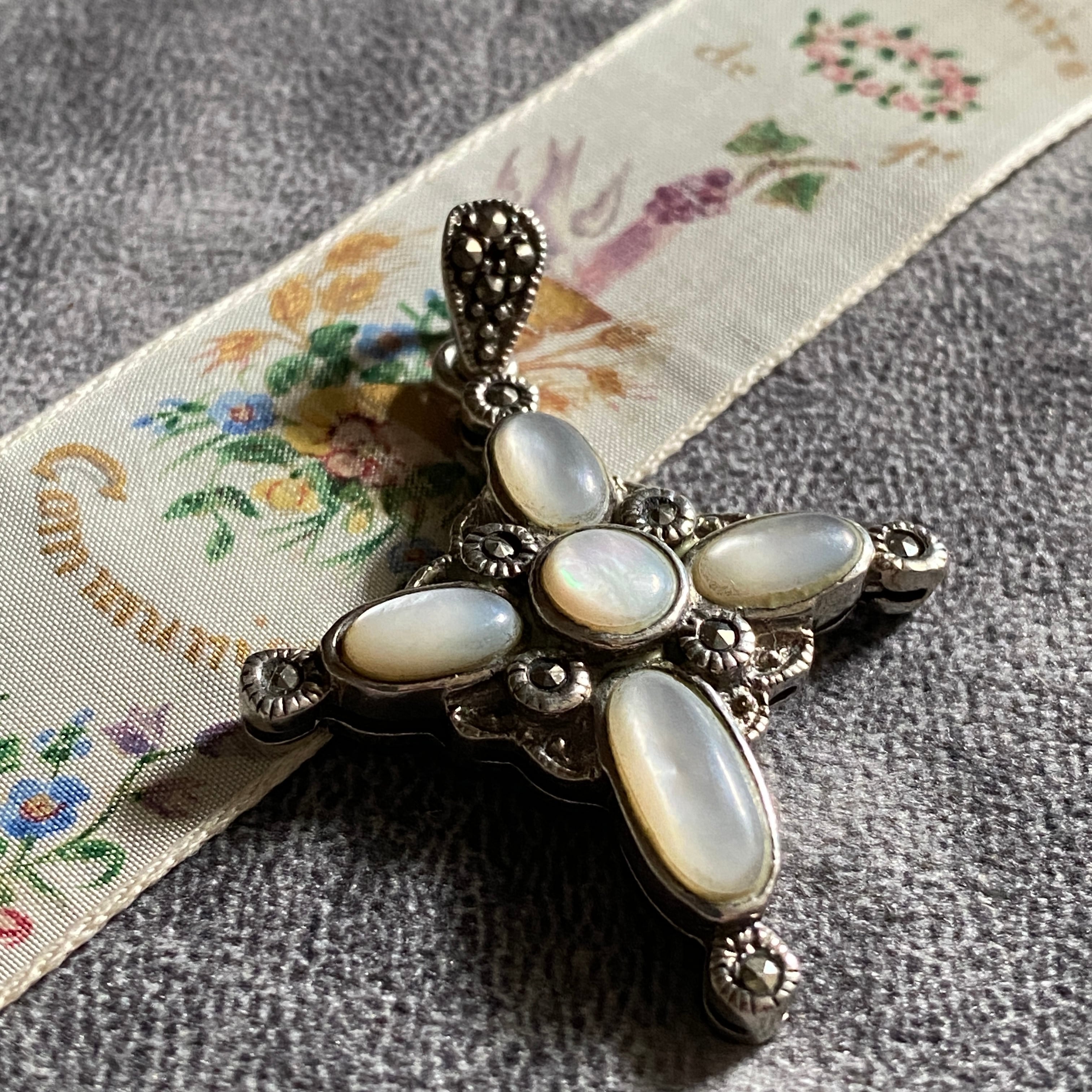 十字の中心と四方に配された、可憐で上品なヴィンテージクロス。