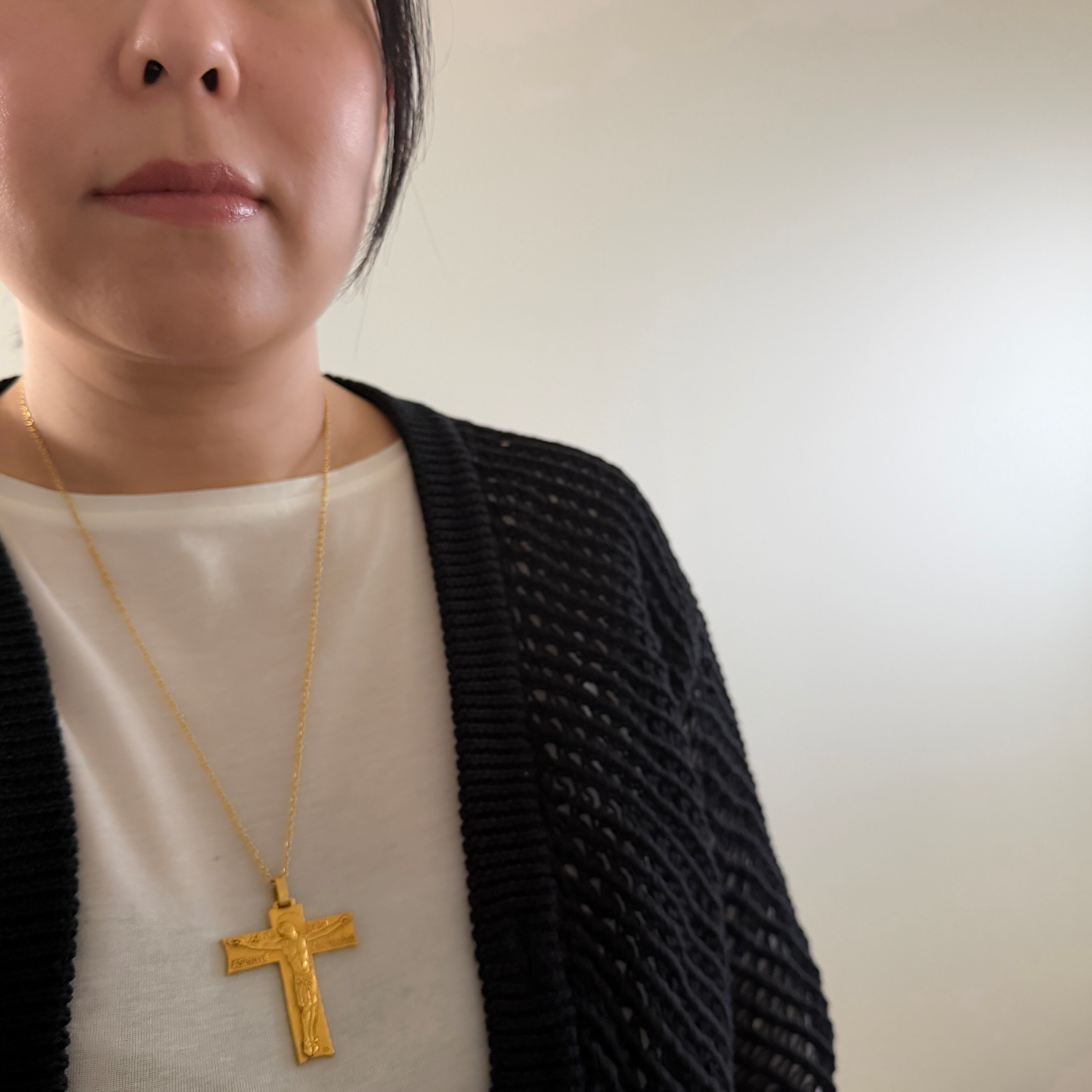 “信仰そのものを形にした言葉”が刻まれている点が、このクロスの大きな魅力です。