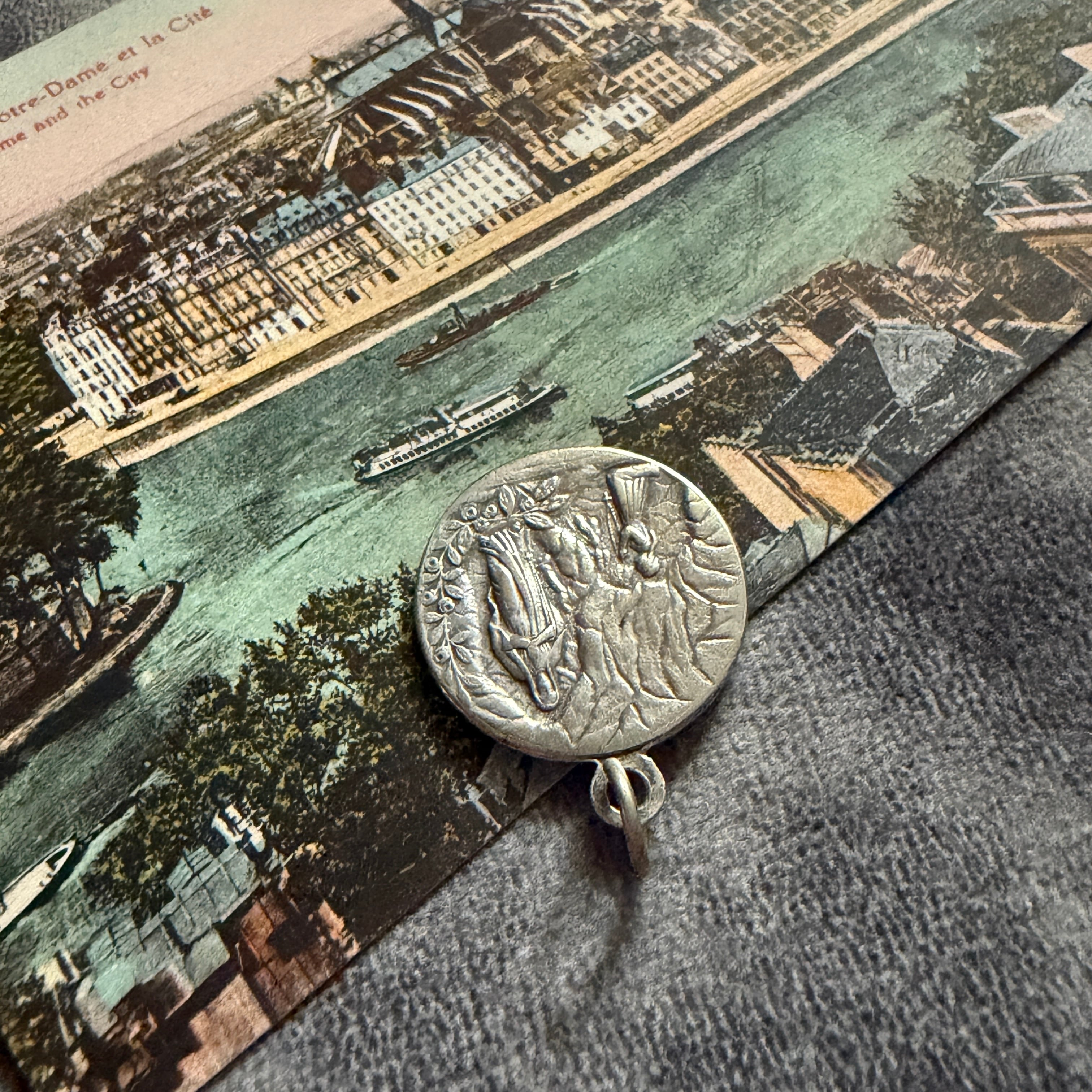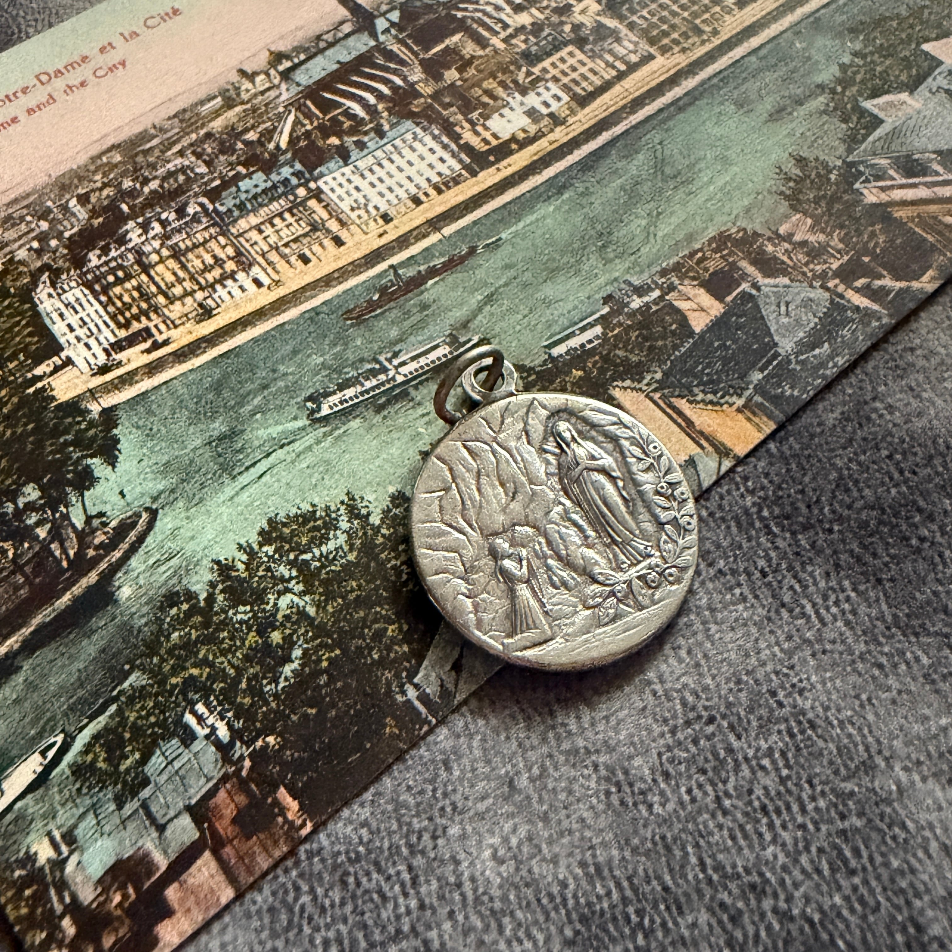 表と背面、それぞれに異なる“時間の表情”を持つこのメダイは、