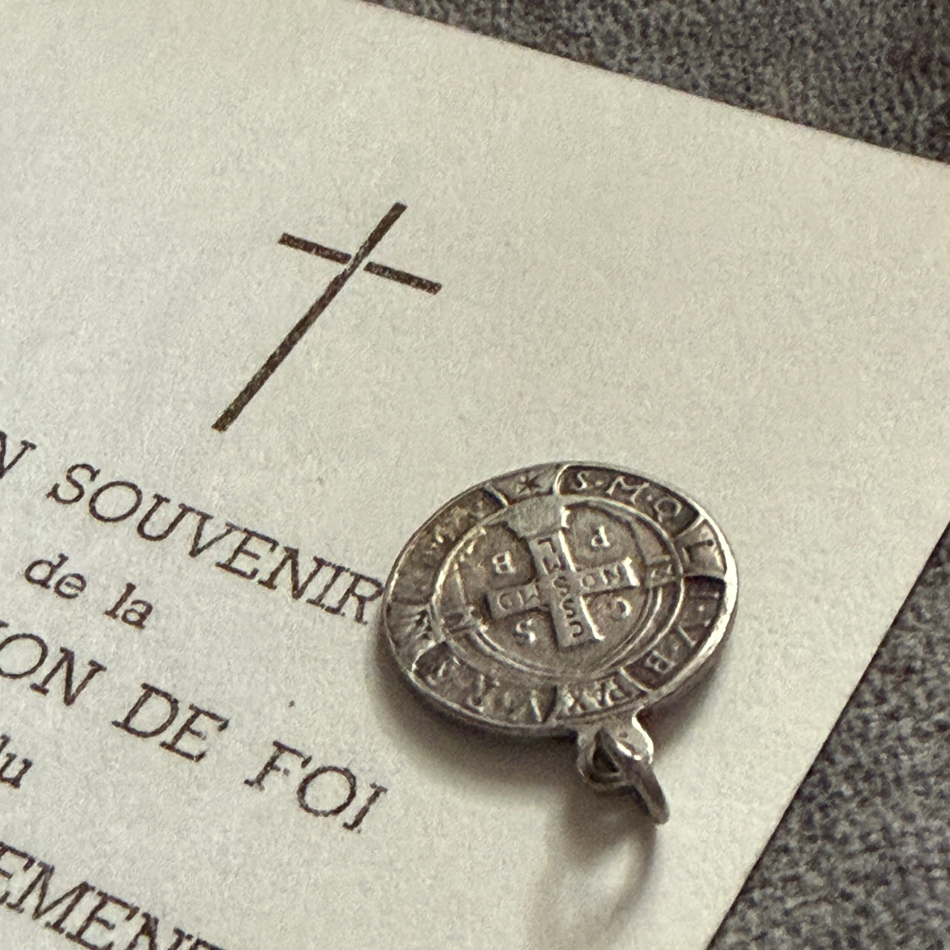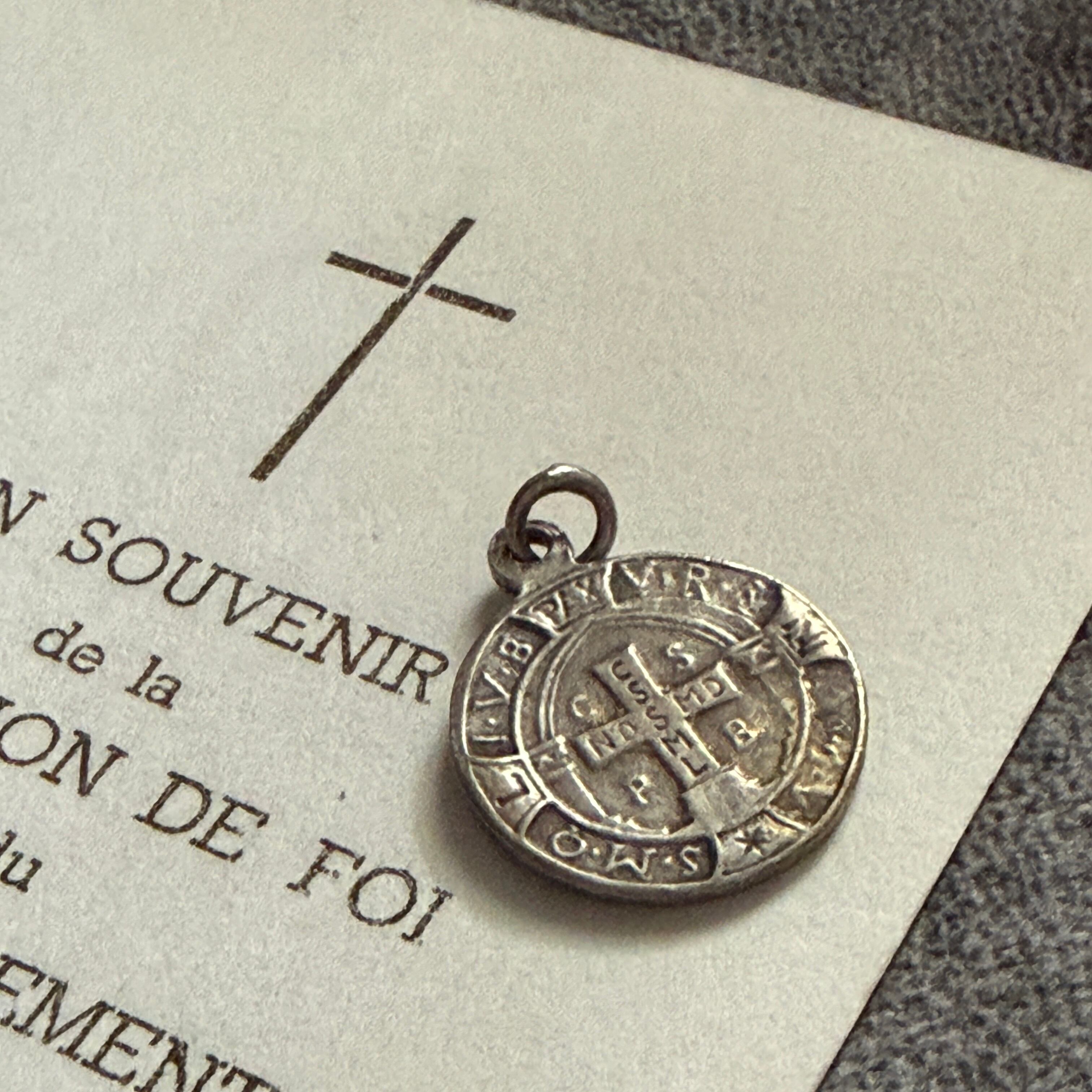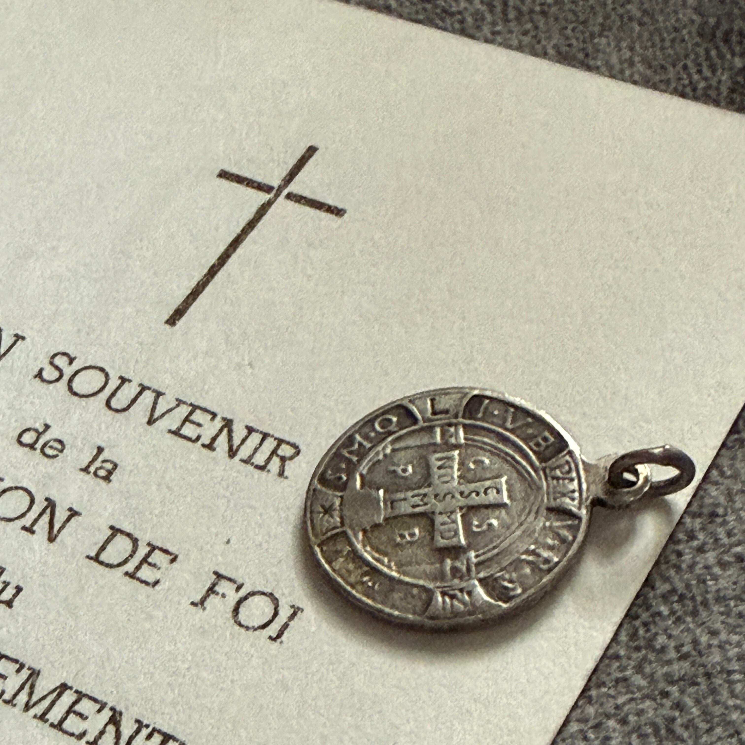 その穏やかな佇まいの中に、確かな意志と守護の力を感じさせるメダイです。