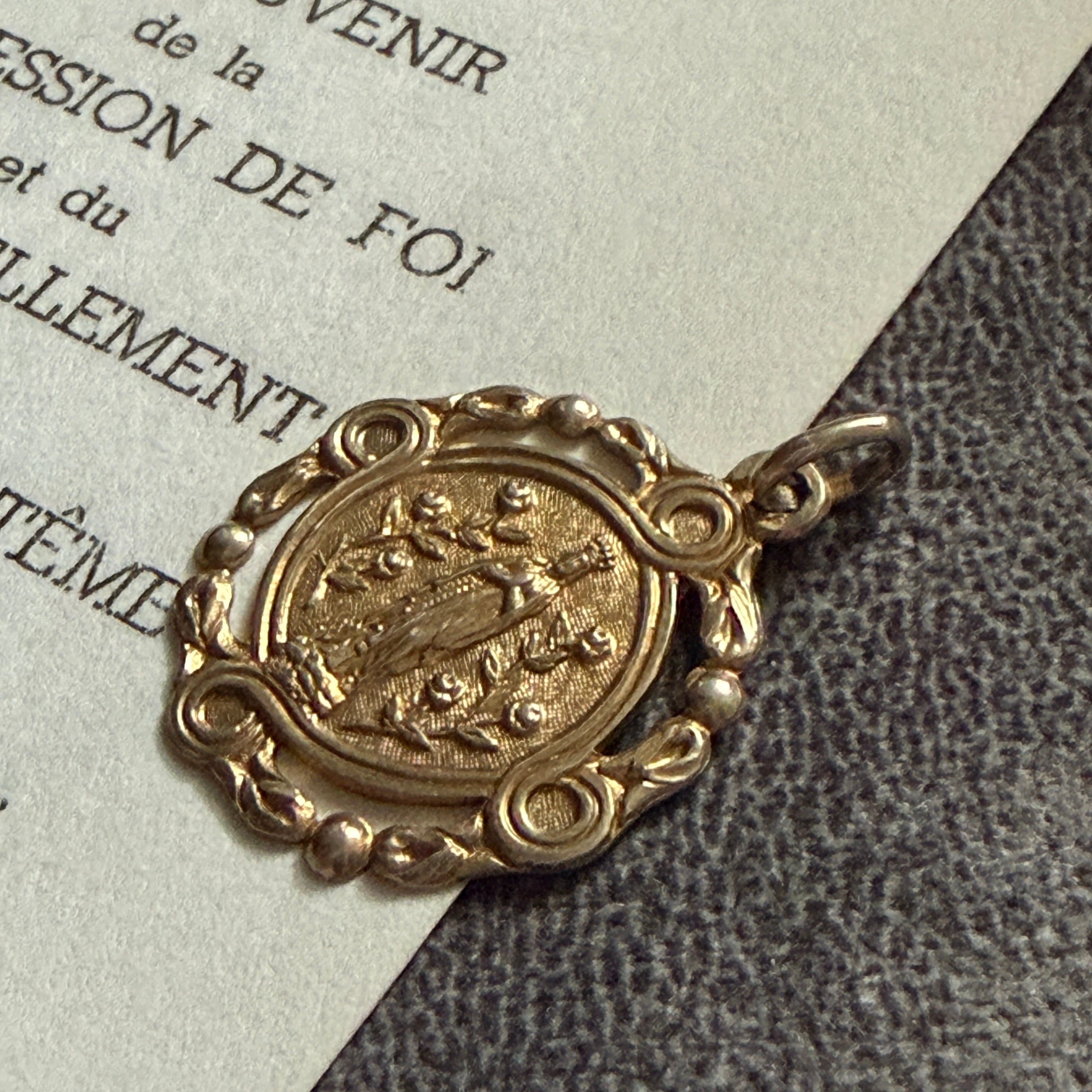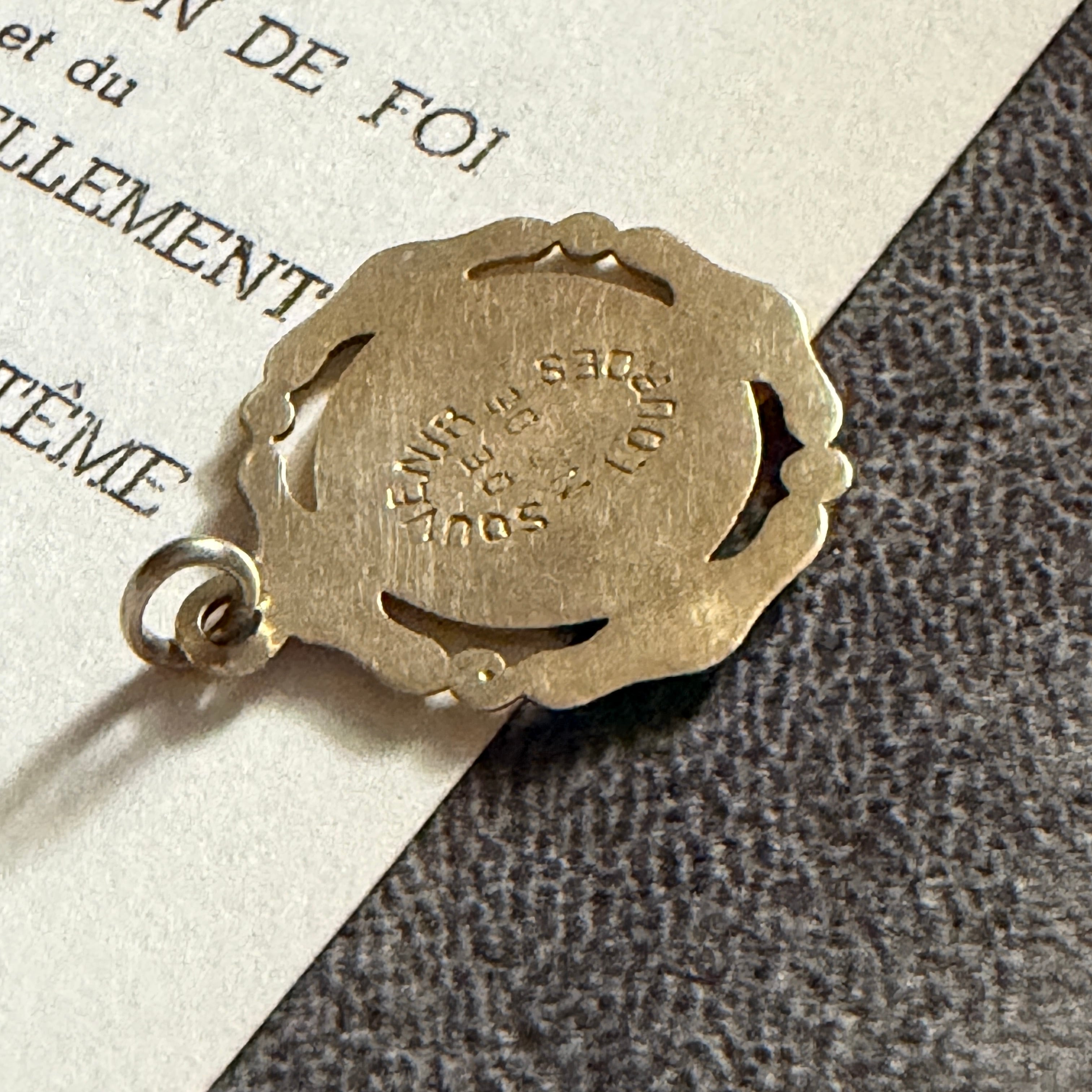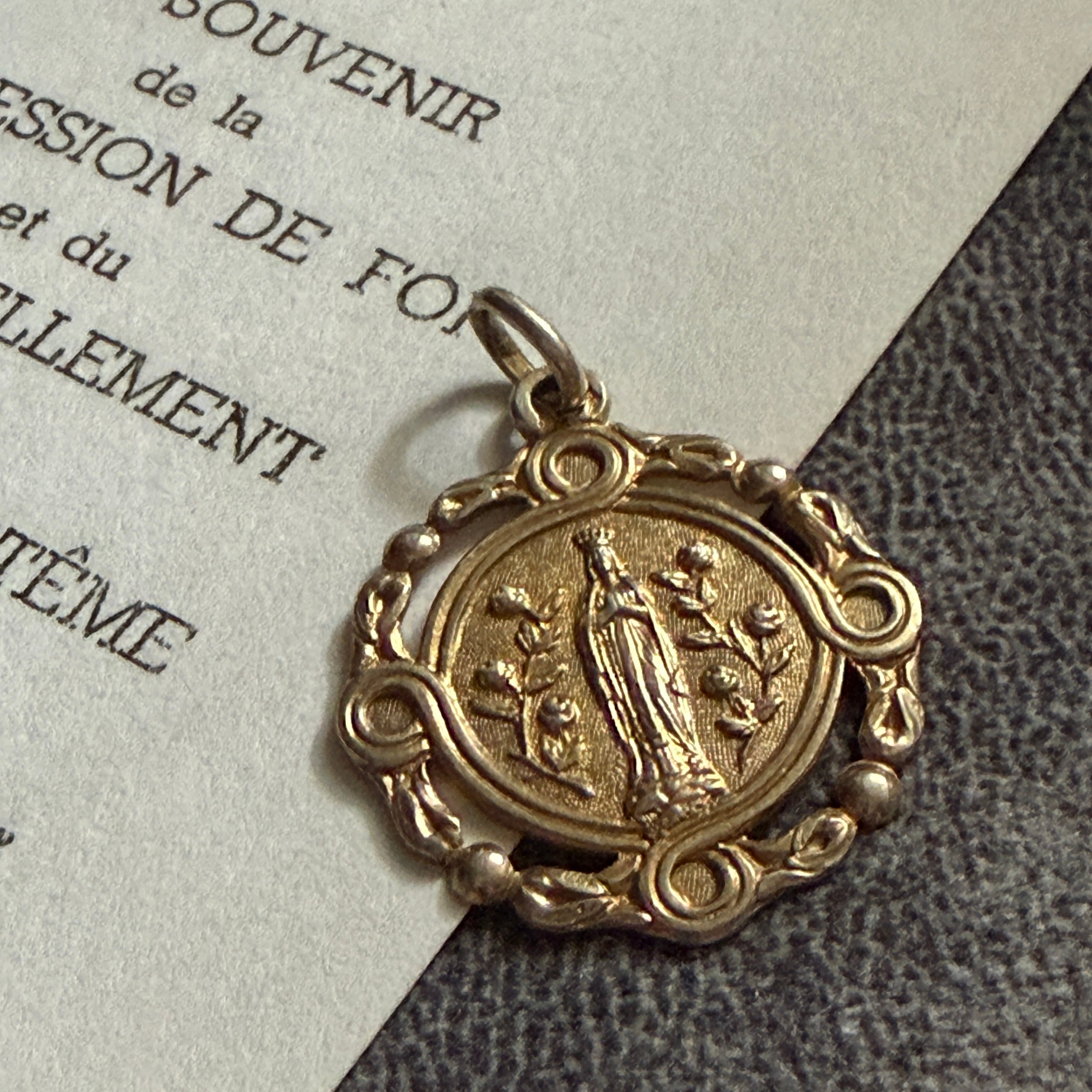 繊細な透かし細工で囲まれた、美しい装飾性を持つメダイ。