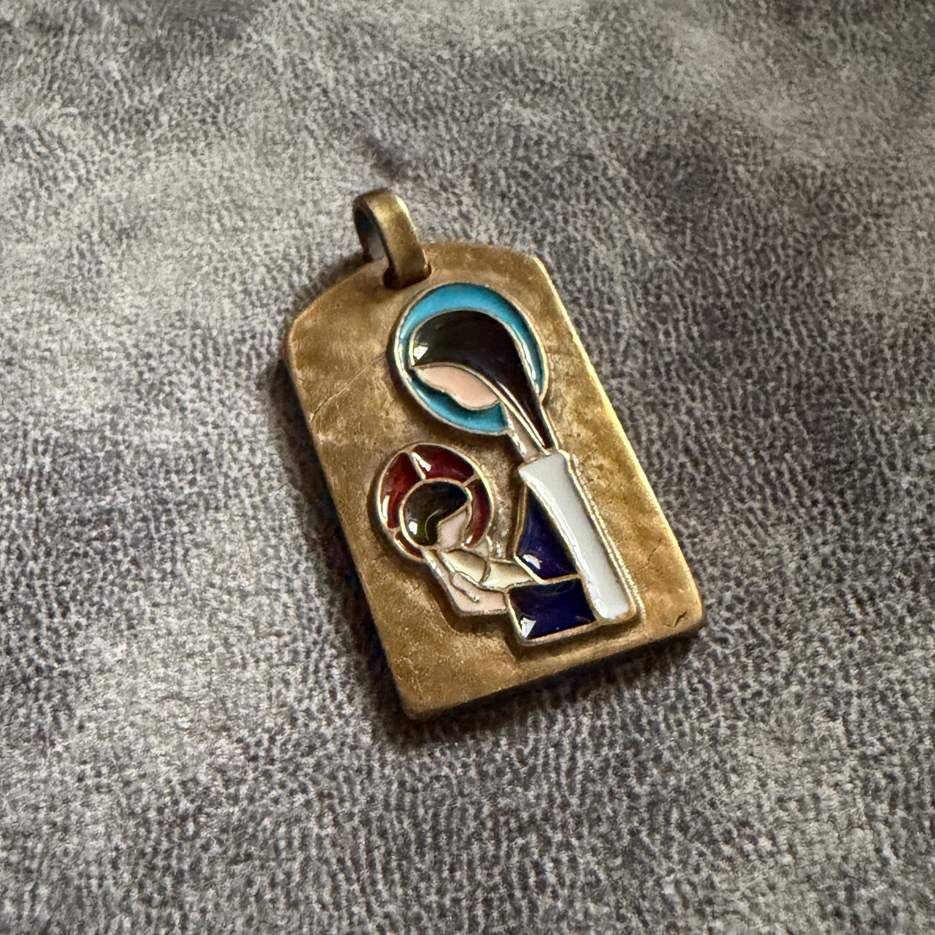 鮮やかなエナメルで描かれた、聖母マリアと幼子イエス。