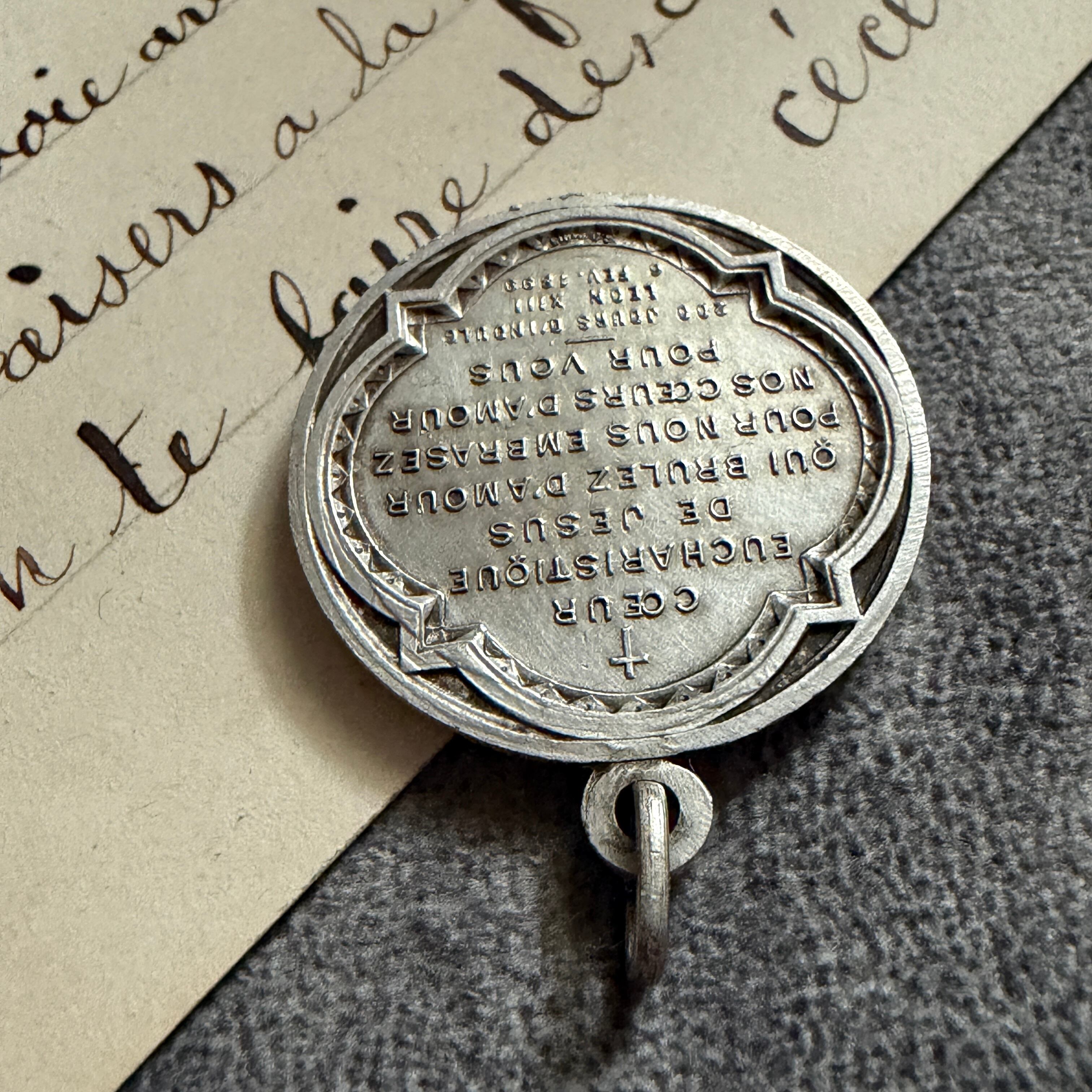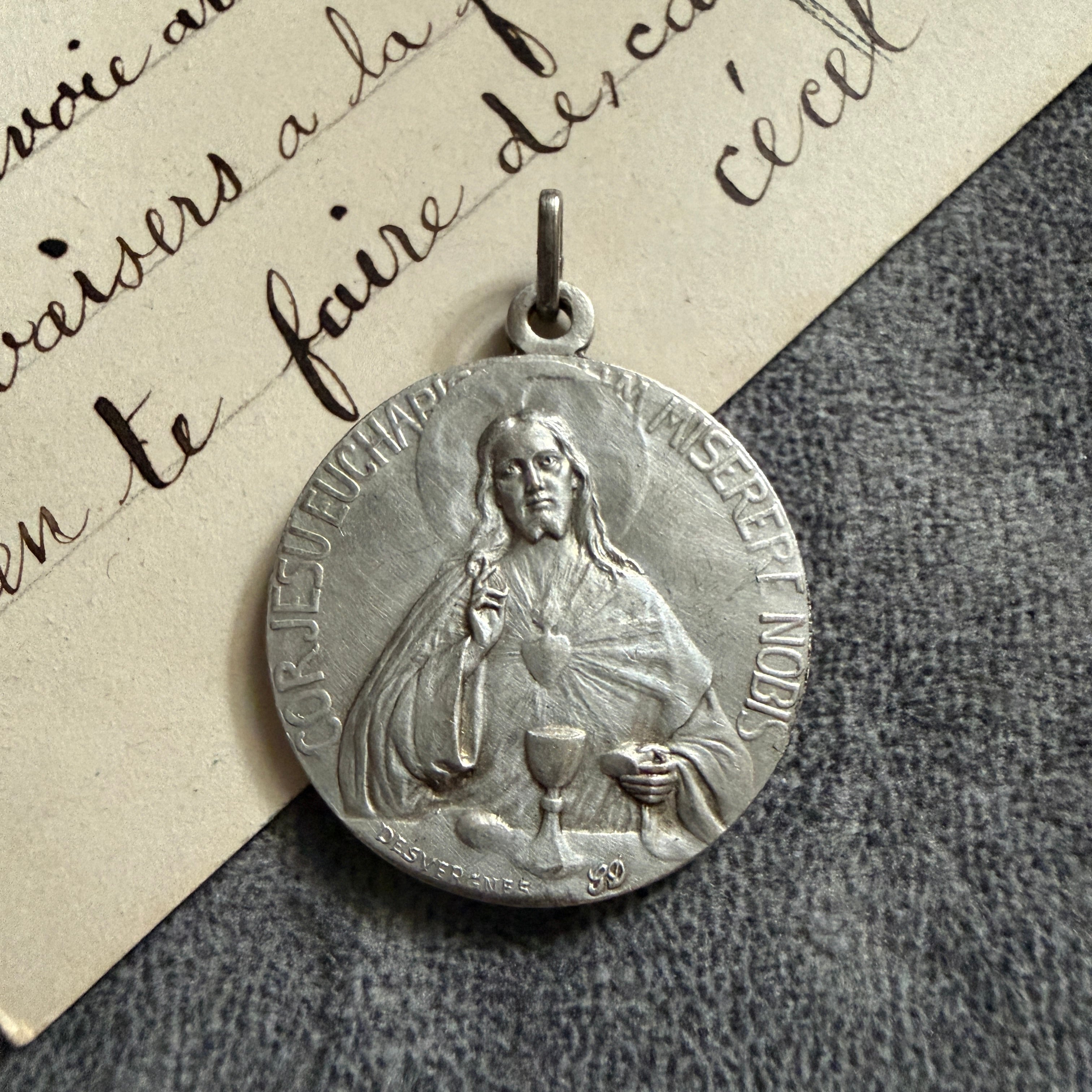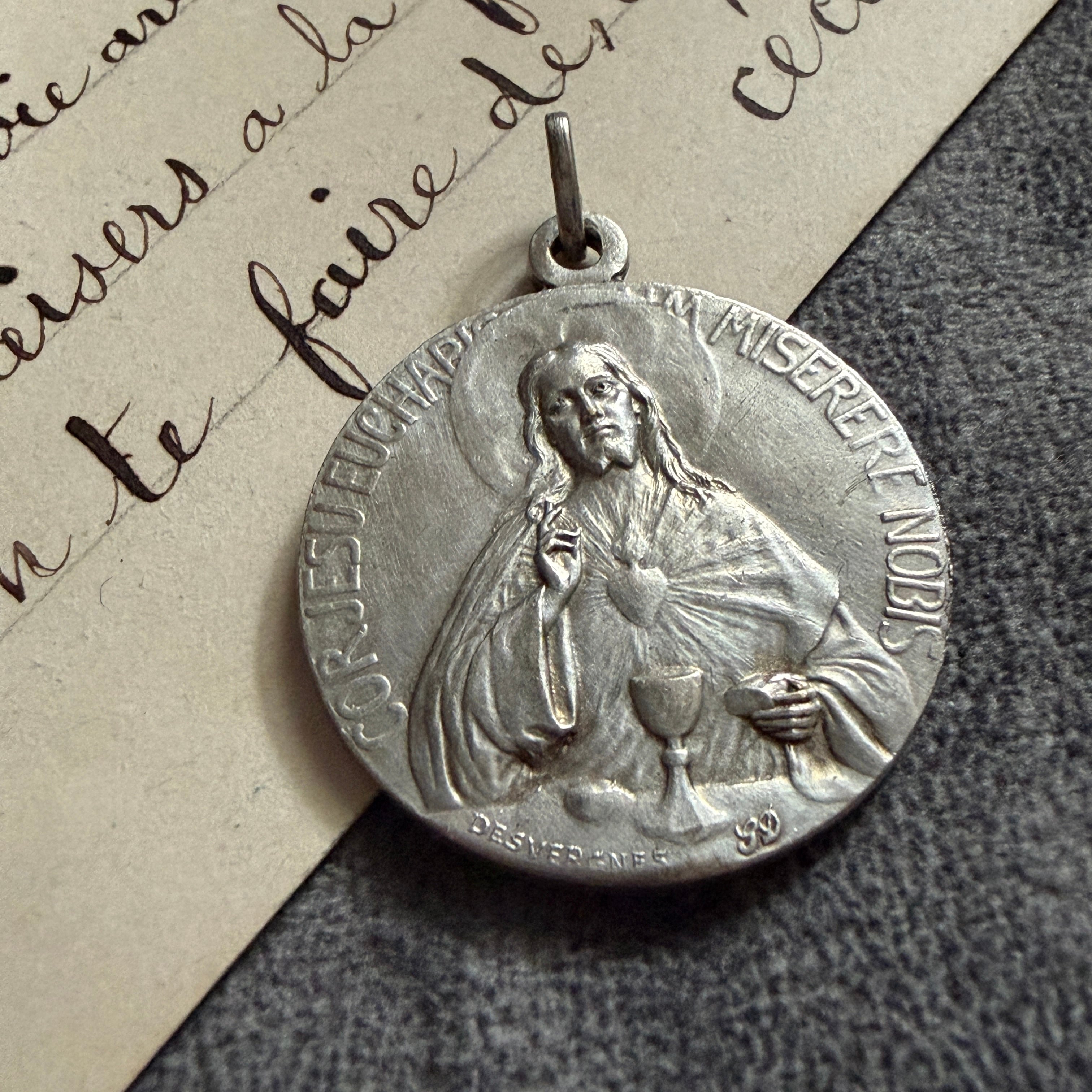 聖体拝領の神秘を、静かに、そして力強く刻んだ大型メダイ。