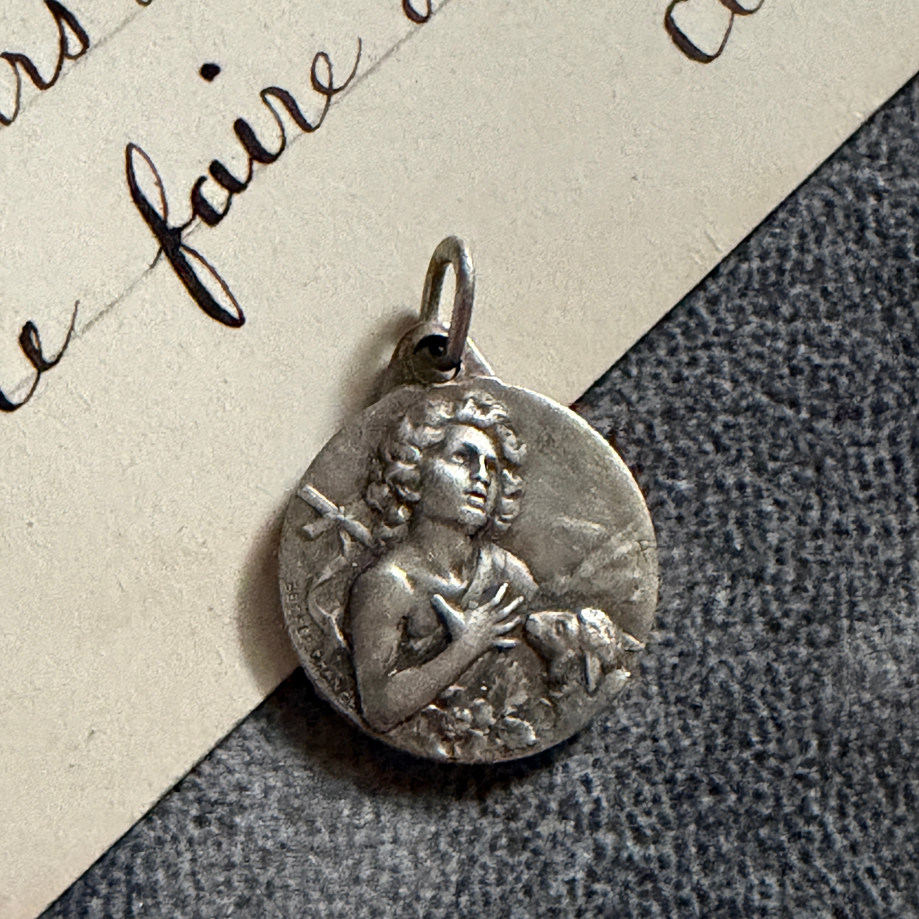 若き洗礼者ヨハネが、静かに「神の小羊」を抱くこのメダイ。
