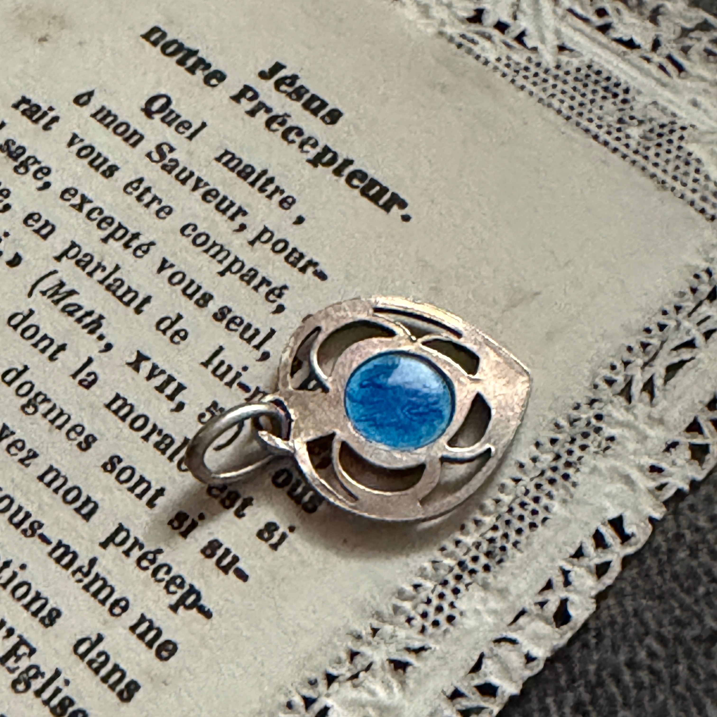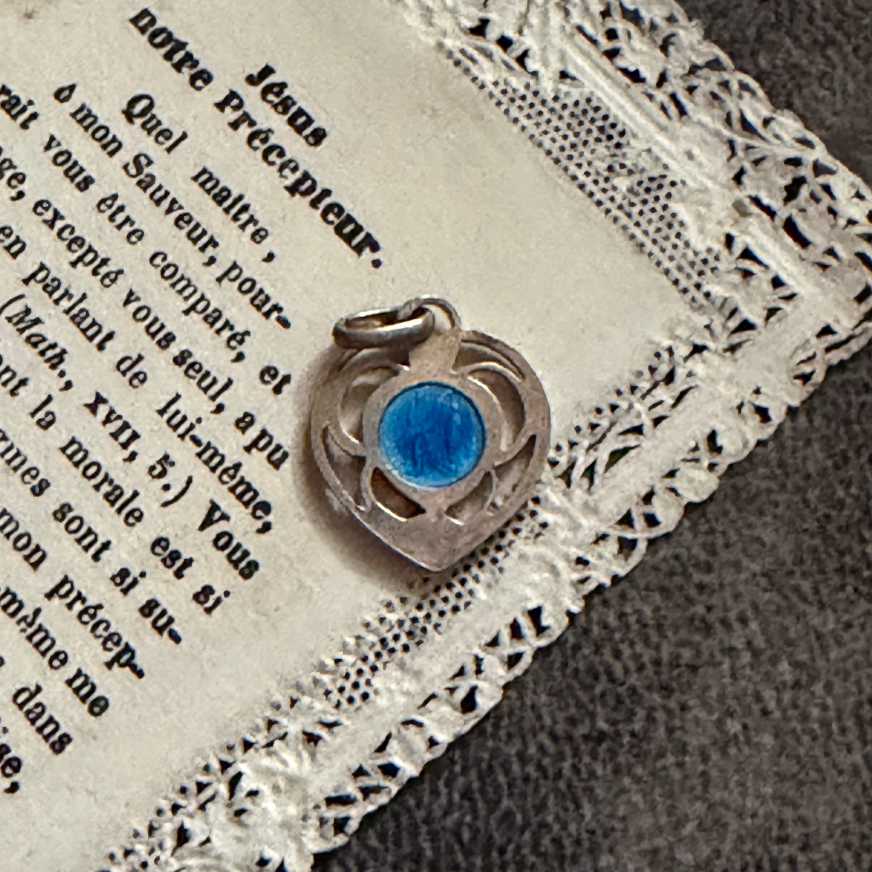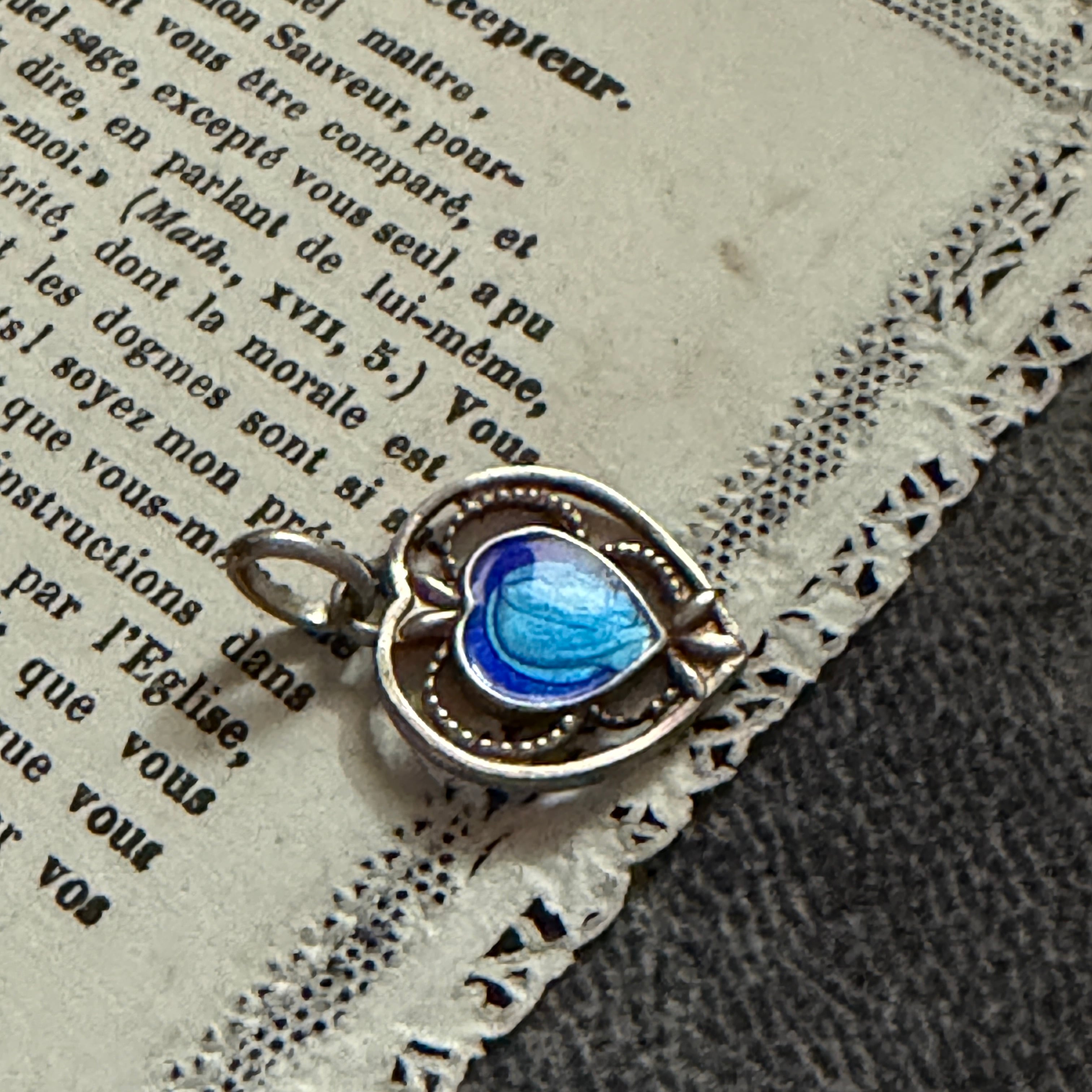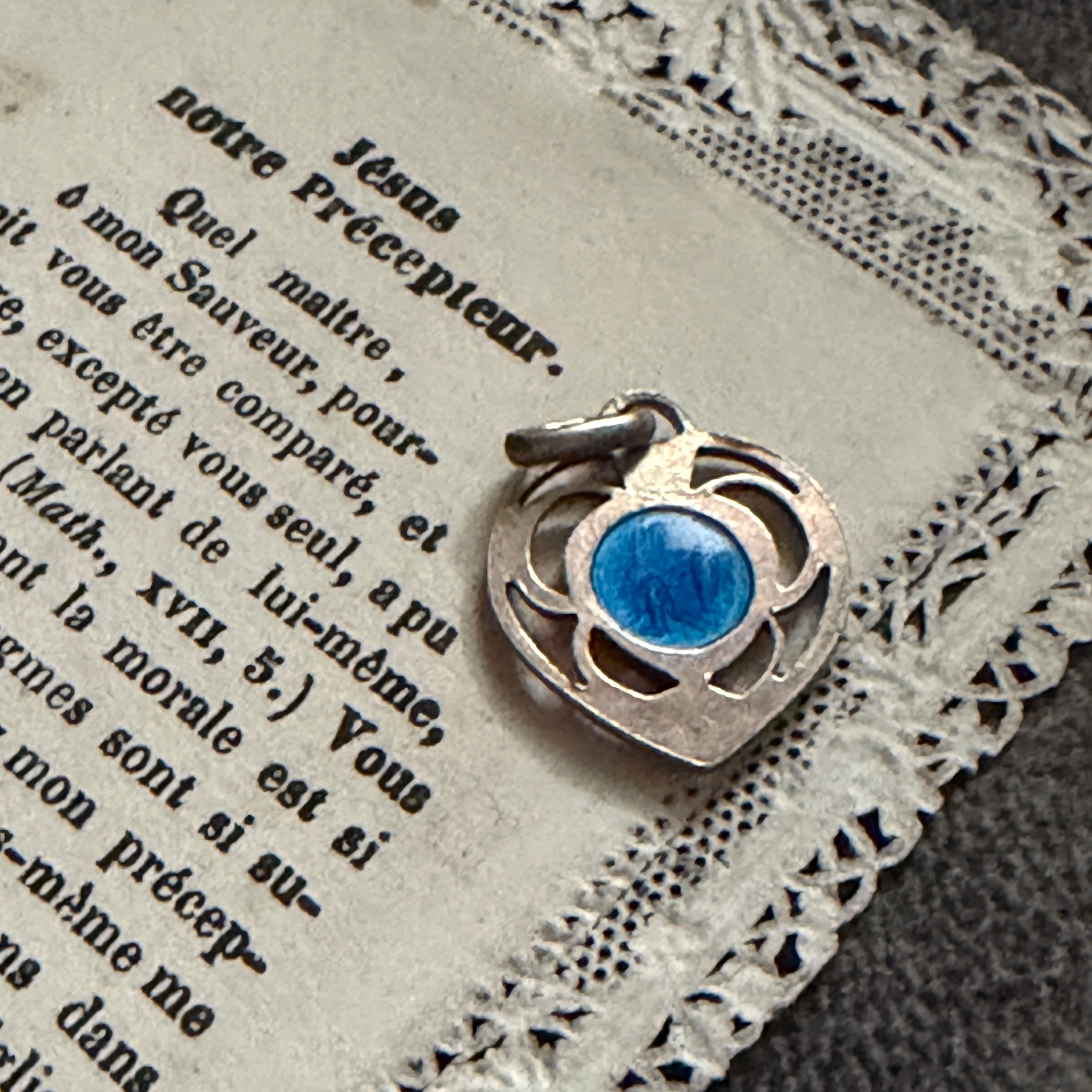 繊細な青のエナメルが印象的な、愛らしいメダイです。