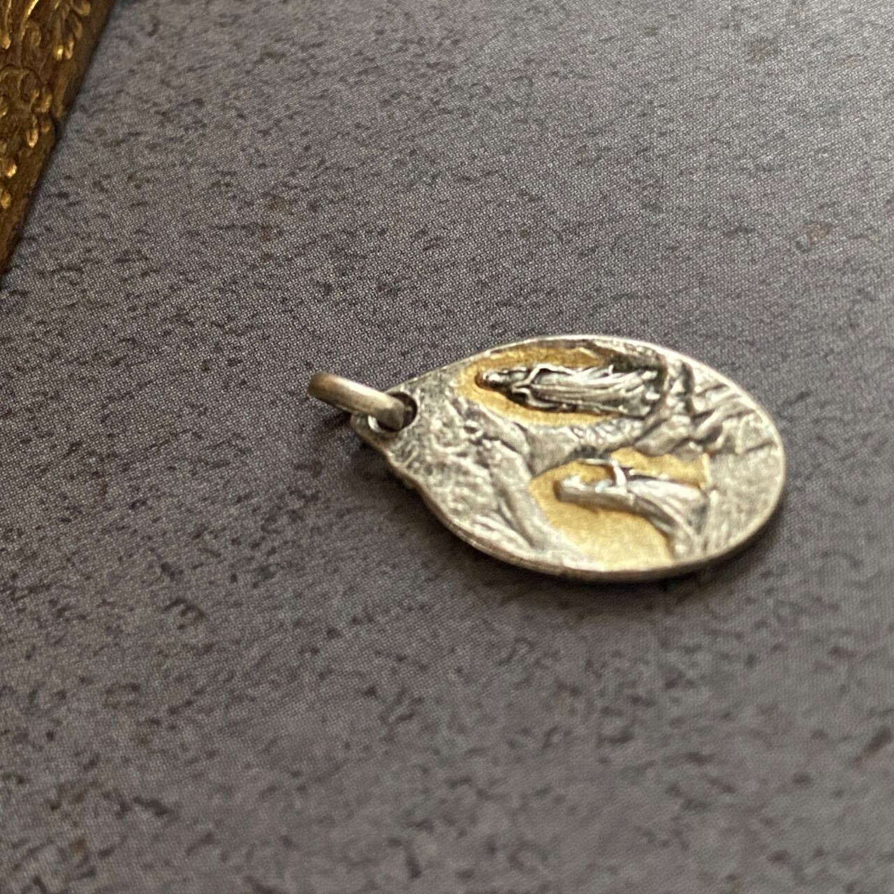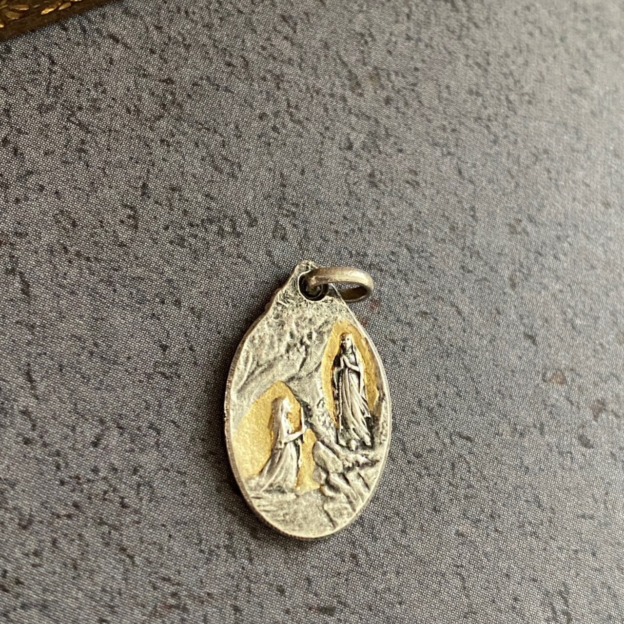 『ルルドの祈りのマリア』として有名なデザインのこちらは、ルルドの泉に現れたマリアの奇跡と泉の聖水の奇跡をメダイという御守りとして当時のフランス国民が身につけたことから、様々な大きさで製造されていました。