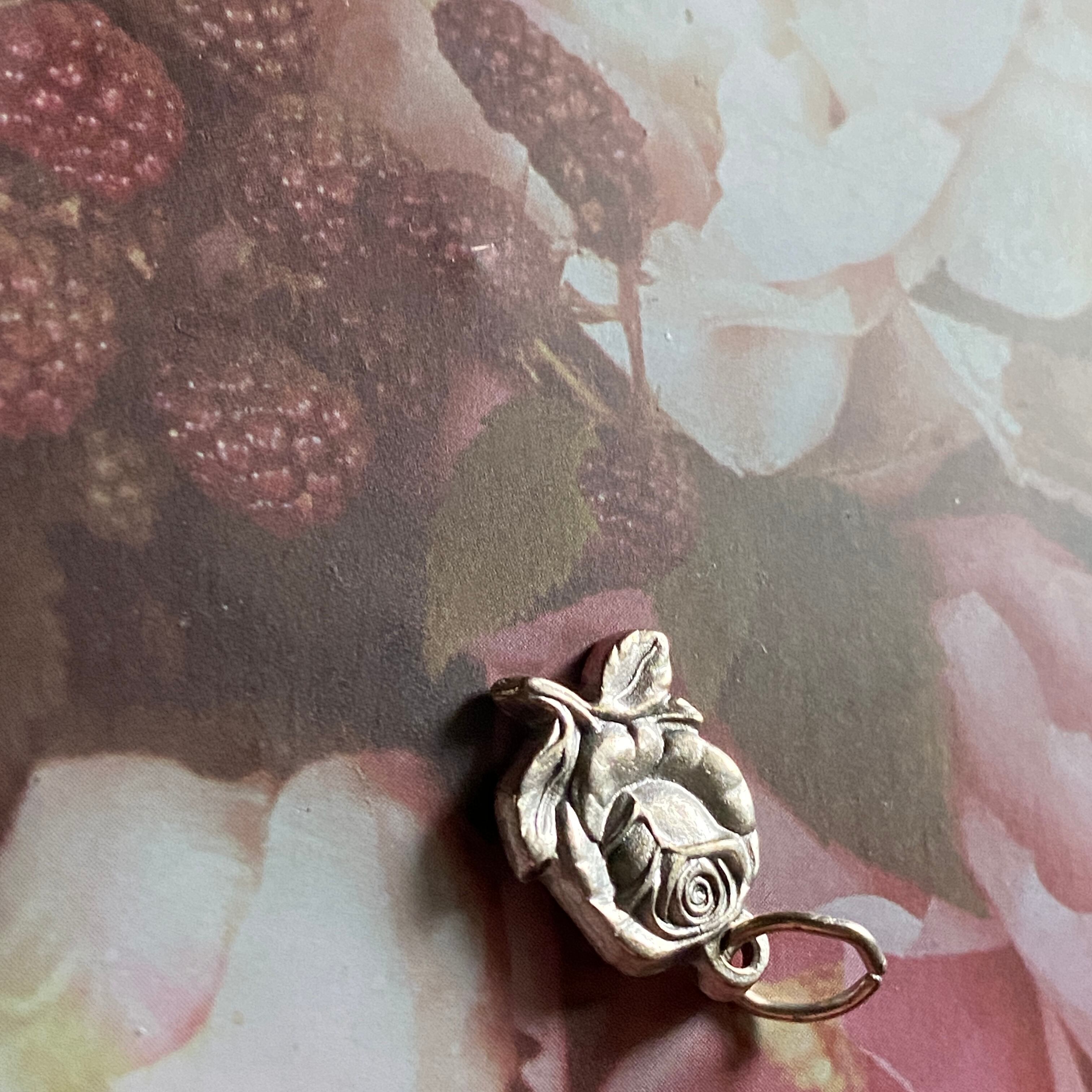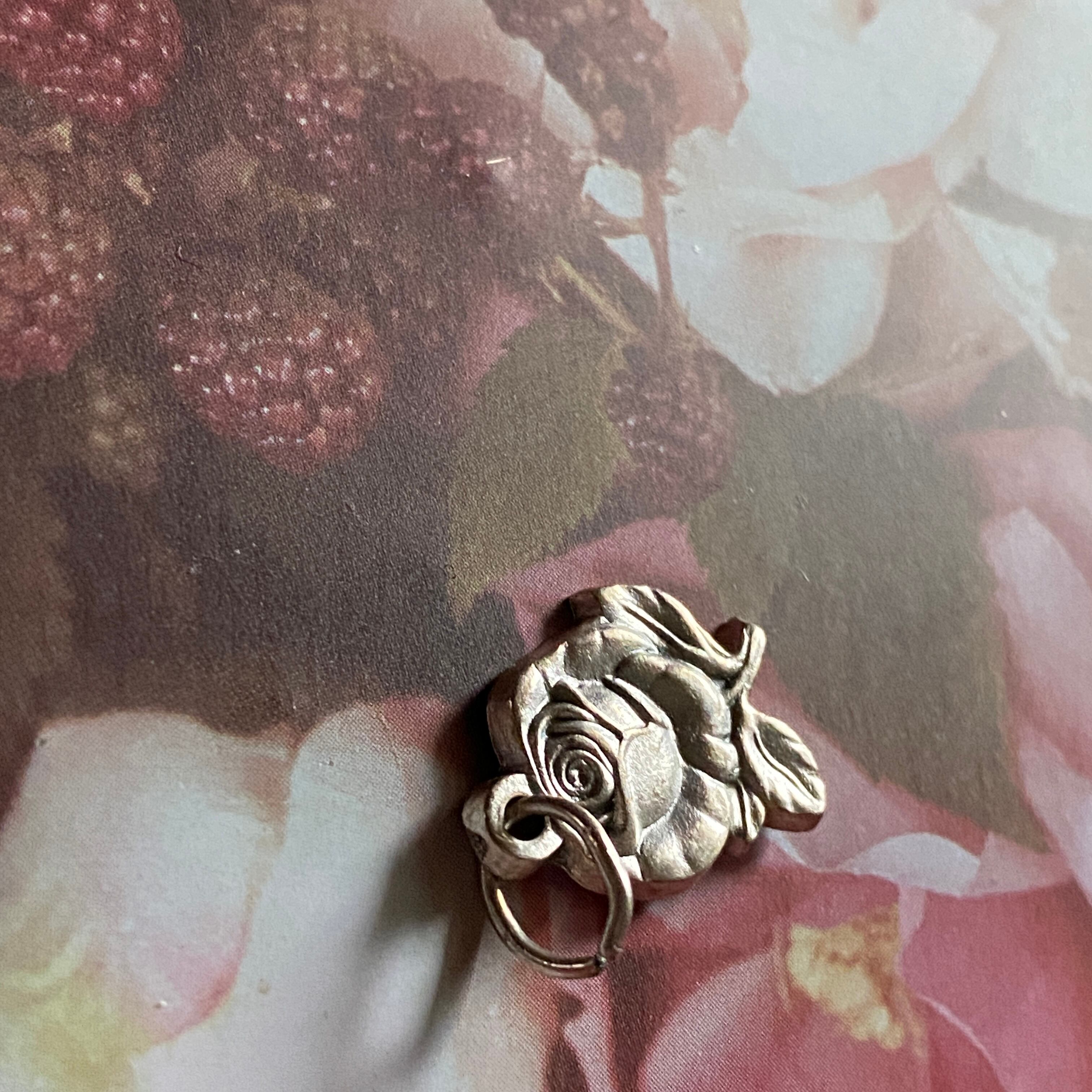 小さな花のバラのつぼみから徐々に開花している様子が形取られたメダイです。