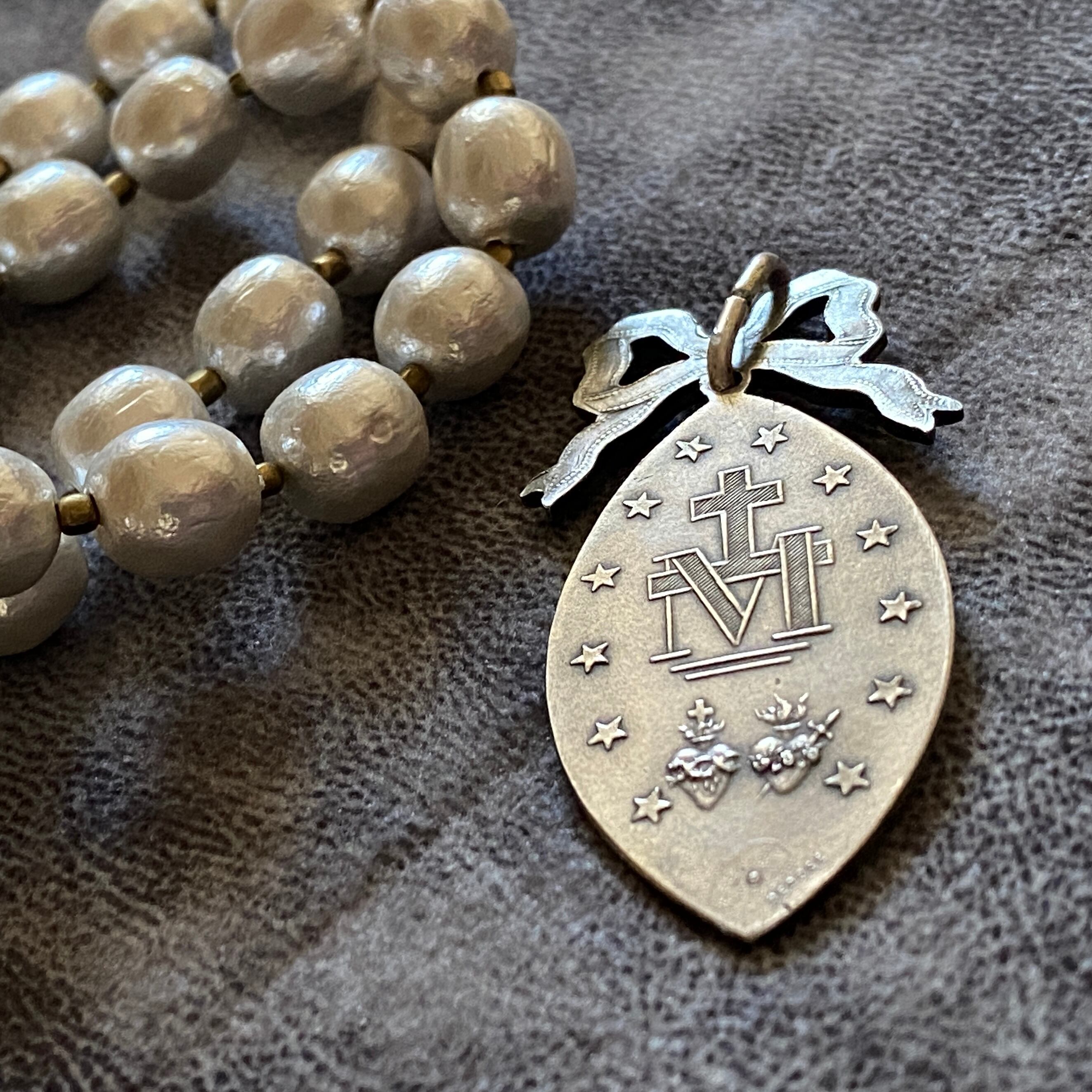 年齢を重ねるとリボンは敬遠しがちですが、こちらのメダイはお歳関係なく品良く身に付けられるのも魅力です。