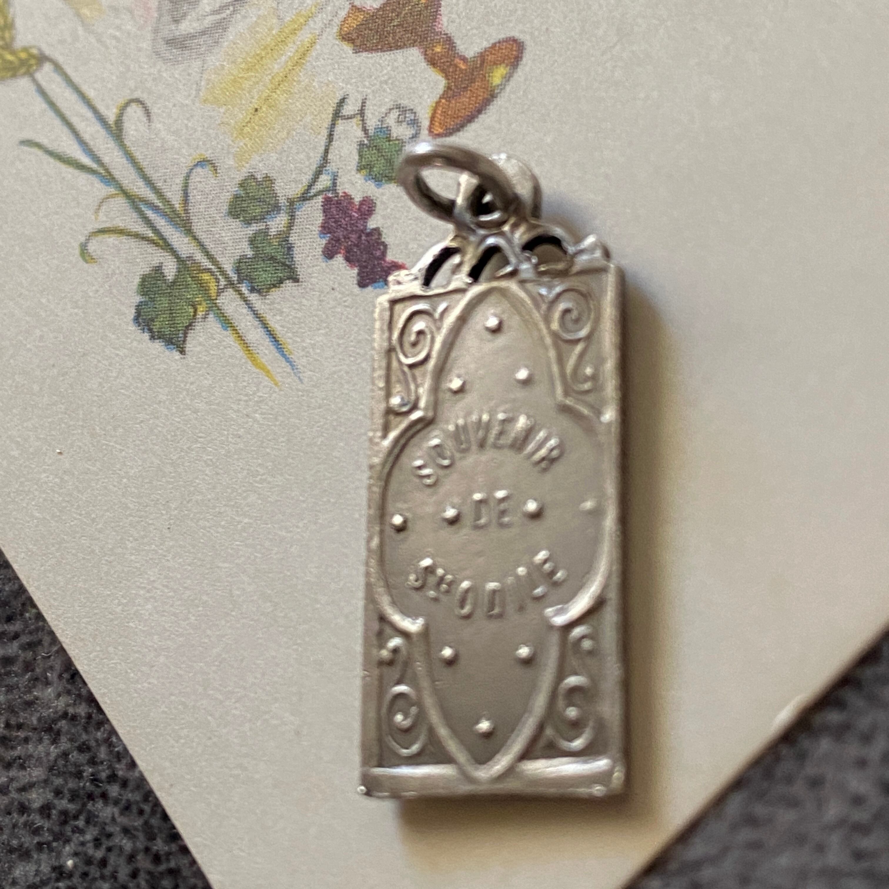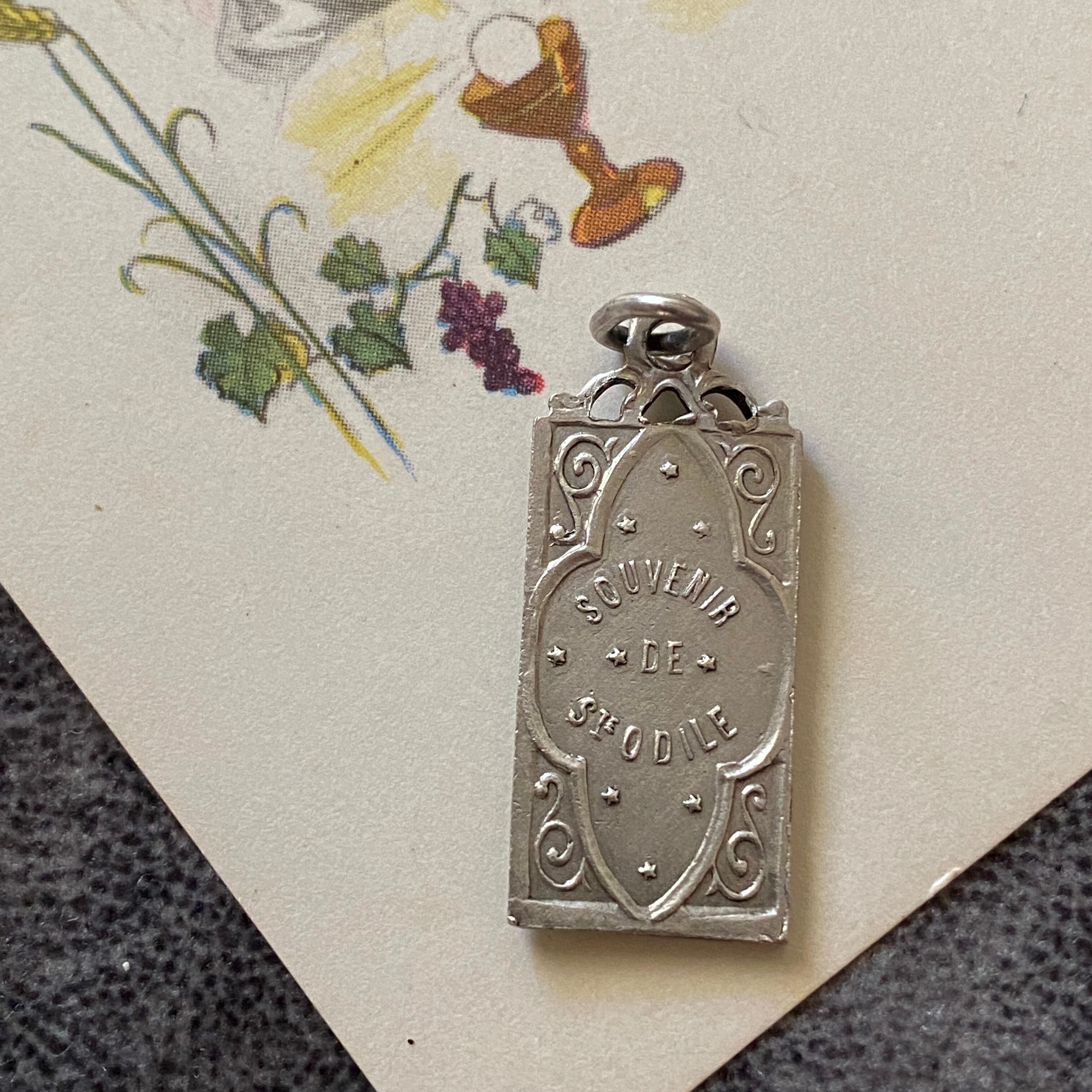 裏面には『SOUVENIR』の文字が刻まれていることから、聖オディール修道院か、聖オディールの像のあるオアンブール女子修道院の巡礼のスーヴェニールであることがわかります。