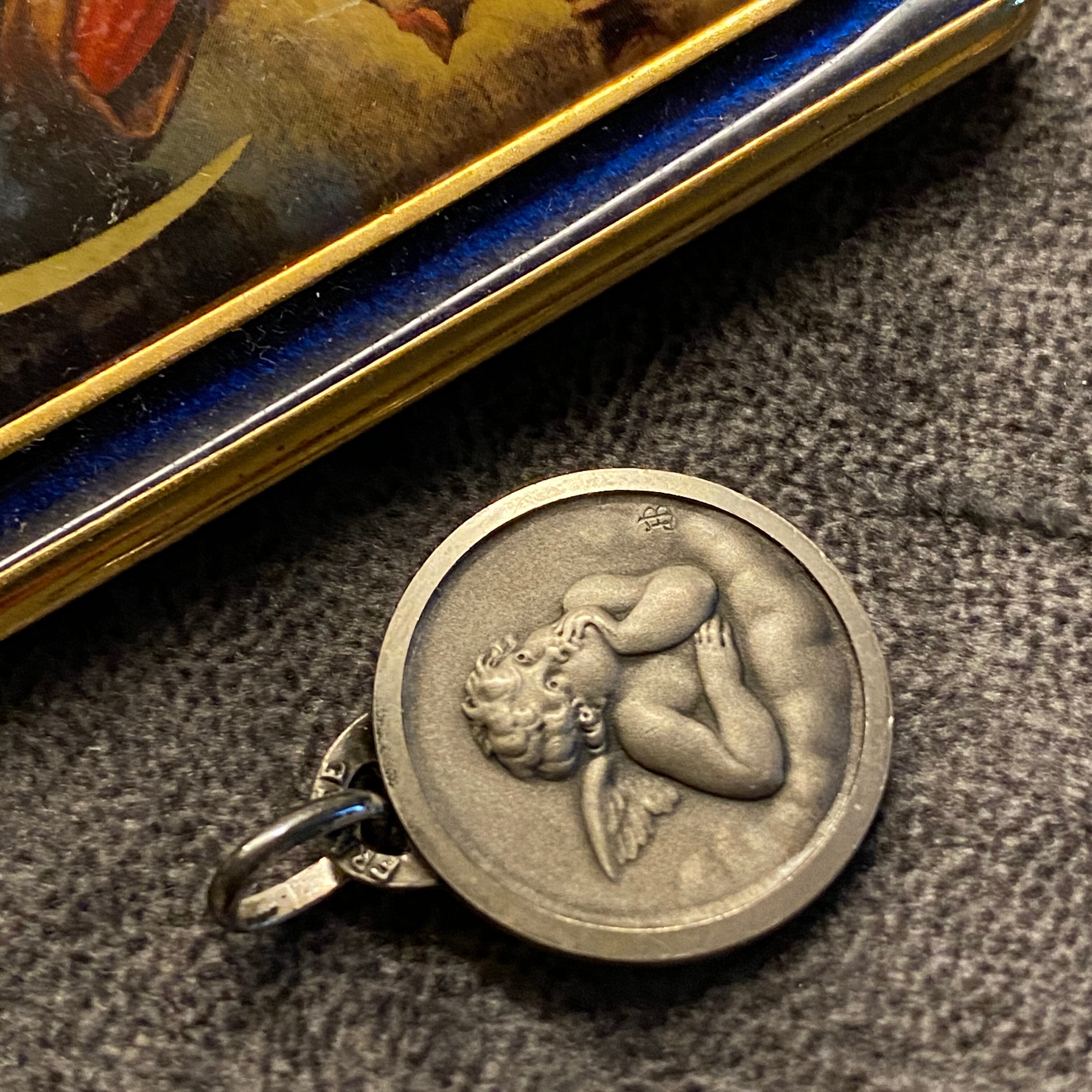 綺麗なお顔の天使のメダイはヨーロッパにおいてもとても人気ですので、こちらのような美品は大変希少です。