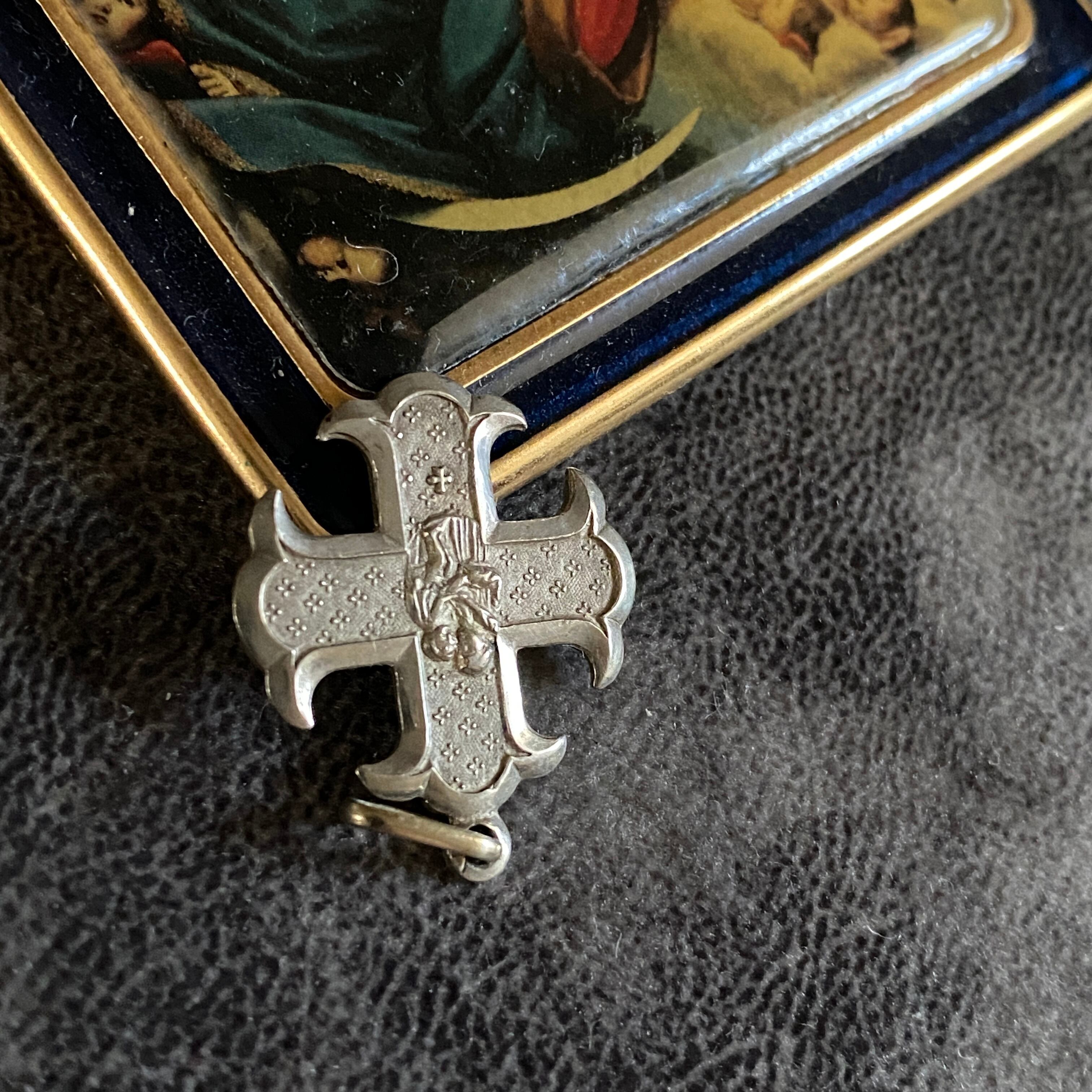 このようなデザインで真ん中にいるのは聖母マリアか聖母子であることが多いですが、こちらは聖アントワーヌと幼子イエスという珍しい作品です。