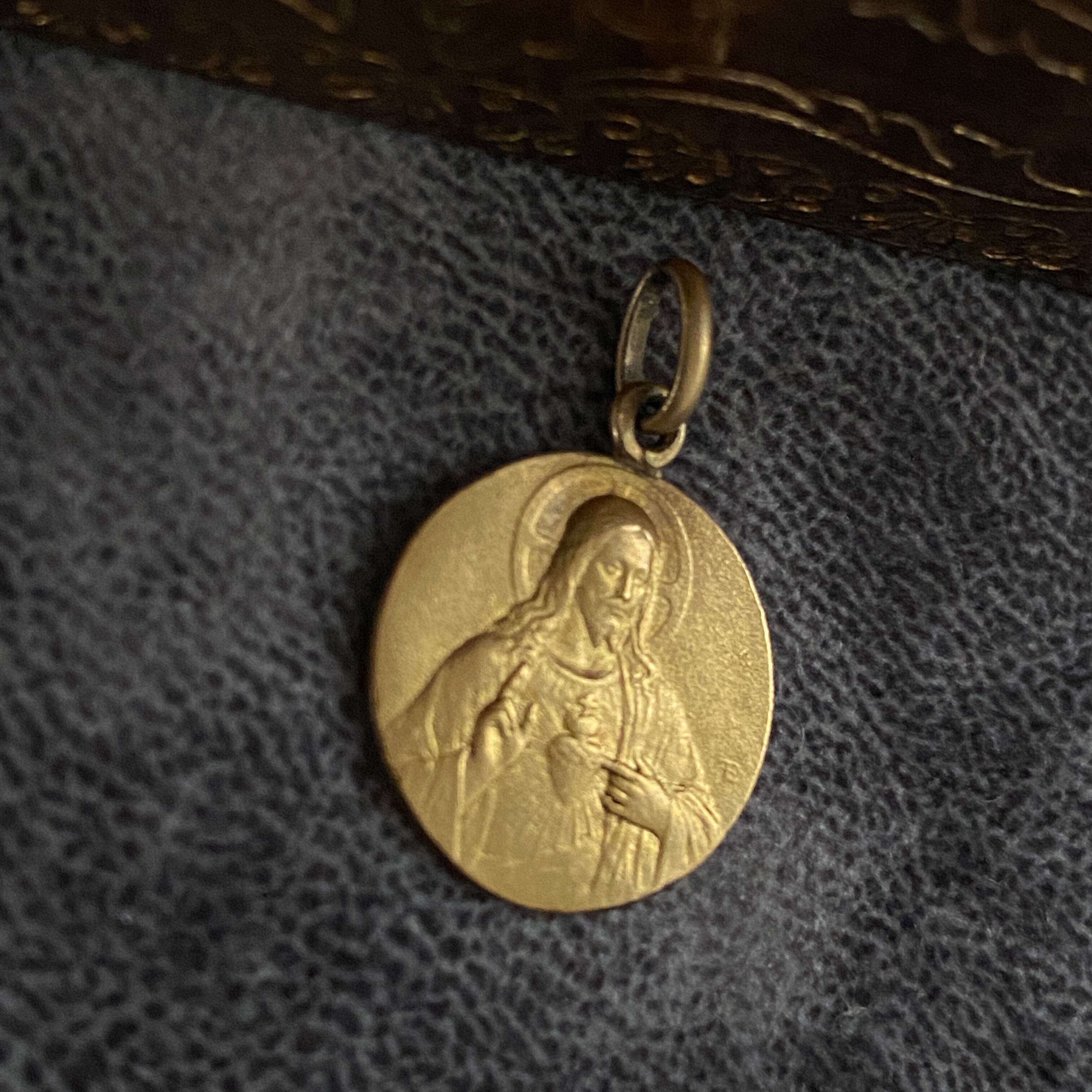 受難を知らせる天使たちに恐れおののく幼子イエスの人間らしい描写がある一方で、もう片面には、聖人となられたキリストが聖心を指し示す力強い御姿が描かれています。