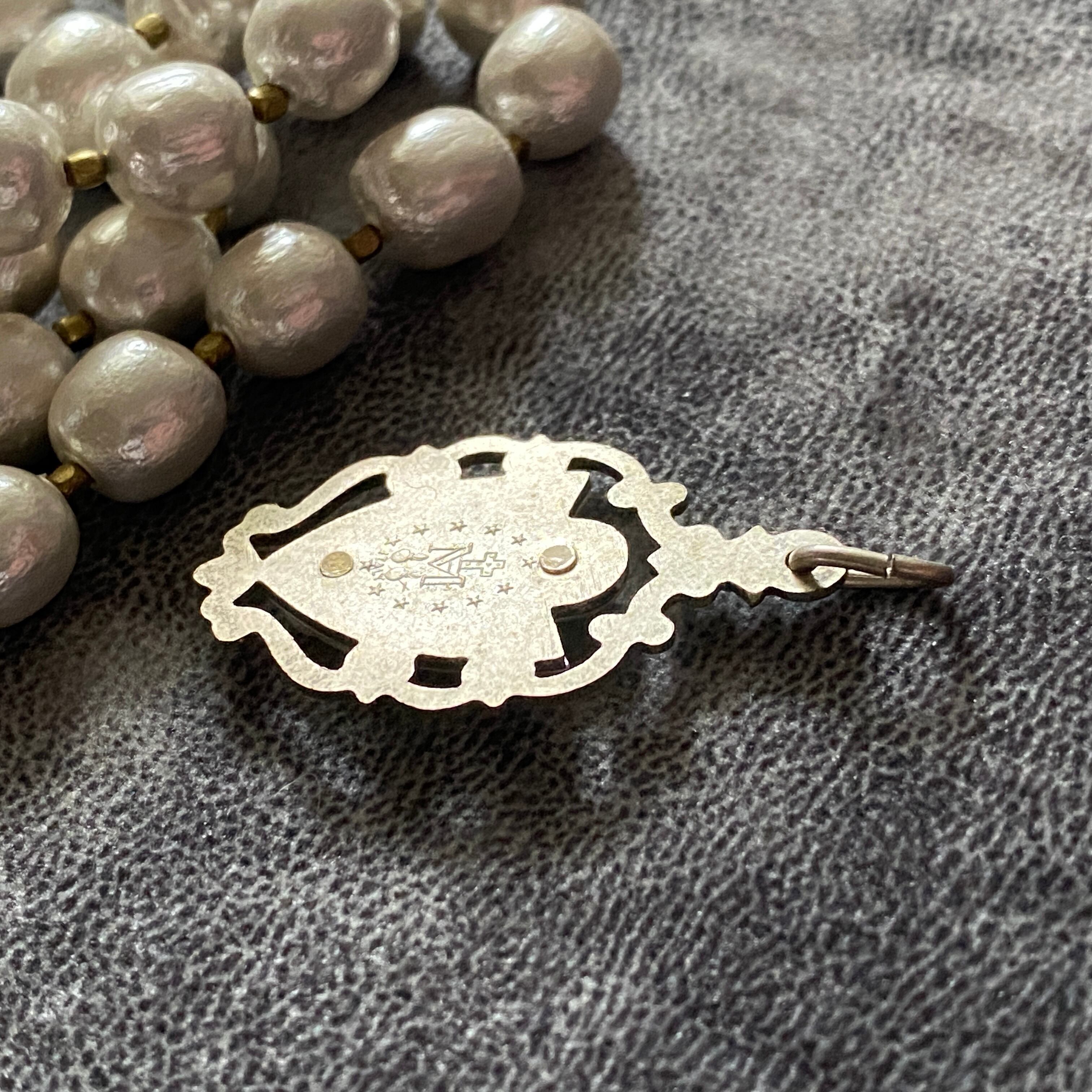 アールヌーボー様式の美しい草花のフレームに形どられているのは、2色のエナメルが注がれた不思議のメダイ。