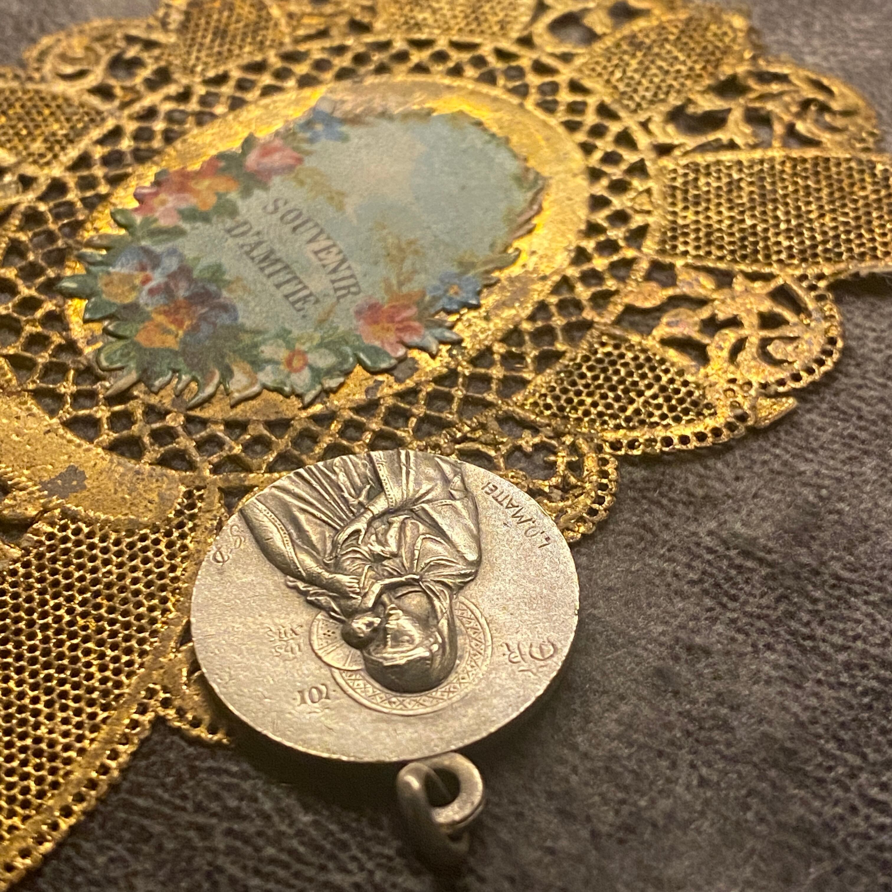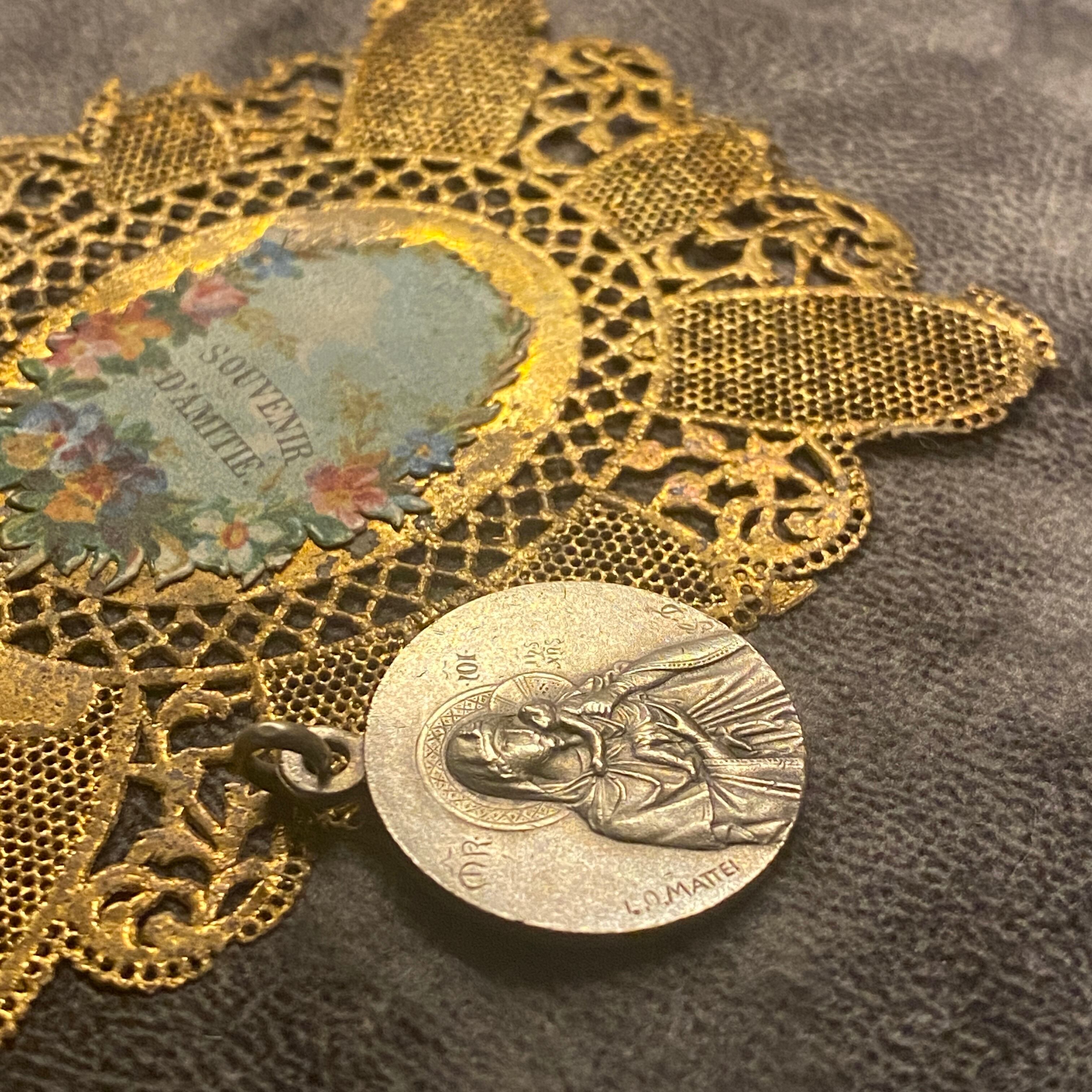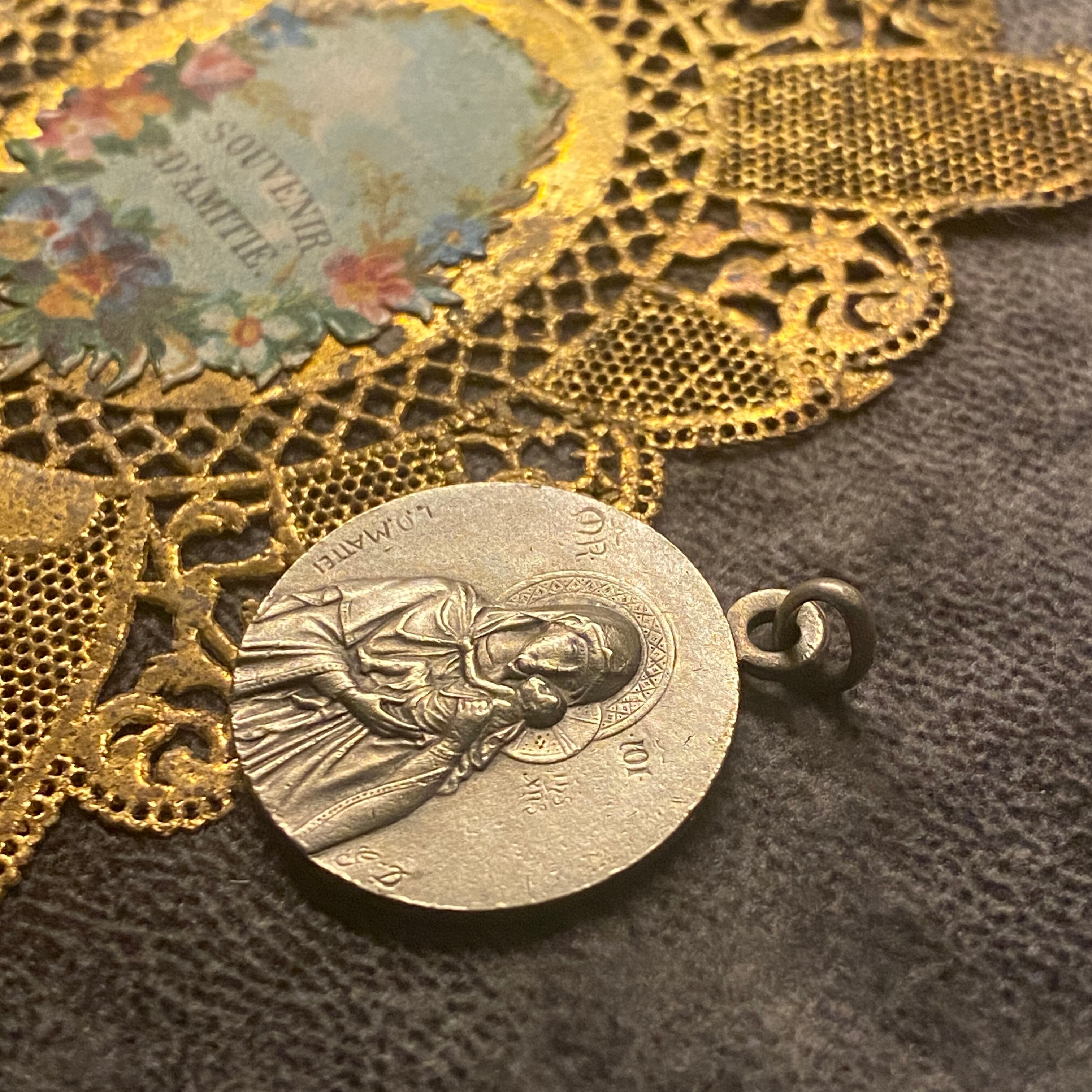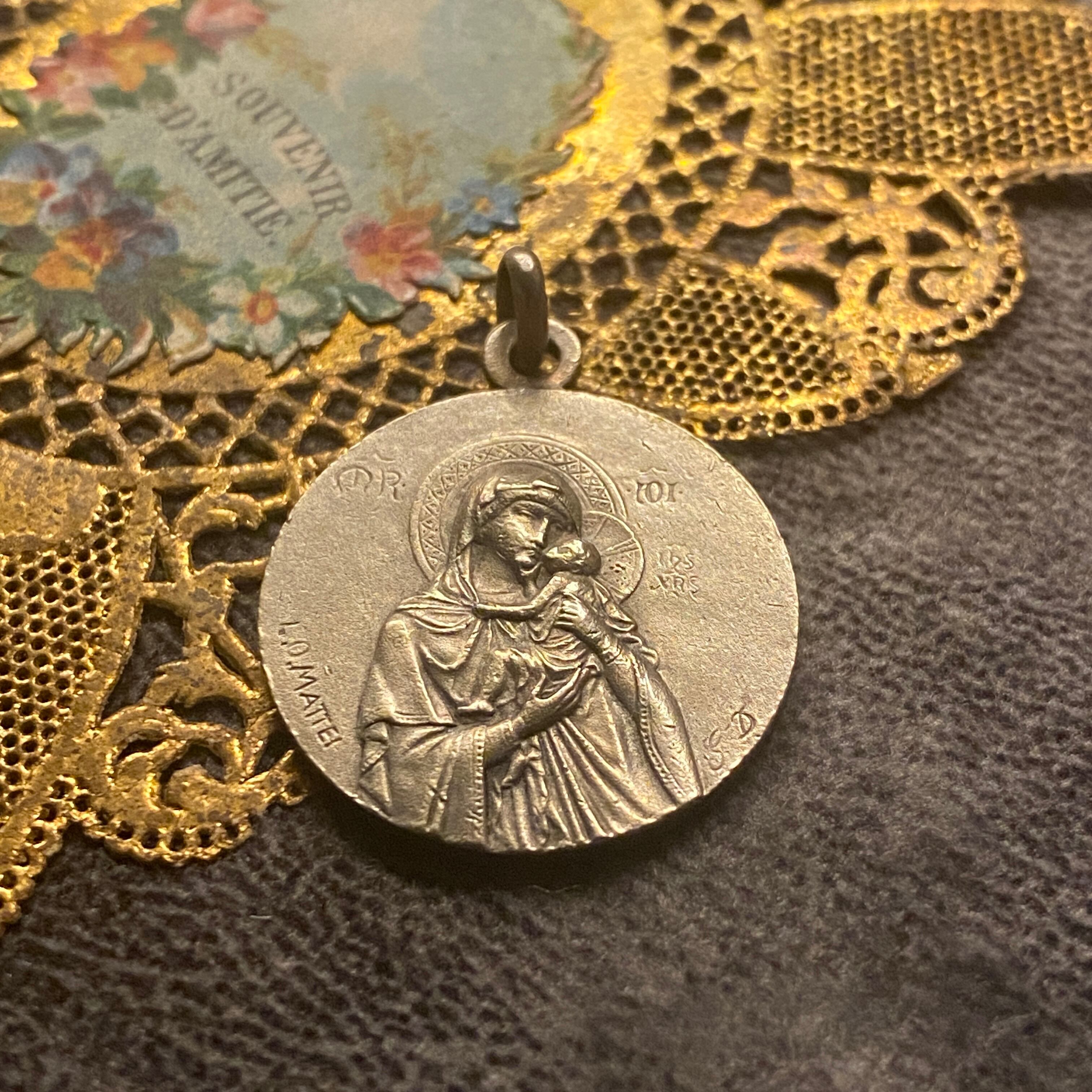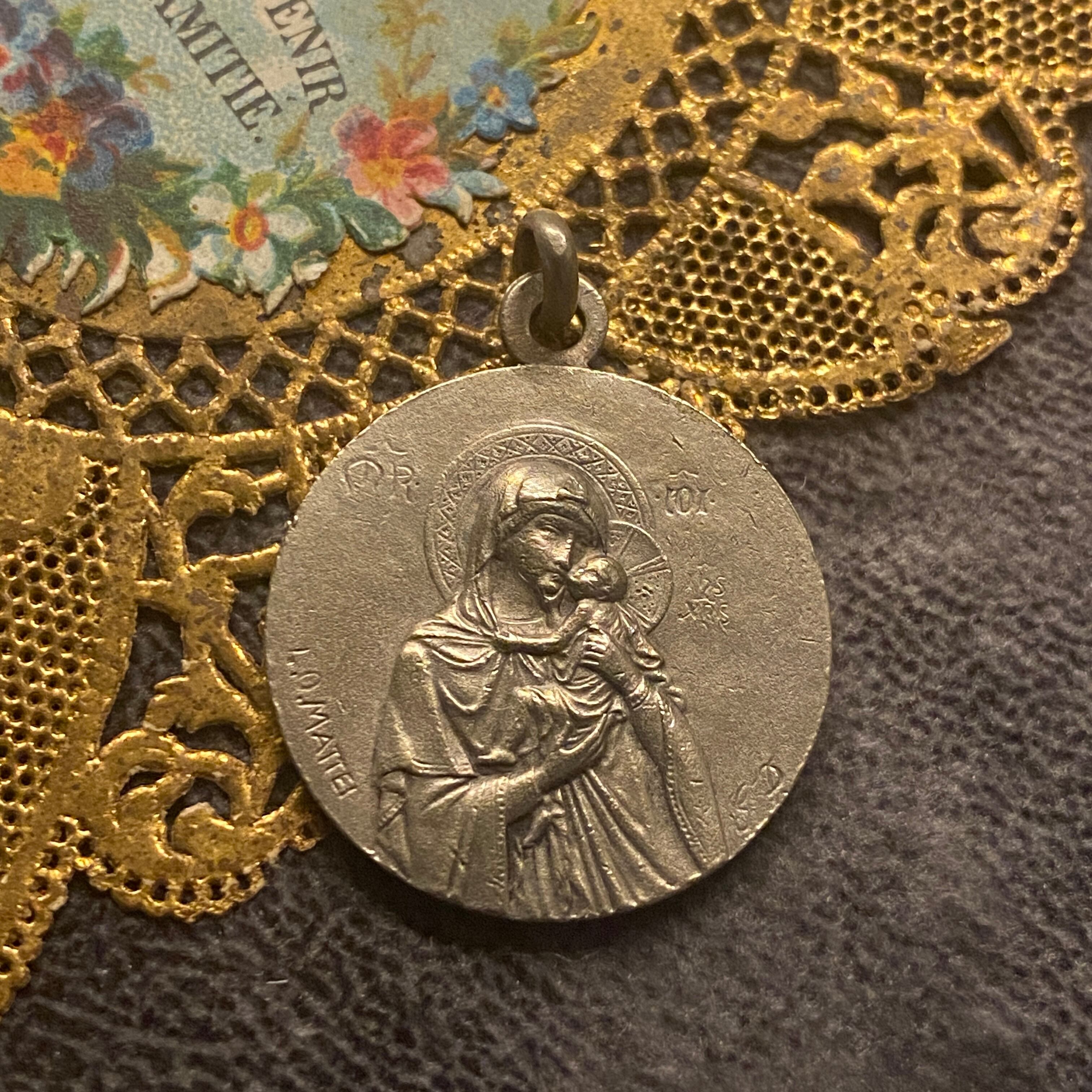 フランスの有名な彫刻家ルイス・オクターヴ・マッテイ(Louis Octave Mattei/1877〜1918)作の美しい聖母子メダイ。