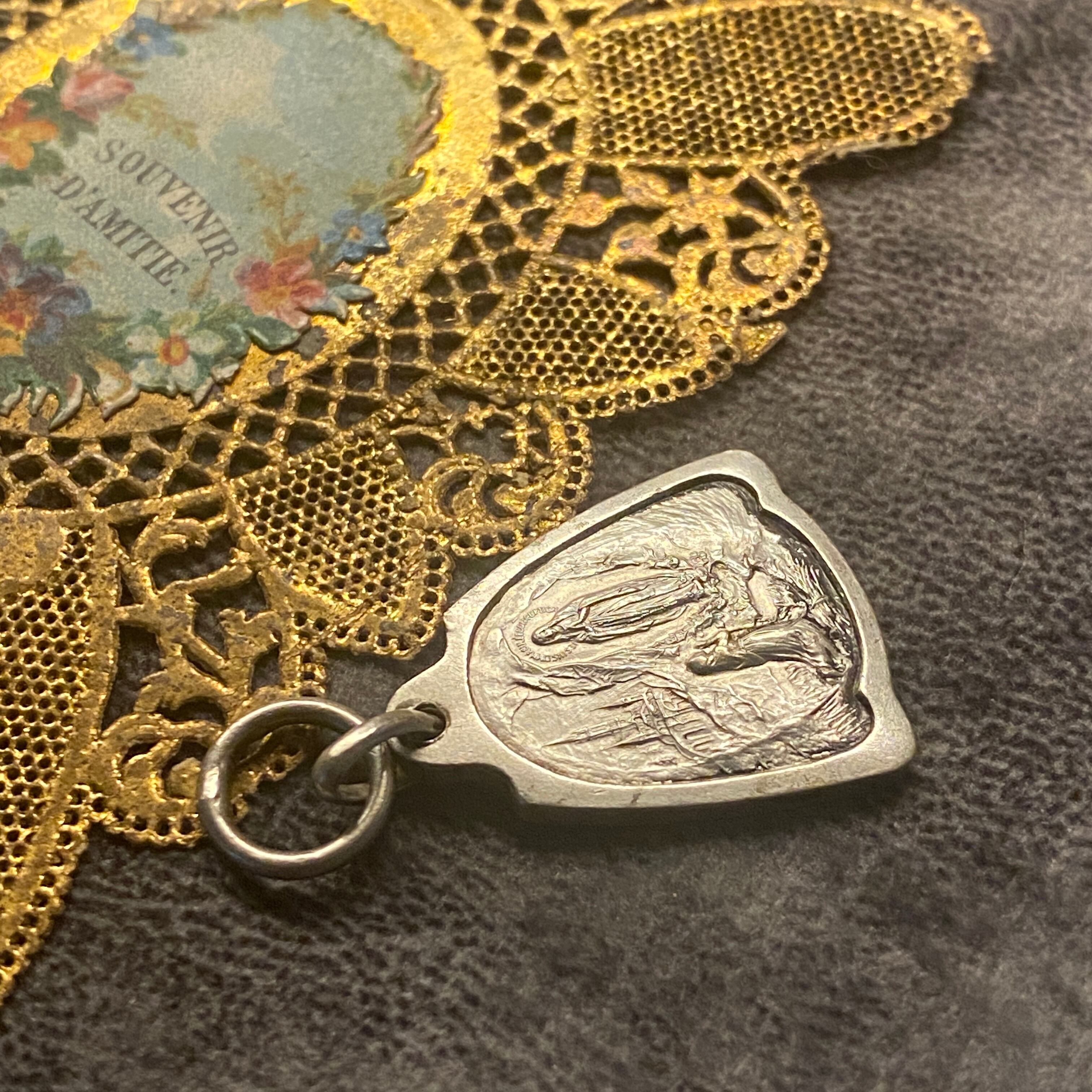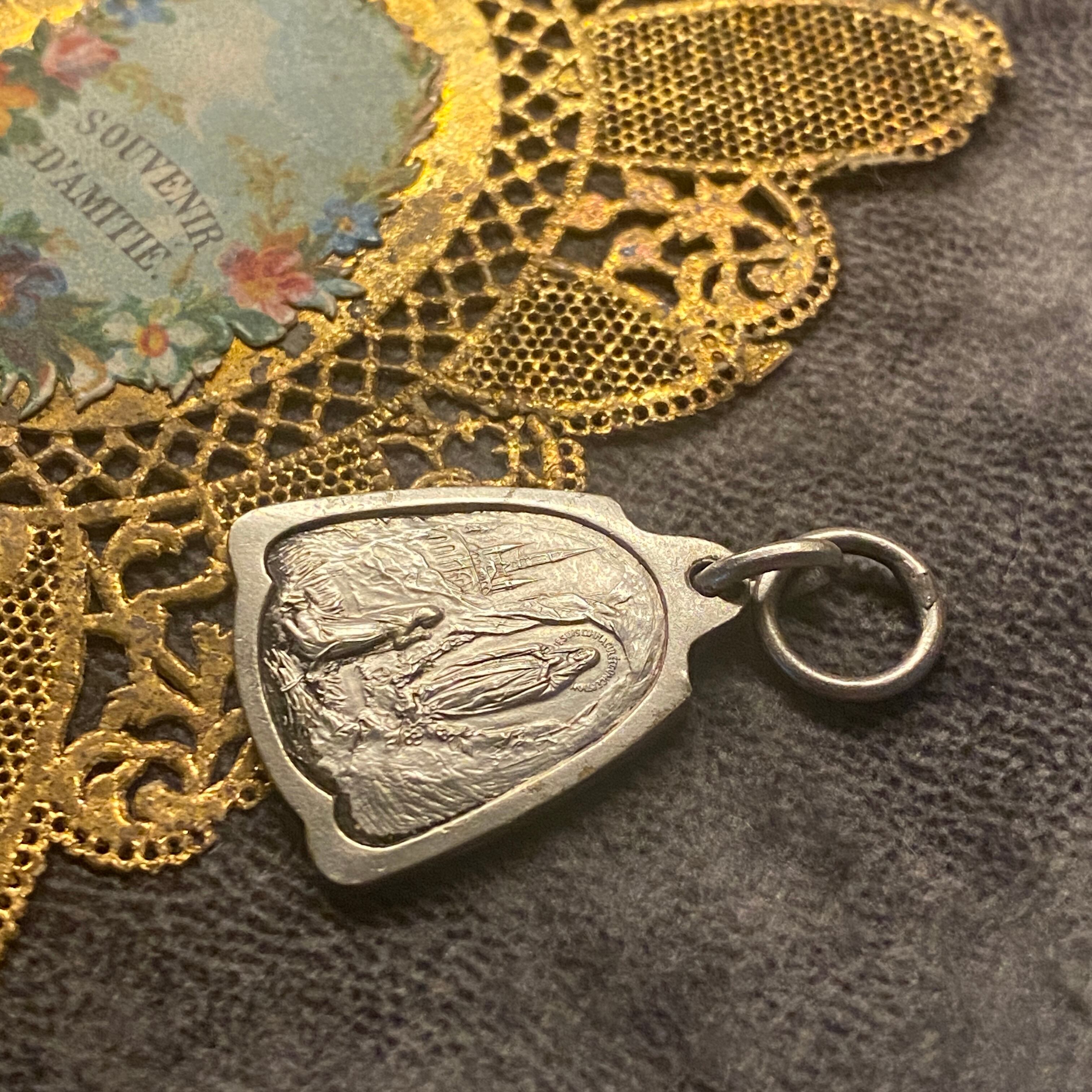 珍しいベルのシルエットのルルドのメダイ。