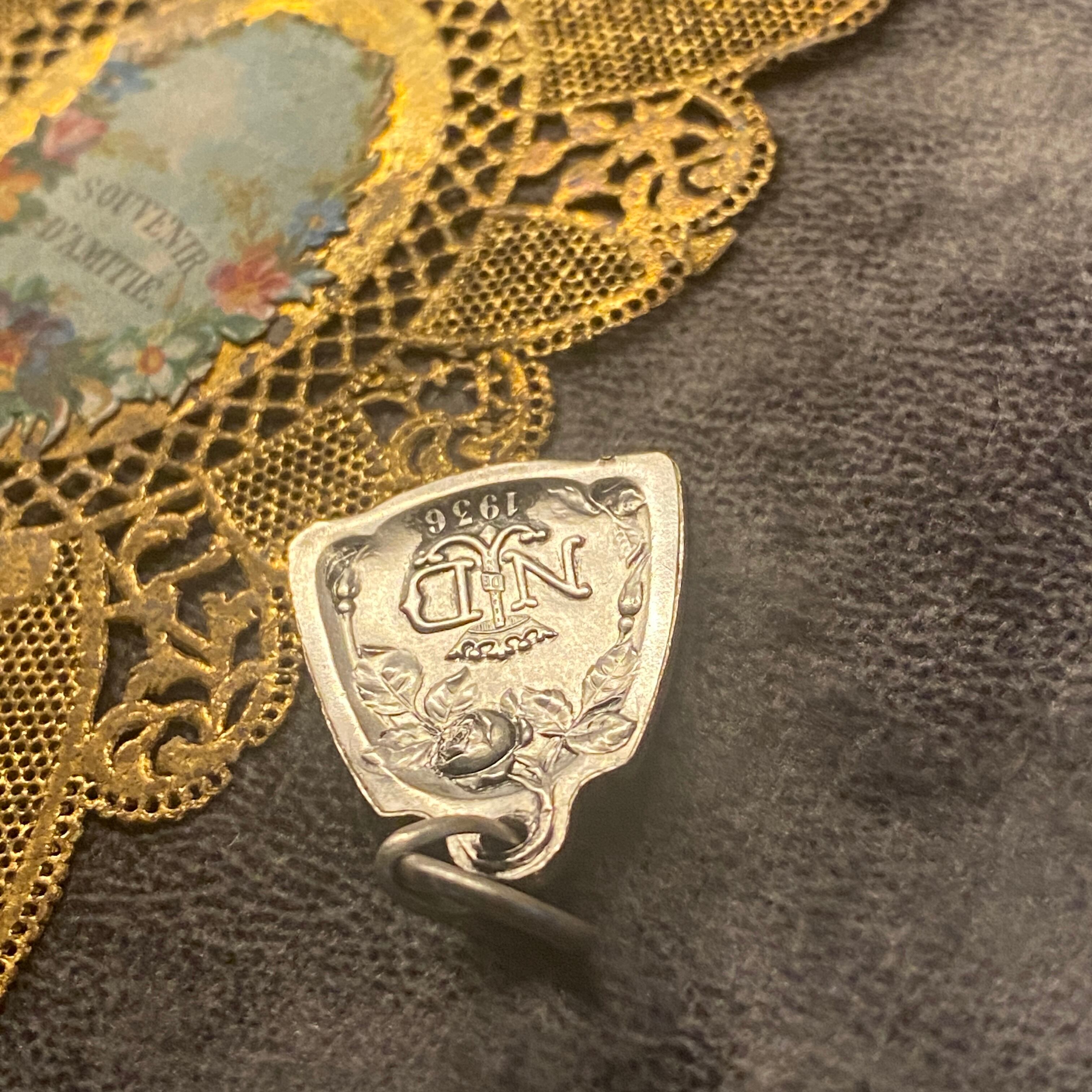 もう片面には、NDの文字と王冠、聖母マリアを象徴する薔薇の花が描かれており、見事なスカプラリオとして、どちらを表にしても楽しめる御守りメダイです。