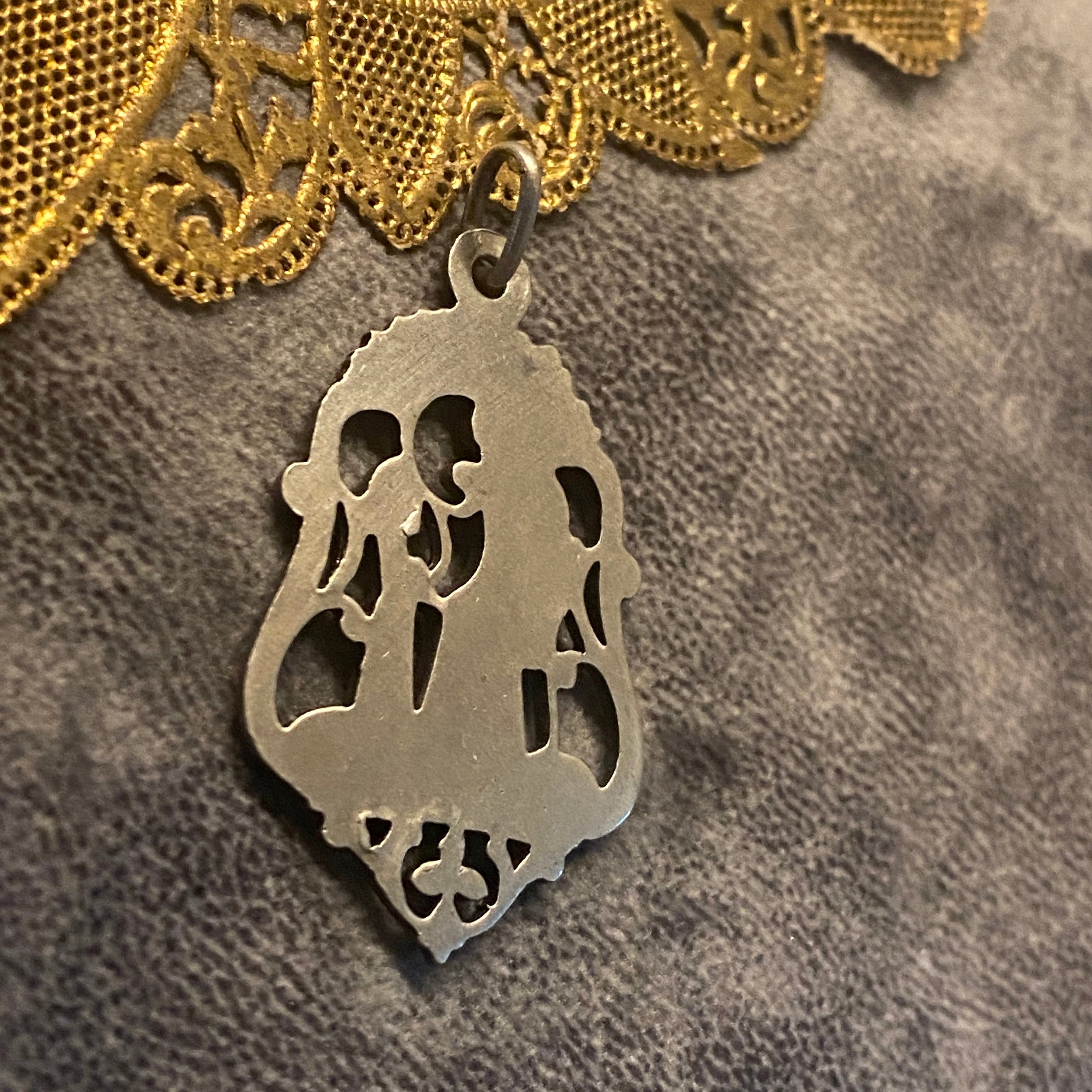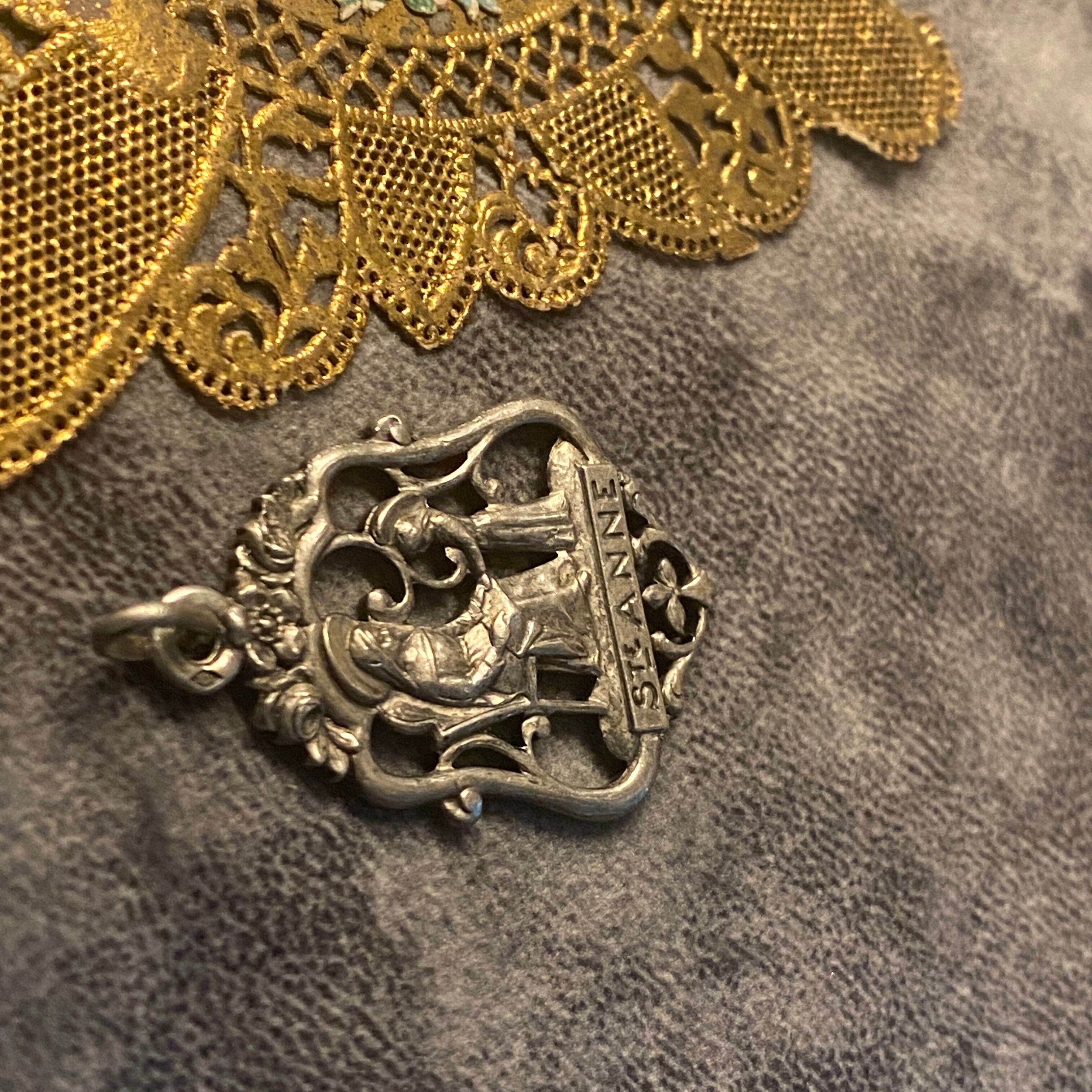 アール・ヌーヴォー様式の美しい透かし細工に囲まれた中にいるのは、書物を広げた聖アンナと少女マリアの御姿です。