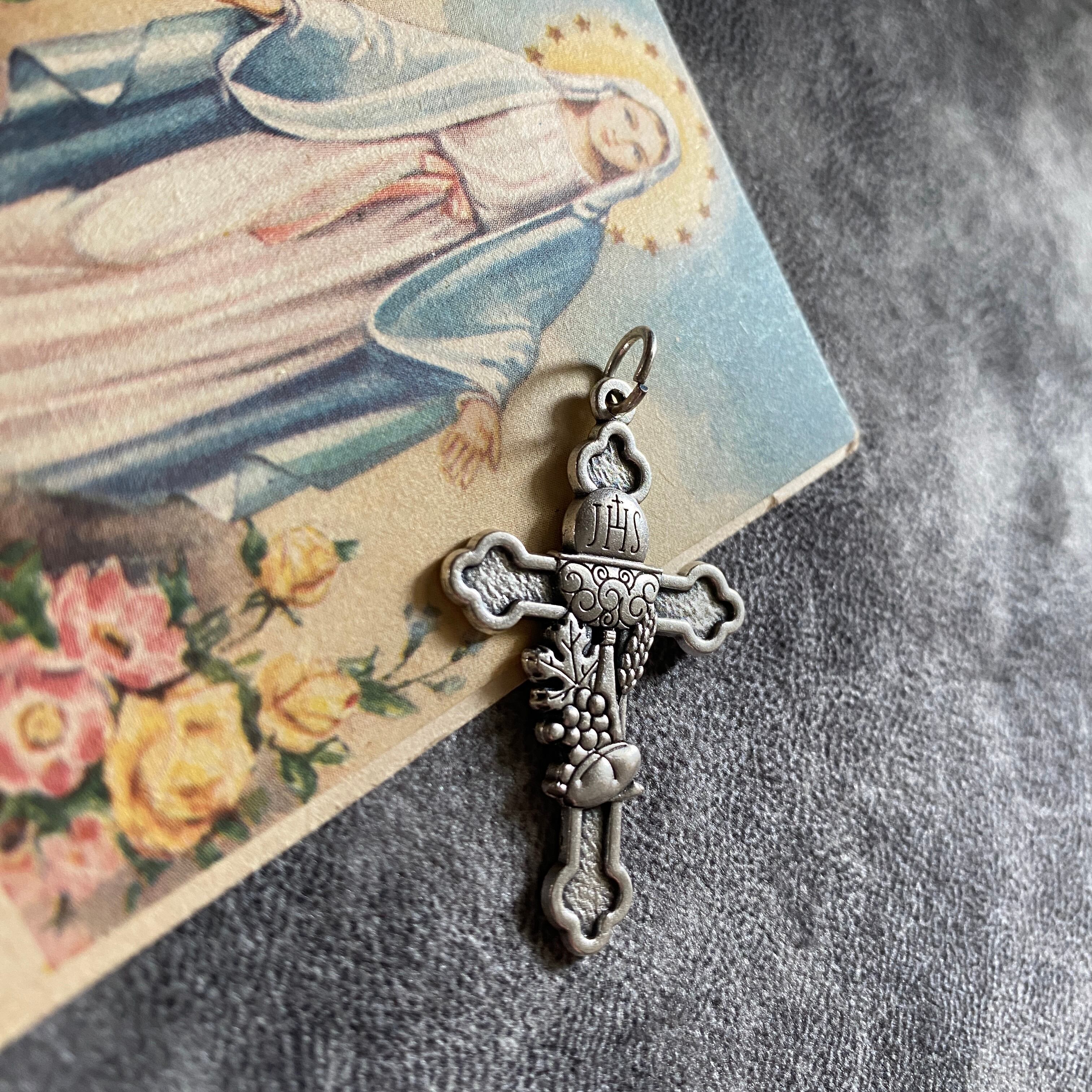 豊かさであることの象徴、麦の穂や葡萄の房、そして聖杯が美しく描かれています。