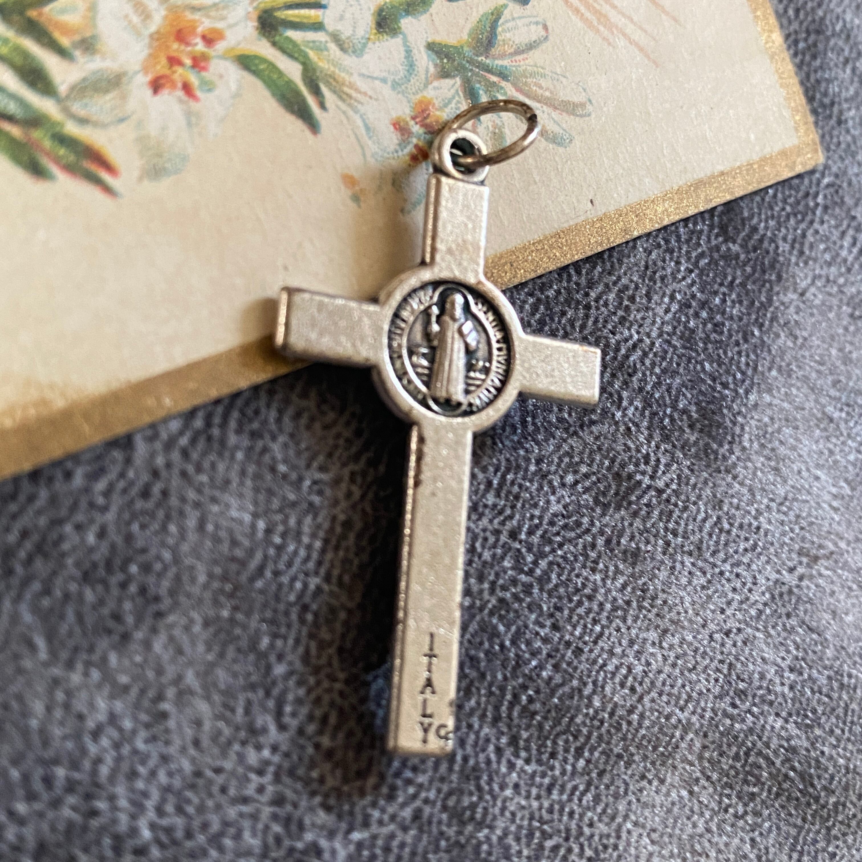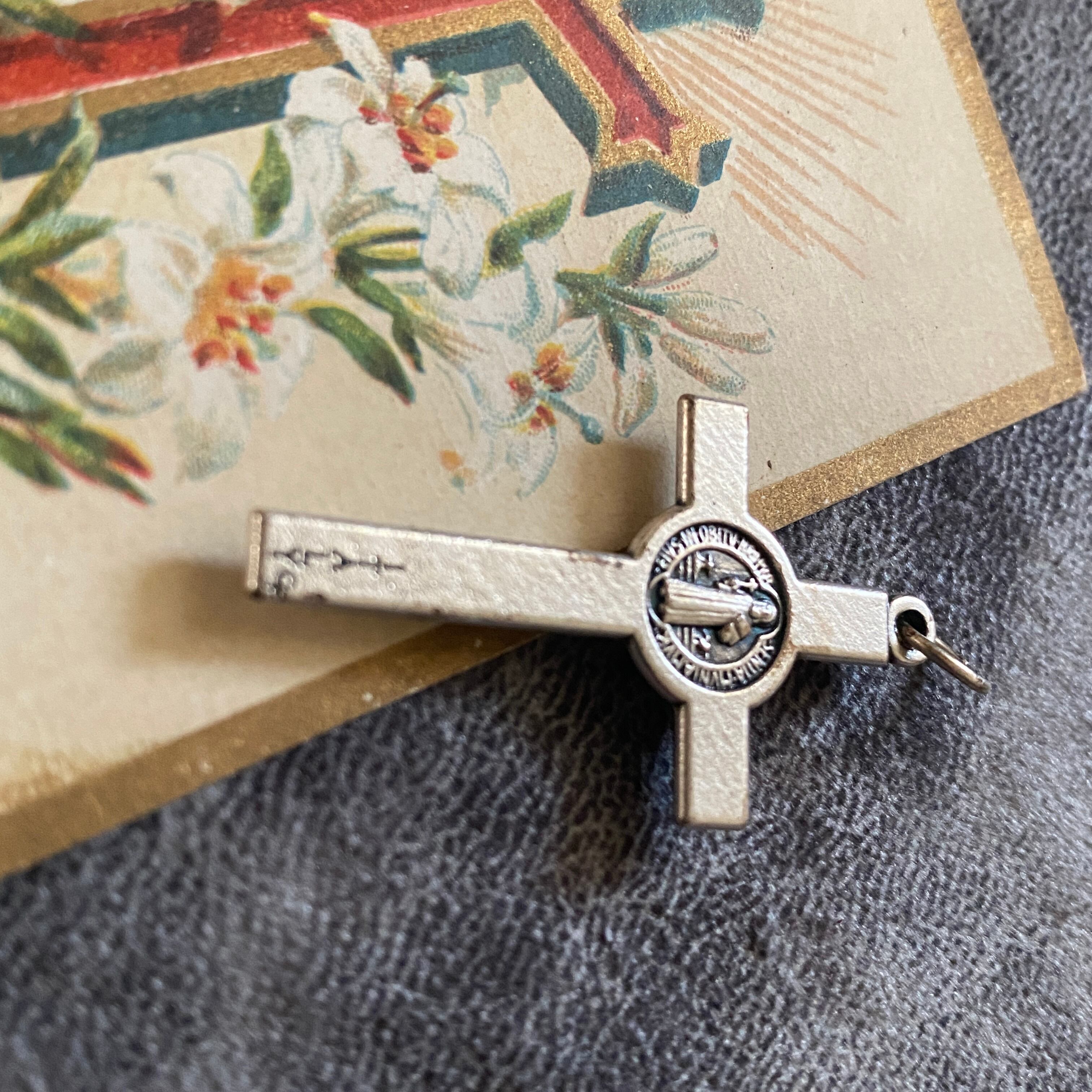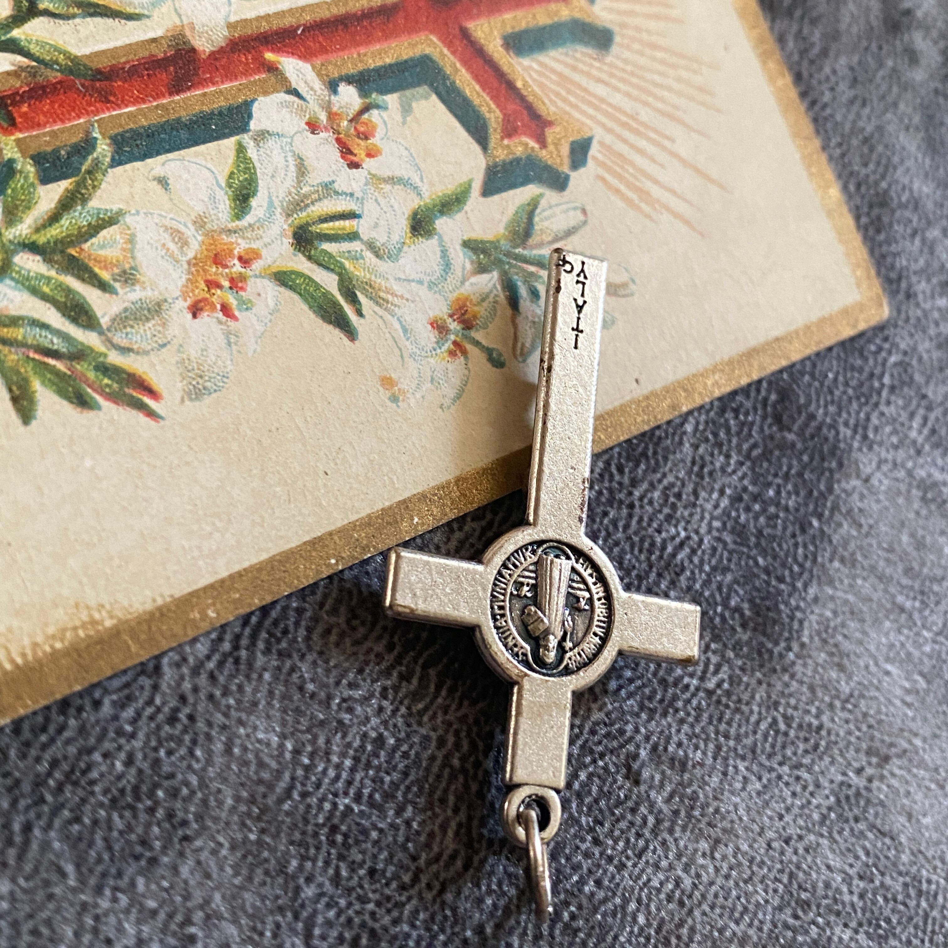 背面一部にメッキの剥がれと小傷が見られるため、価格を下げておりますが、純粋な祈りとクロスのチカラ、聖ベネディクトのご加護が感じられる確かなものです。