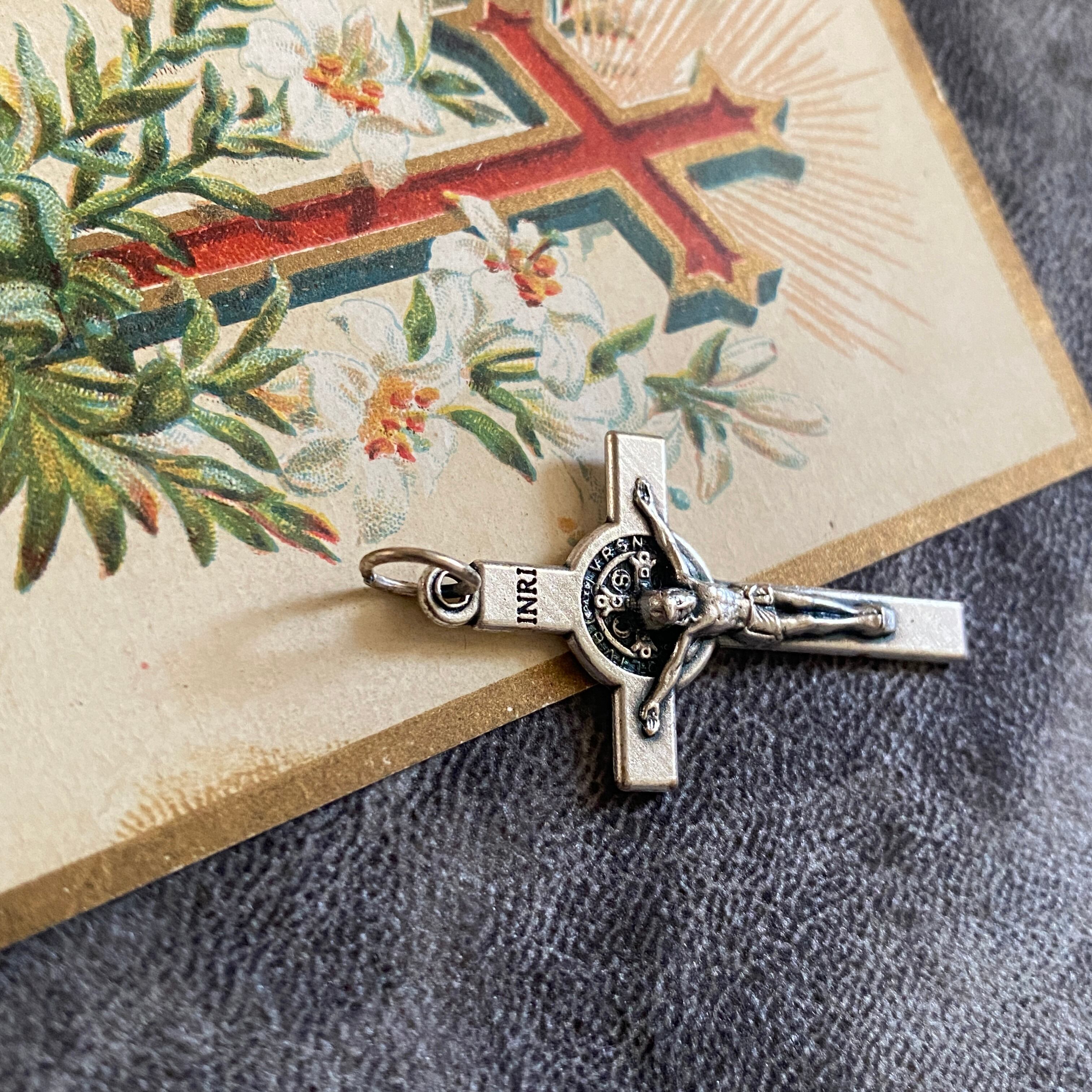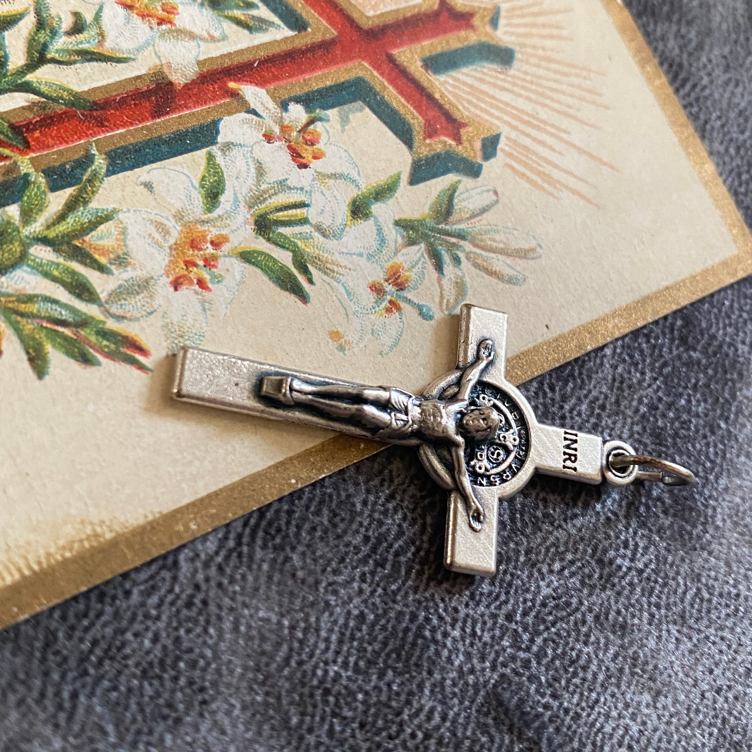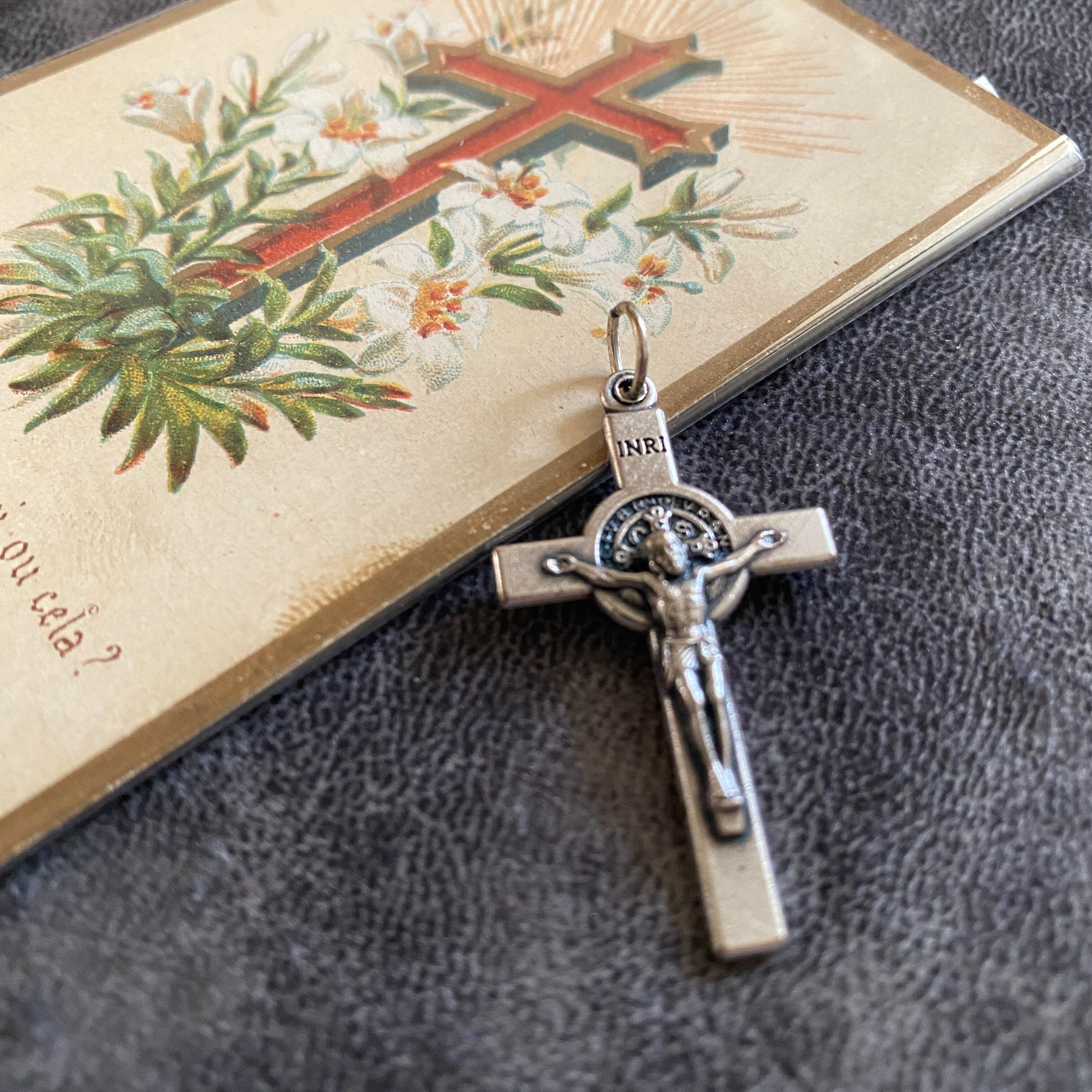 背面一部にメッキの剥がれと小傷が見られるため、価格を下げておりますが、純粋な祈りとクロスのチカラ、聖ベネディクトのご加護が感じられる確かなものです。