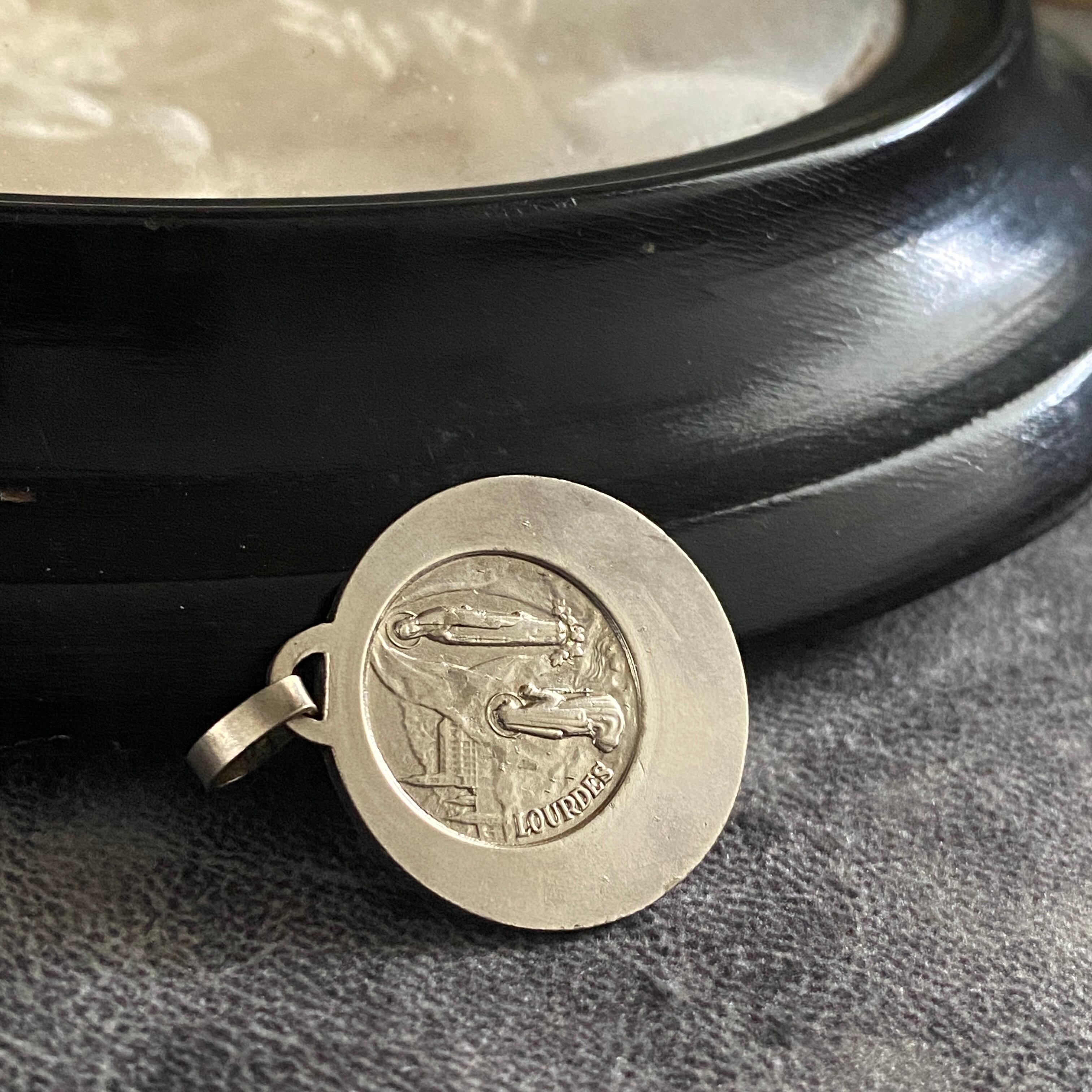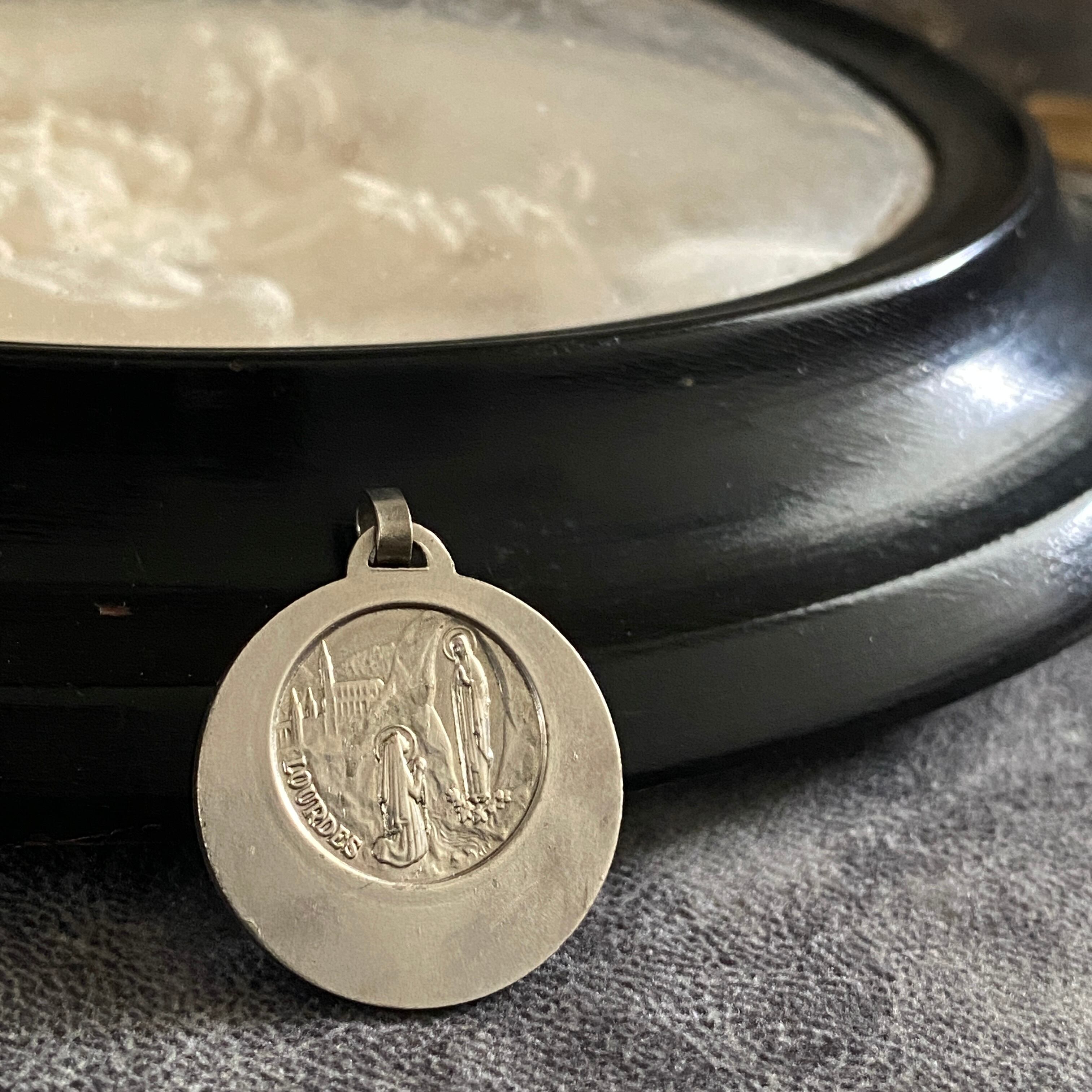 背面には、ルルドの奇跡の情景が描かれており、古いメダイながら、大変美しい希少性の高い作品です。