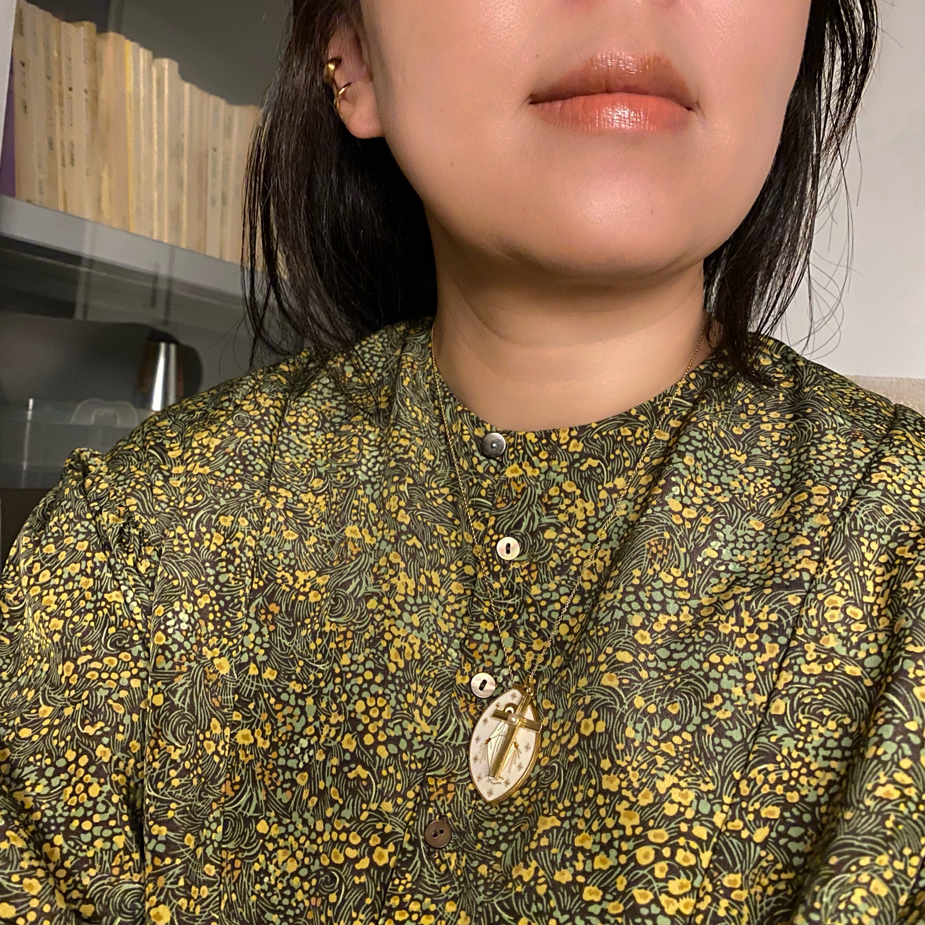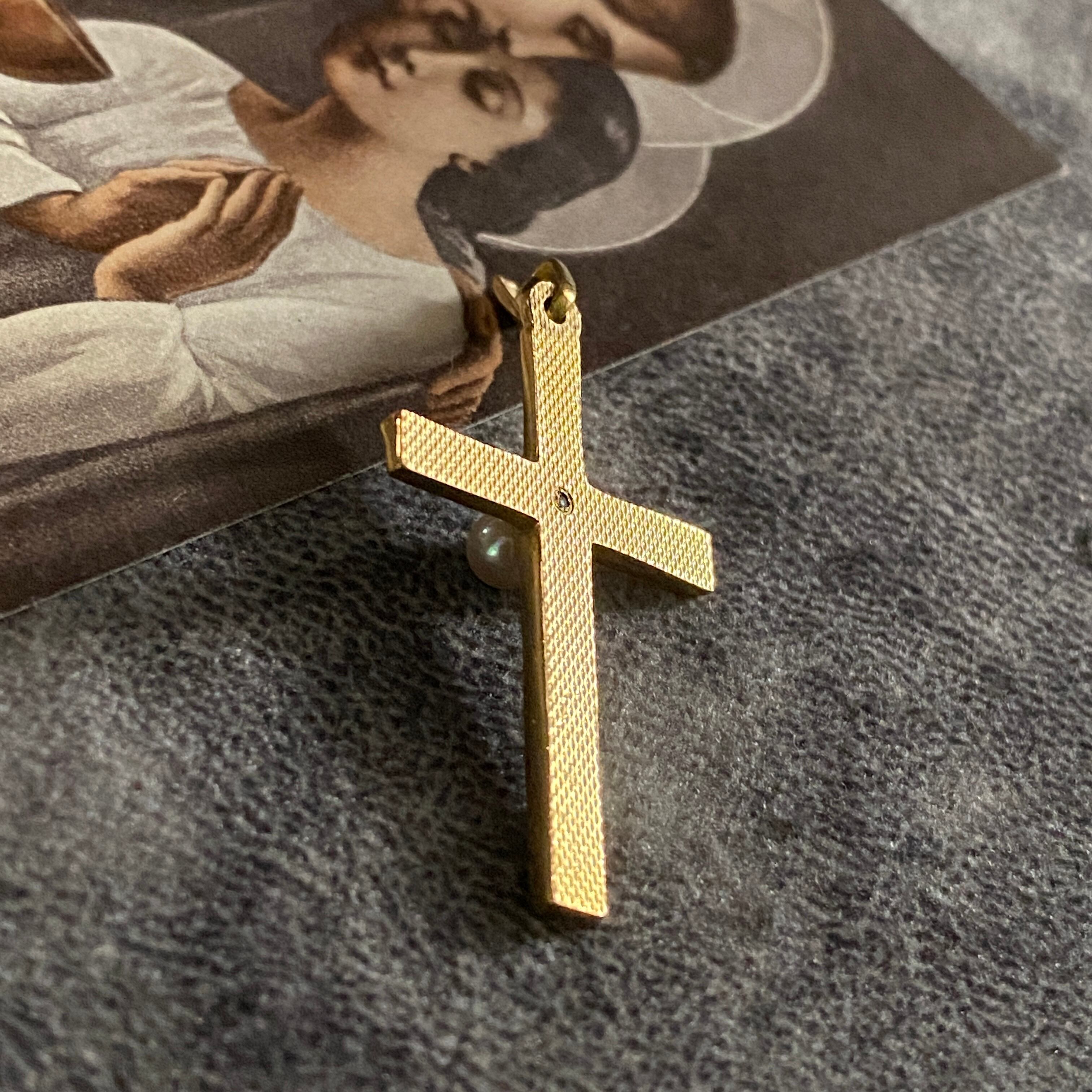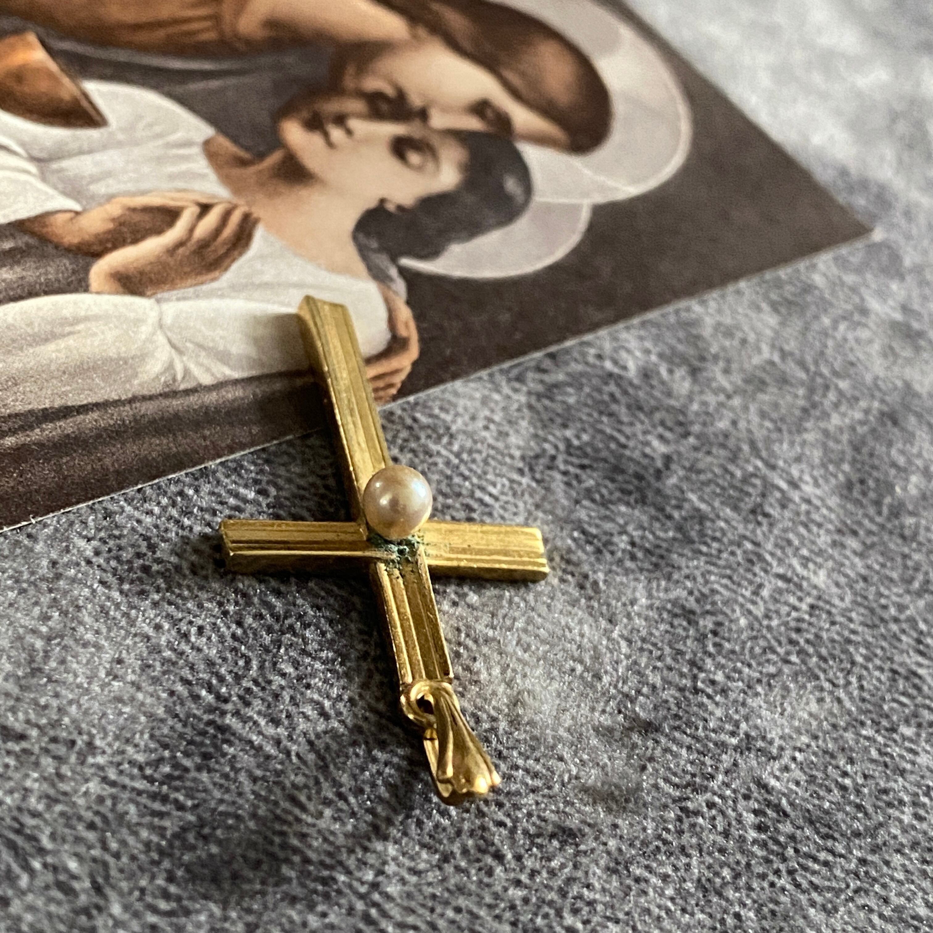 中央にパールが一粒あしらわれた上品なアンティーククロスのこちら。