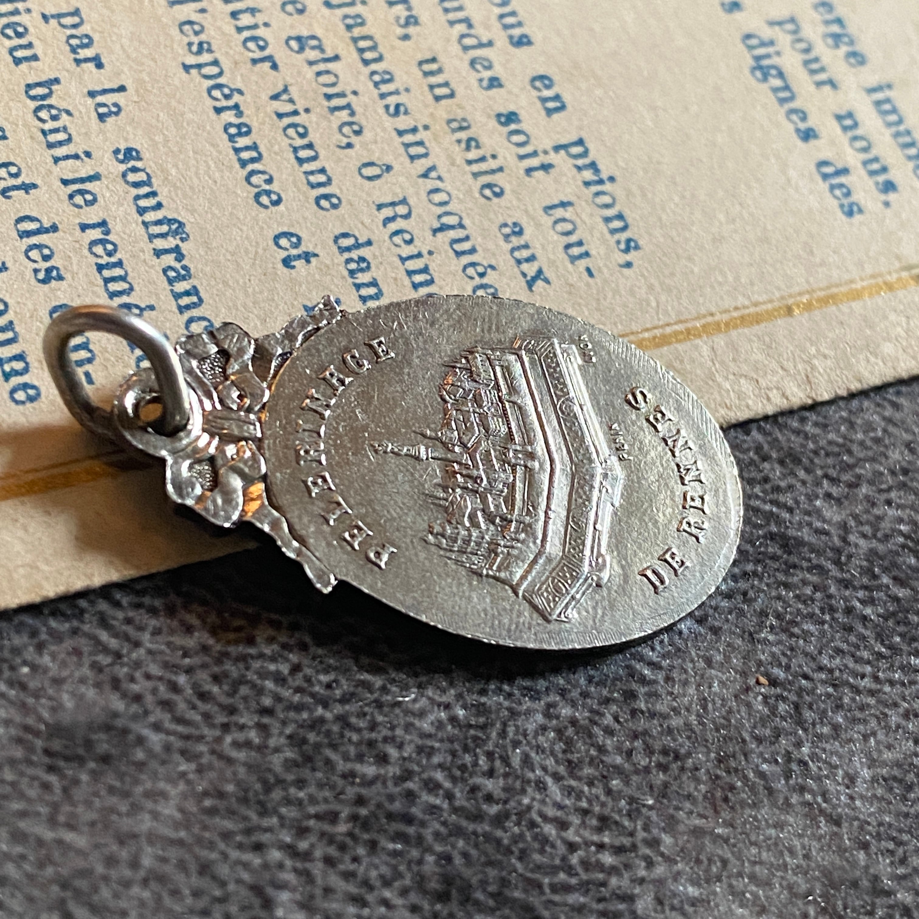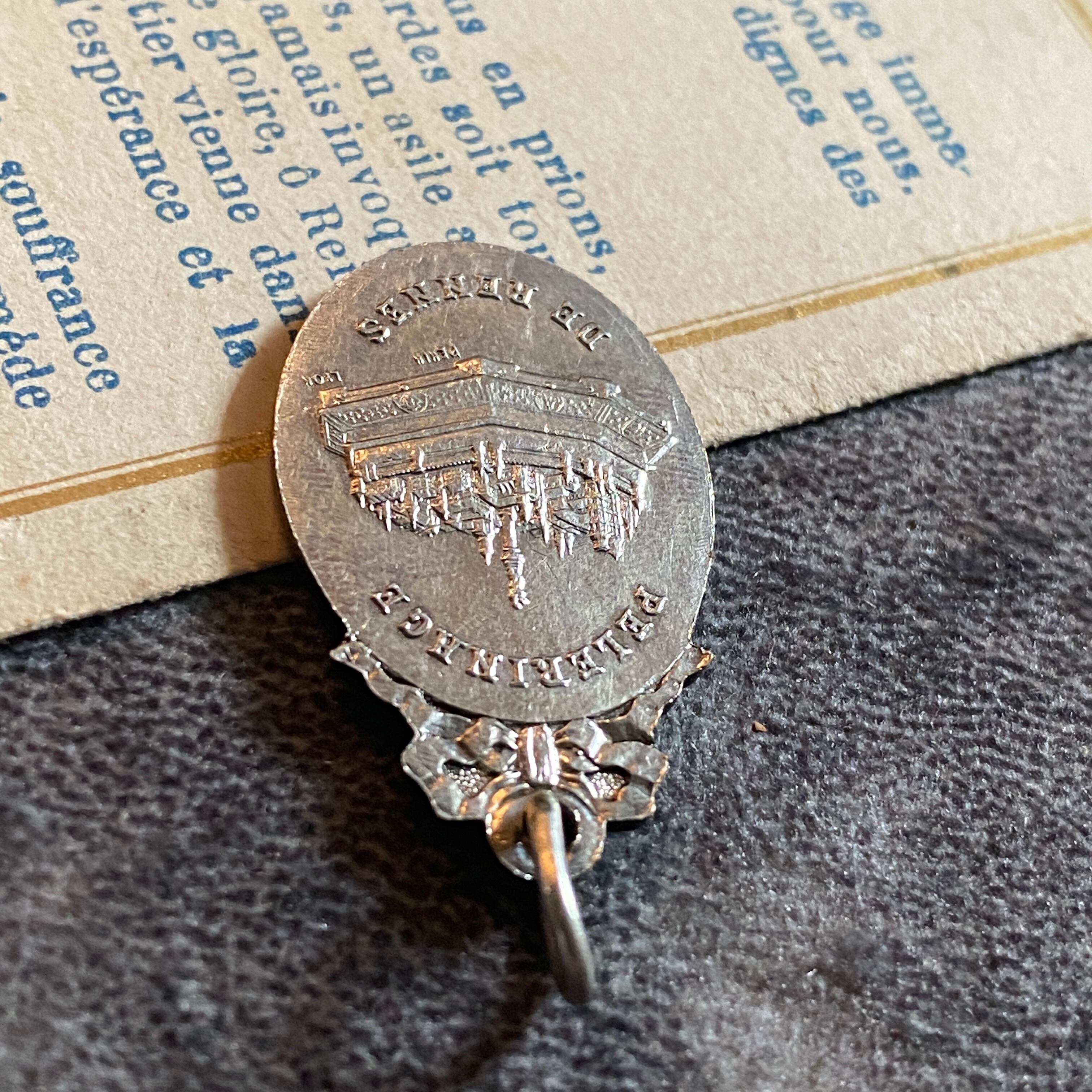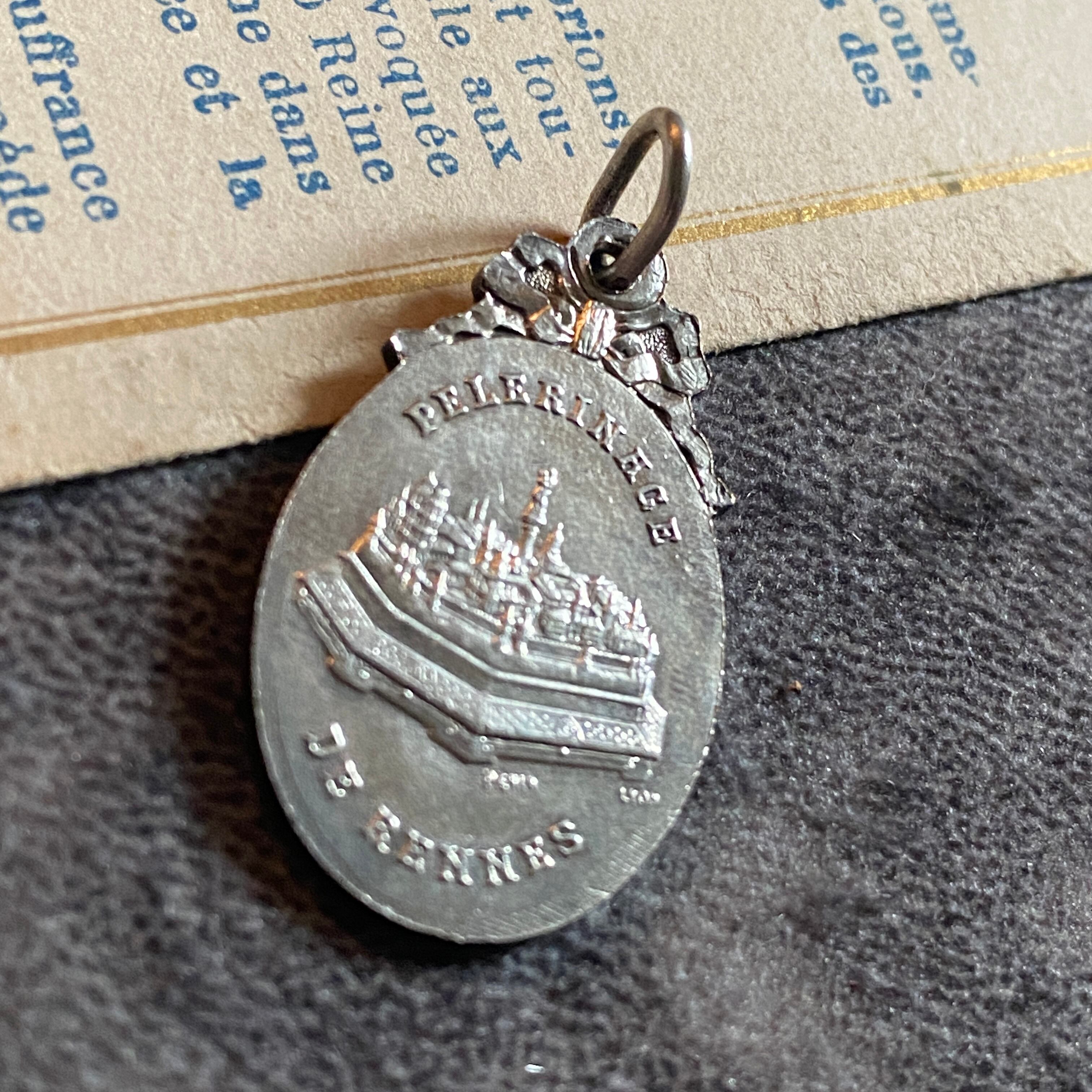 背面には、PELERINAGE DE RENNES(レンヌの巡礼)の文字と、モンサンミシェルの修道院が描かれています。